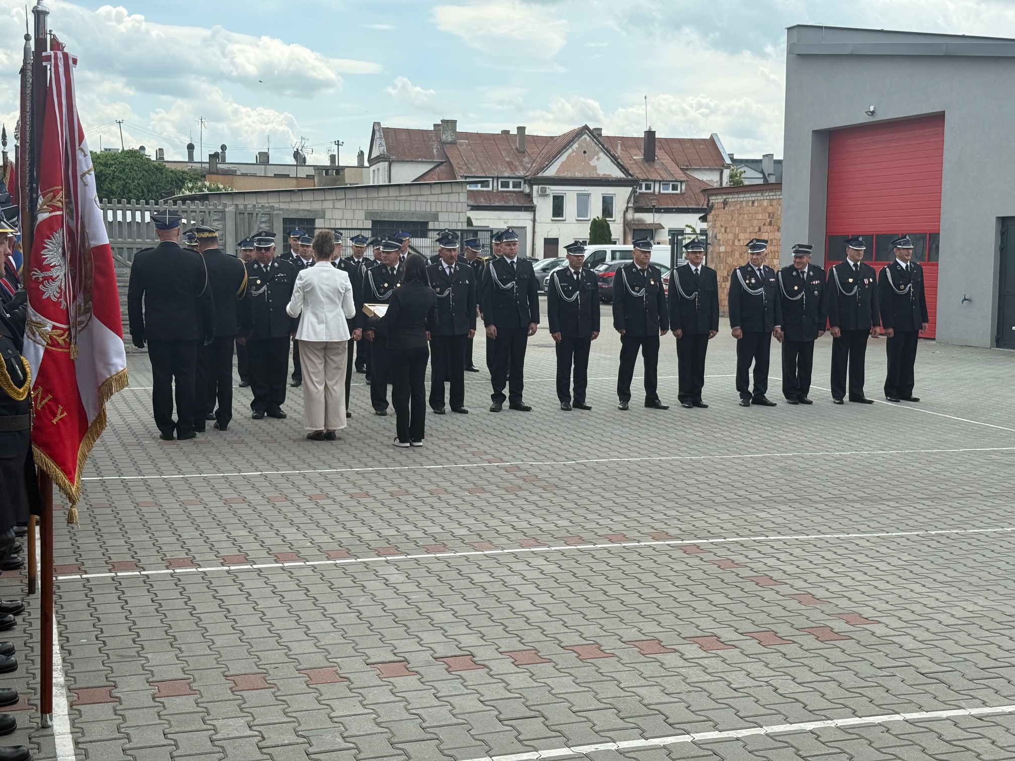 w sprawy pożarnictwa. Dlatego kulminacyjnym momentem uroczystości było wręczenie odznaczeń, odznak i nagród, a także aktów nadania wyższych stopni.