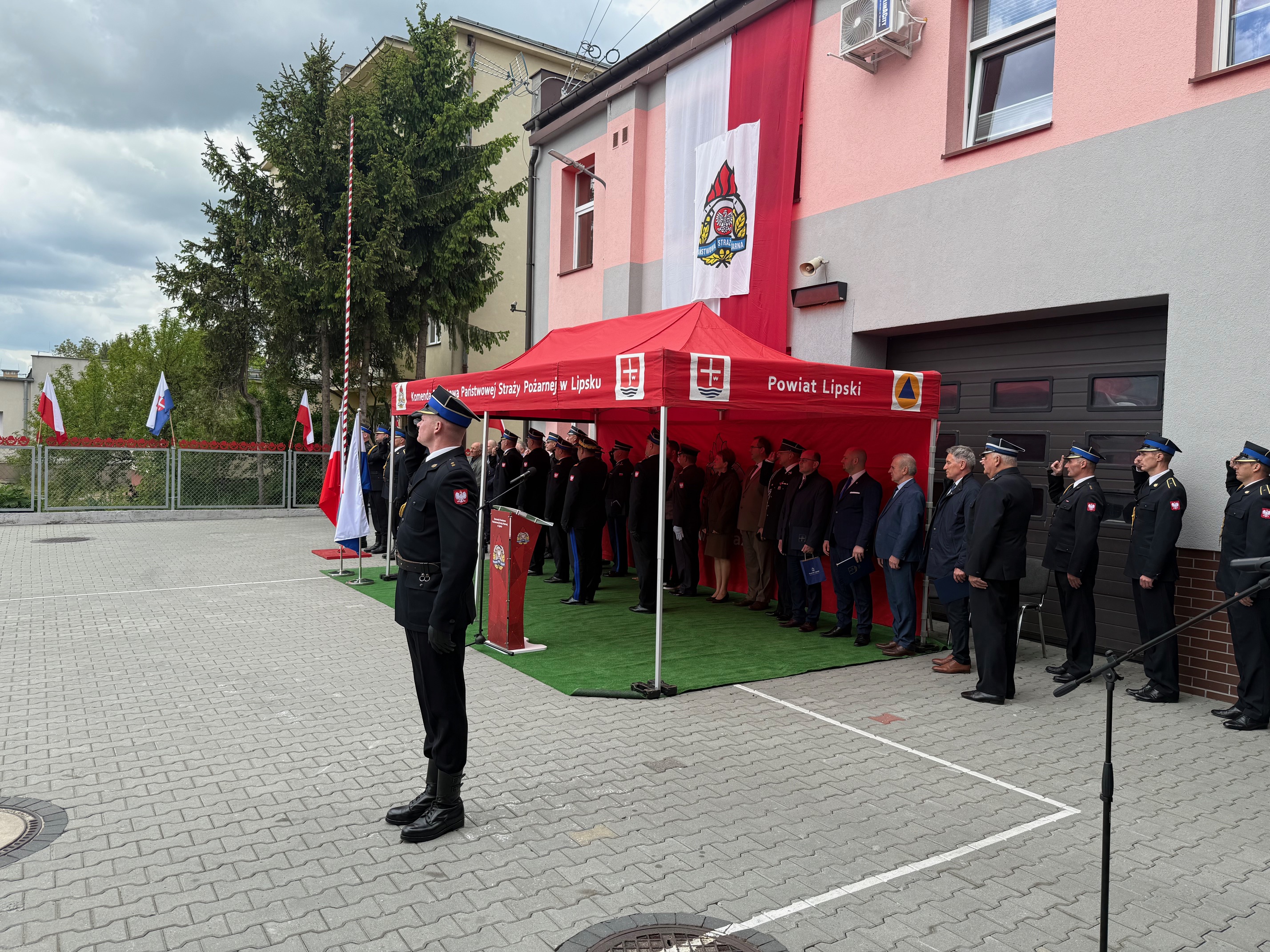 Po podniesieniu flagi państwowej i odegraniu Mazurka Dąbrowskiego, Komendant Powiatowy Państwowej Straży Pożarnej w Lipsku st. bryg. Łukasz Maciejewski serdecznie powitał przybyłych gości, oraz wygłosił przemówienie okolicznościowe.