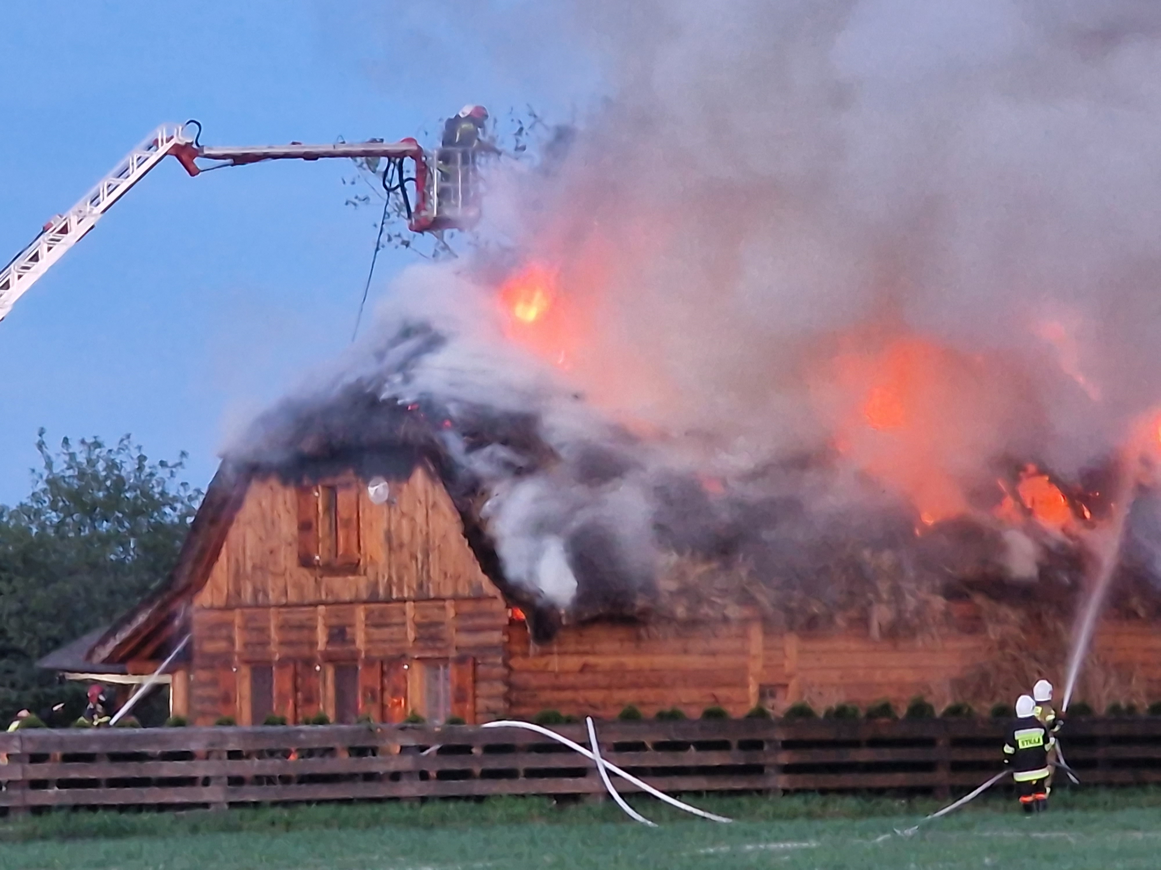 W dniu 16 maja br. ok godz. 20 doszło do pożaru domu jednorodzinnego w miejscowości Poręba gm. Lipsko. Dom konstrukcji murowano drewnianej, kryty strzechą/trzciną. Bez osób poszkodowanych. Działania były bardzo trudne z uwagi na mocno rozwinięty pożar oraz pokrycie dachowe- które było powiązane drutami.