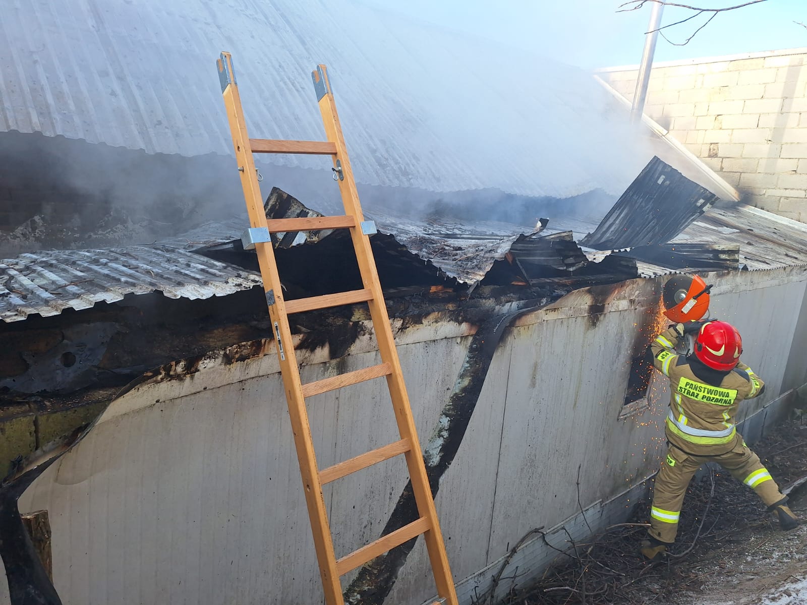 W dniu 17 lutego br. ok. godz. 6:20 dyżurny Stanowiska Kierowania Komendanta Powiatowego PSP w Lipsku przyjął zgłoszenie o pożarze budynku gospodarczego w Lipsku na ul. Czachowskiego. Po dojechaniu na miejsce zdarzenia stwierdzono pożar budynku produkcyjno-magazynowego (stolarnia). Pożarem objęty był dach budynku na którym znajdowała się instalacja fotowoltaiczna oraz część pomieszczeń na parterze budynku. Działania zastępów straży pożarnej polegały na zabezpieczeniu miejsca zdarzenia, odłączeniu dopływu prądu w budynku oraz budynkach sąsiednich, odcięciu dopływu prądu DC przy falowniku, podaniu 1 prądu wody w natarciu do środka budynku oraz 1 prądu na dach budynku z drabiny przystawnej. Jednocześnie podano po 1 prądzie wody w obronie na sąsiednie budynki gospodarcze.. W akcji gaśniczej udział brały zastępy z JRG w Lipsku oraz OSP: Maruszów, Krępa Kościelna, Wola Solecka, Pawłowice, Ciepielów.