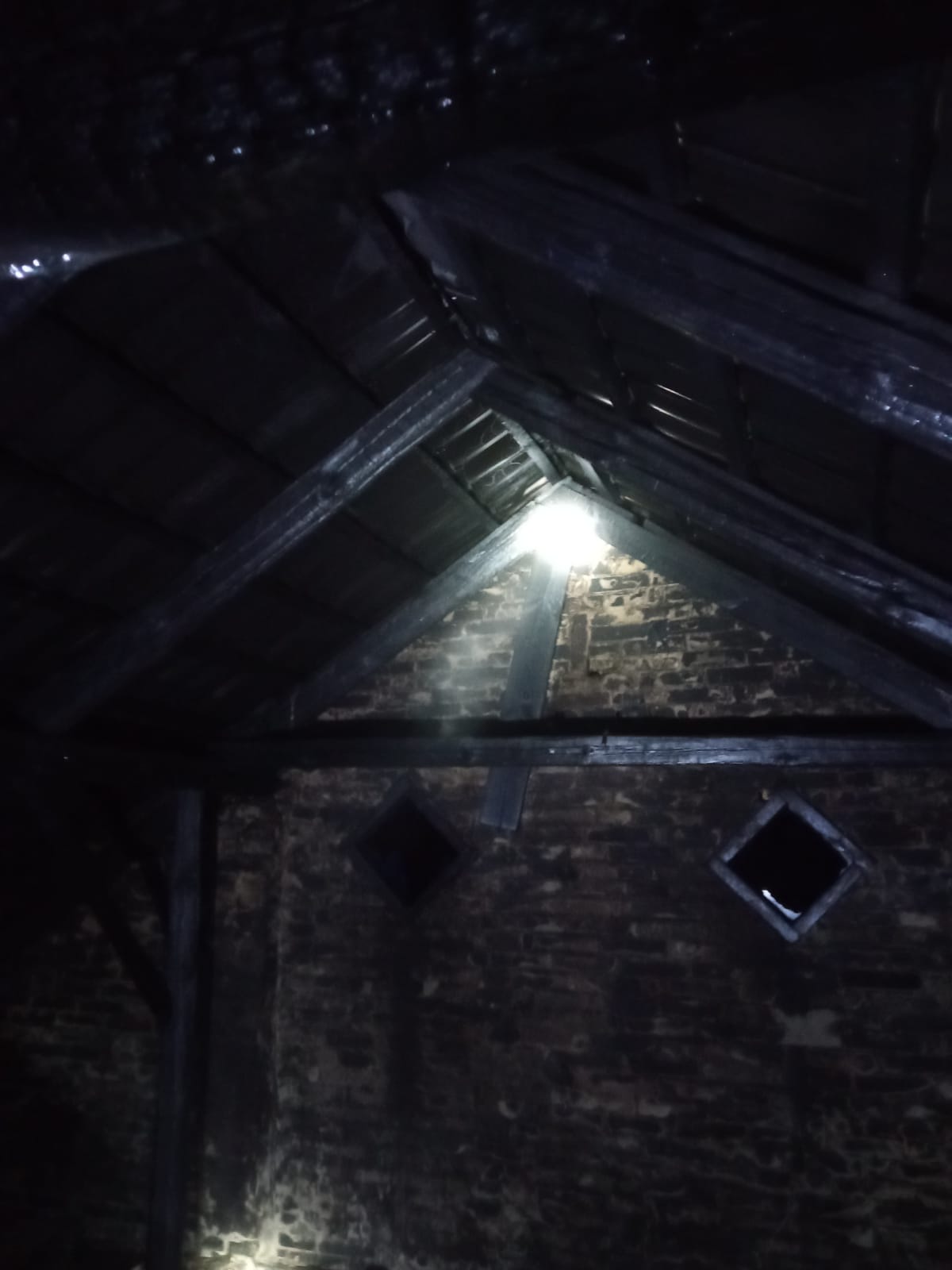 Po dojechaniu na miejsce zdarzenia stwierdzono pożar poddasza budynku murowanego.