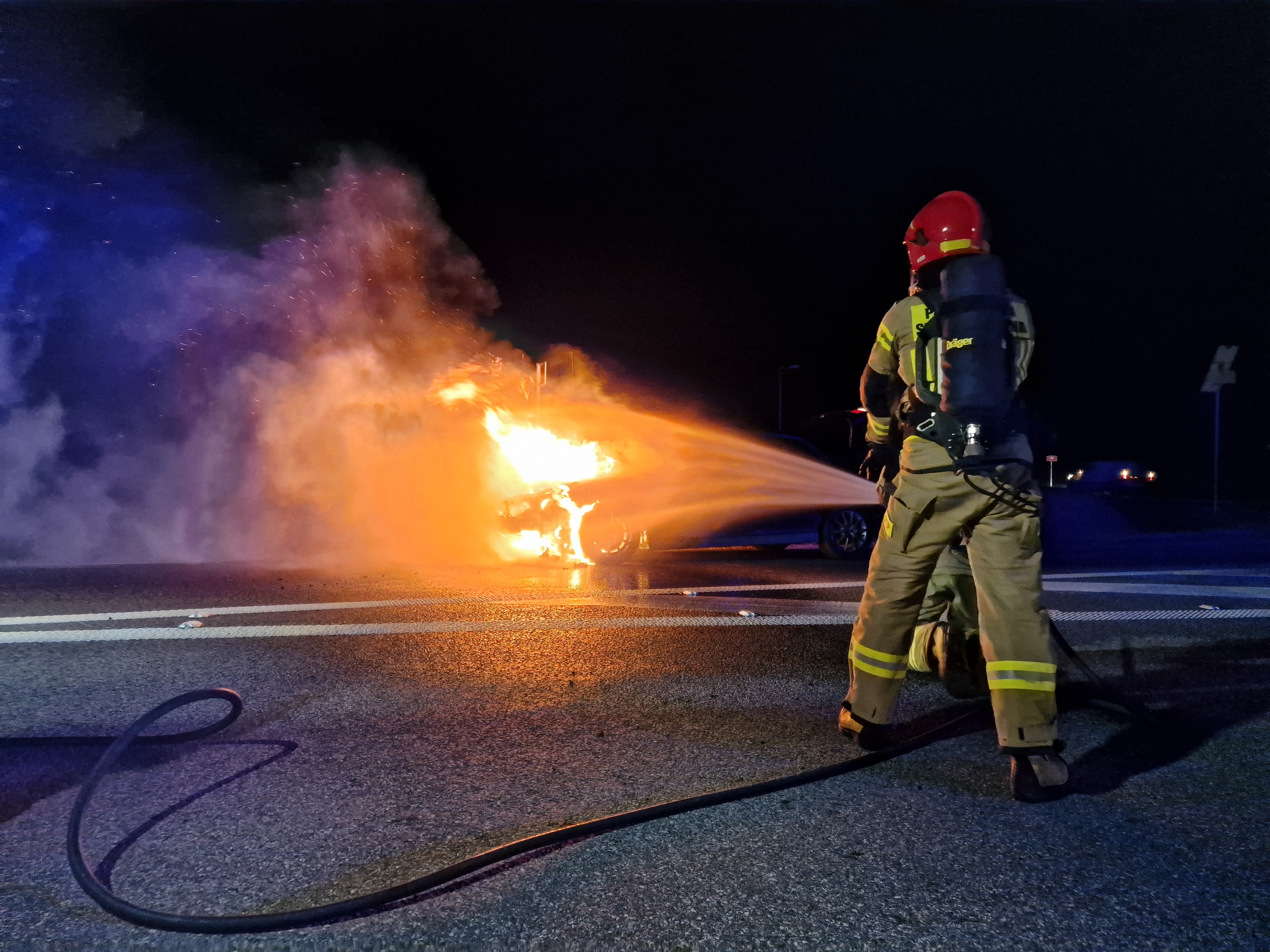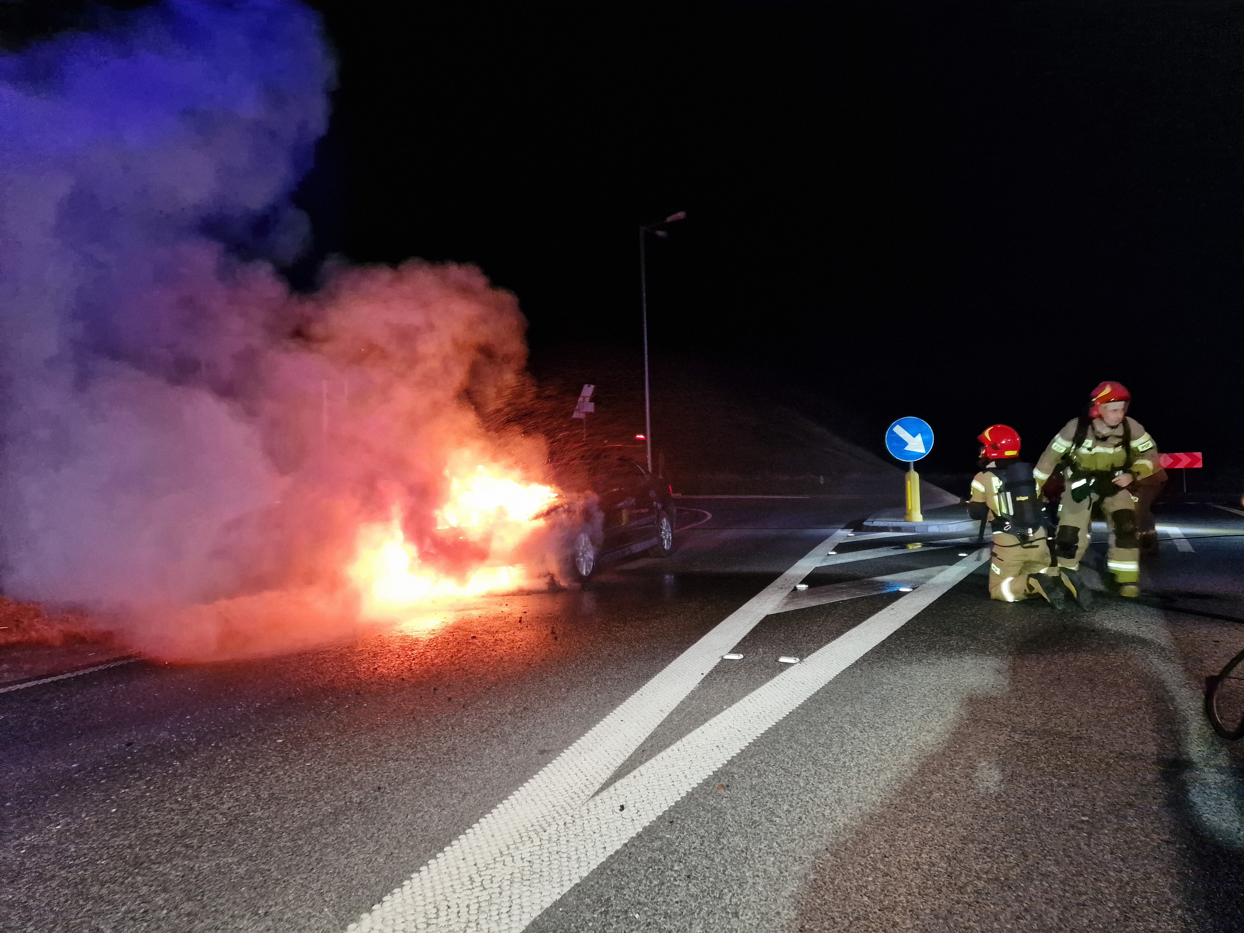 Kierowca po zauważeniu pożaru opuścił pojazd i nie wymagał pomocy medycznej.