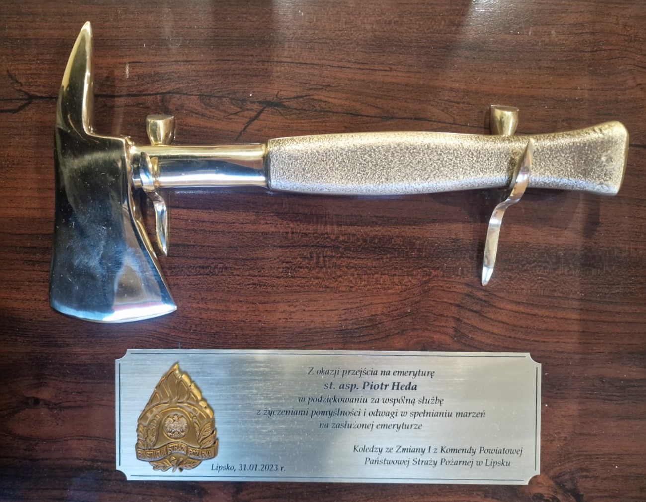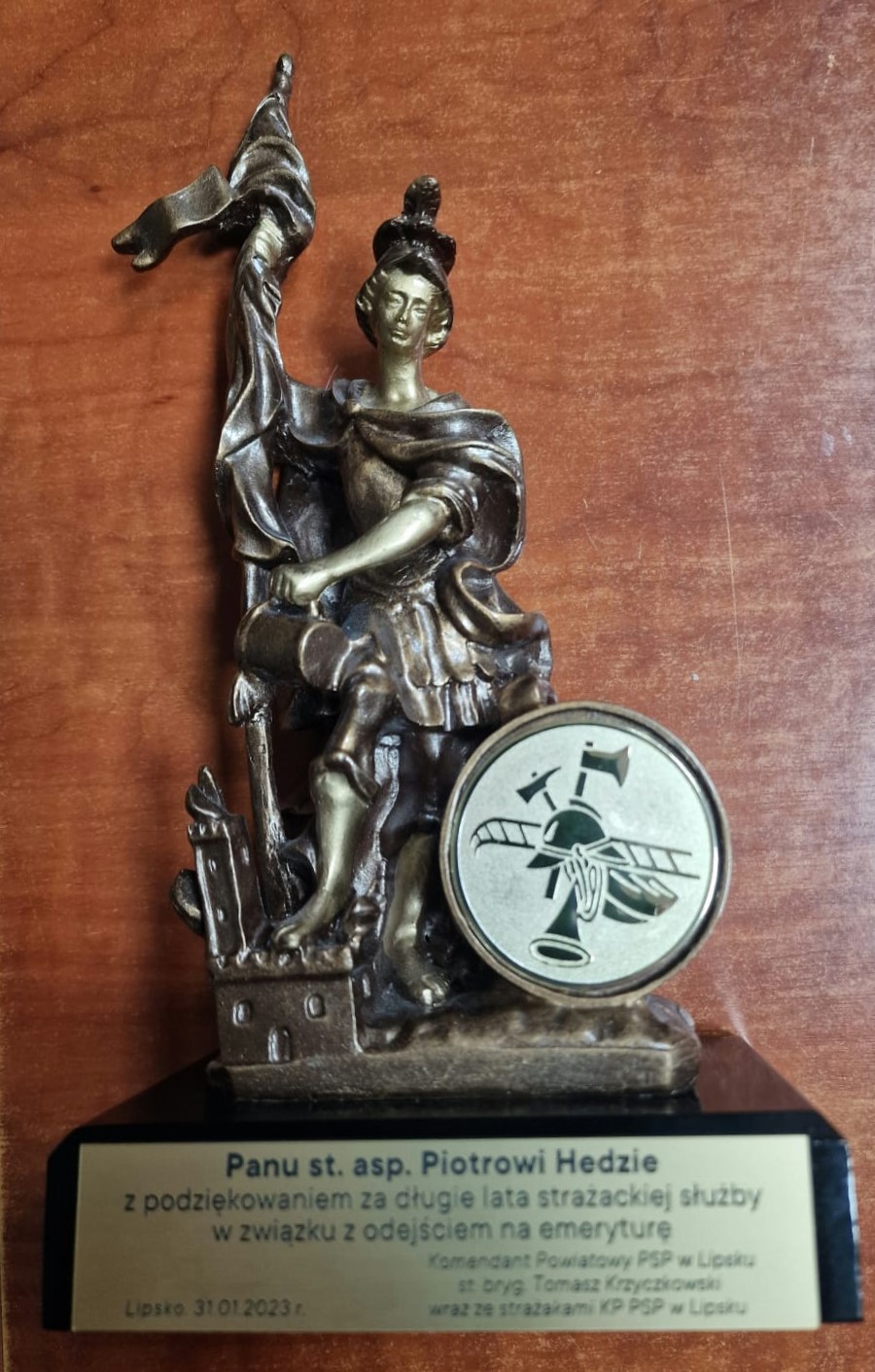 W dniu 31 stycznia 2023 roku w Komendzie Powiatowej PSP w Lipsku odbyła się uroczystość pożegnania ze służbą w Państwowej Straży Pożarnej zastępcy dowódcy zmiany Jednostki Ratowniczo Gaśniczej w Lipsku starszego aspiranta Piotra Hedy.