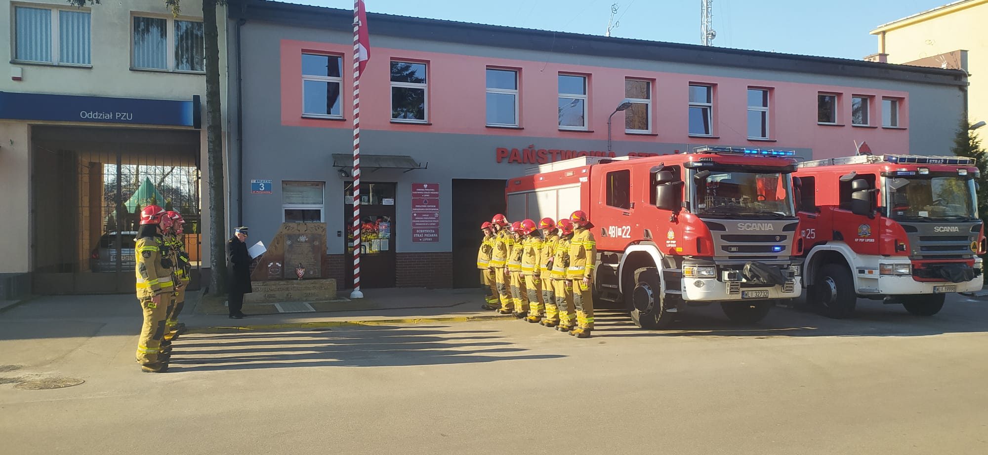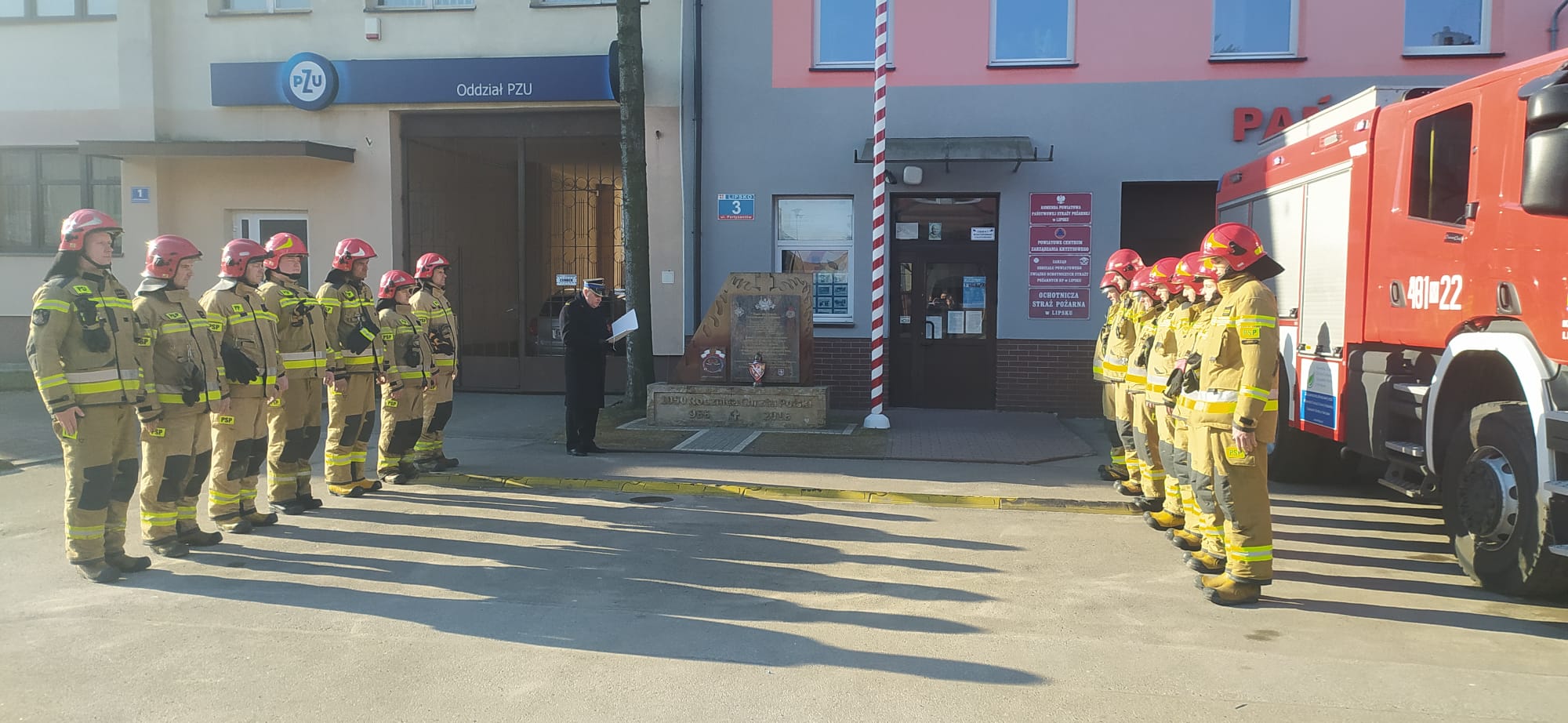 O godz. 8.00 na zbiórce przy obiekcie KP PSP w Lipsku przy ul. Partyzantów, zostały ustawione samochody bojowe przy zapalonych światłach sygnalizacyjnych alarmowych, zmiany służbowe JRG PSP zdająca i przyjmująca ustawione w szyku rozwiniętym, Komendant Powiatowy PSP w Lipsku st. bryg. Tomasz Krzyczkowski odczytał list komendanta głównego na okoliczność upamiętnienia strażaków ukraińskich, którzy oddali swe życie wykonując powołanie i służbę w ratowaniu życia i mienia potrzebującym mieszkańców, mieszkańcom Ukrainy. Następnie został przy strażackim pomniku zapalony znicz pamięci i hołdu bohaterskim strażakom z Ukrainy oraz oddano honory.