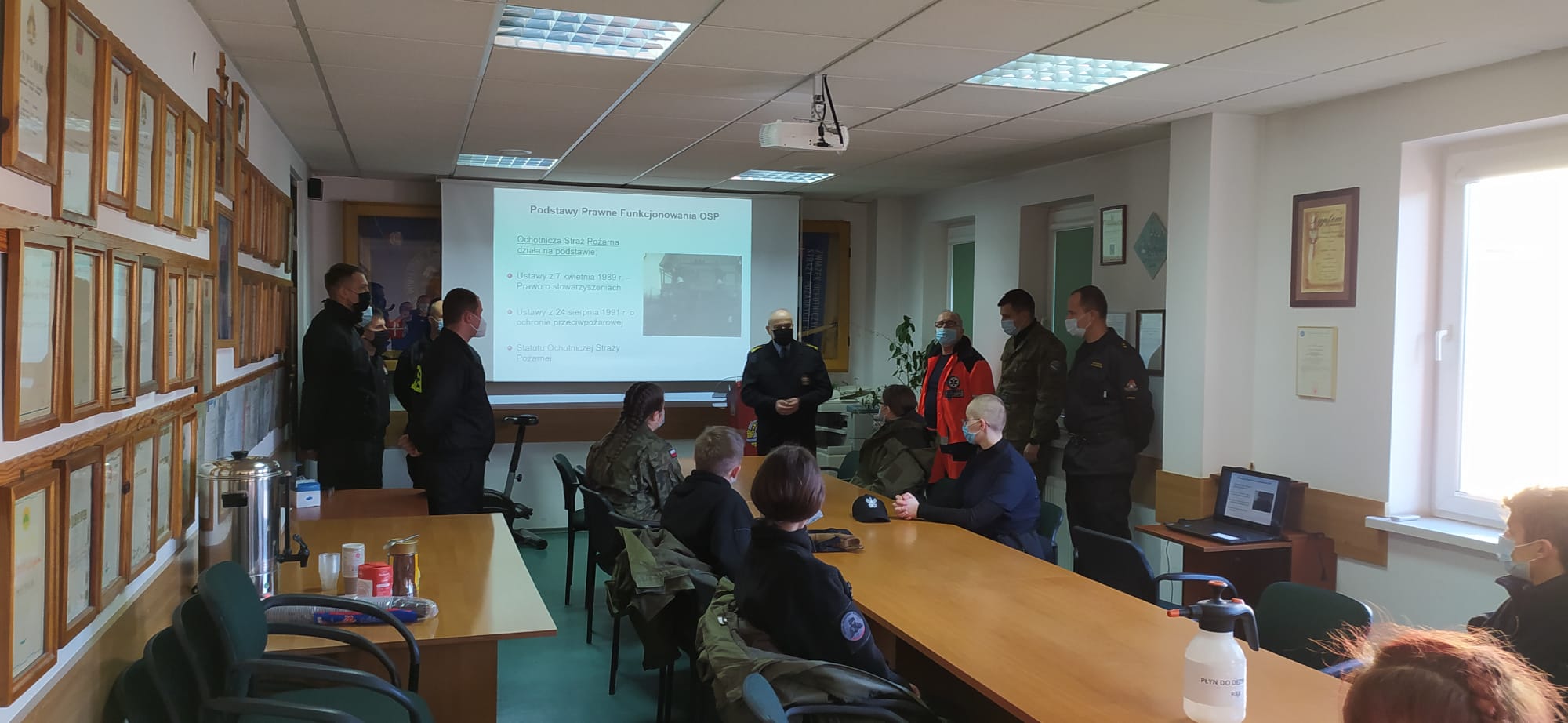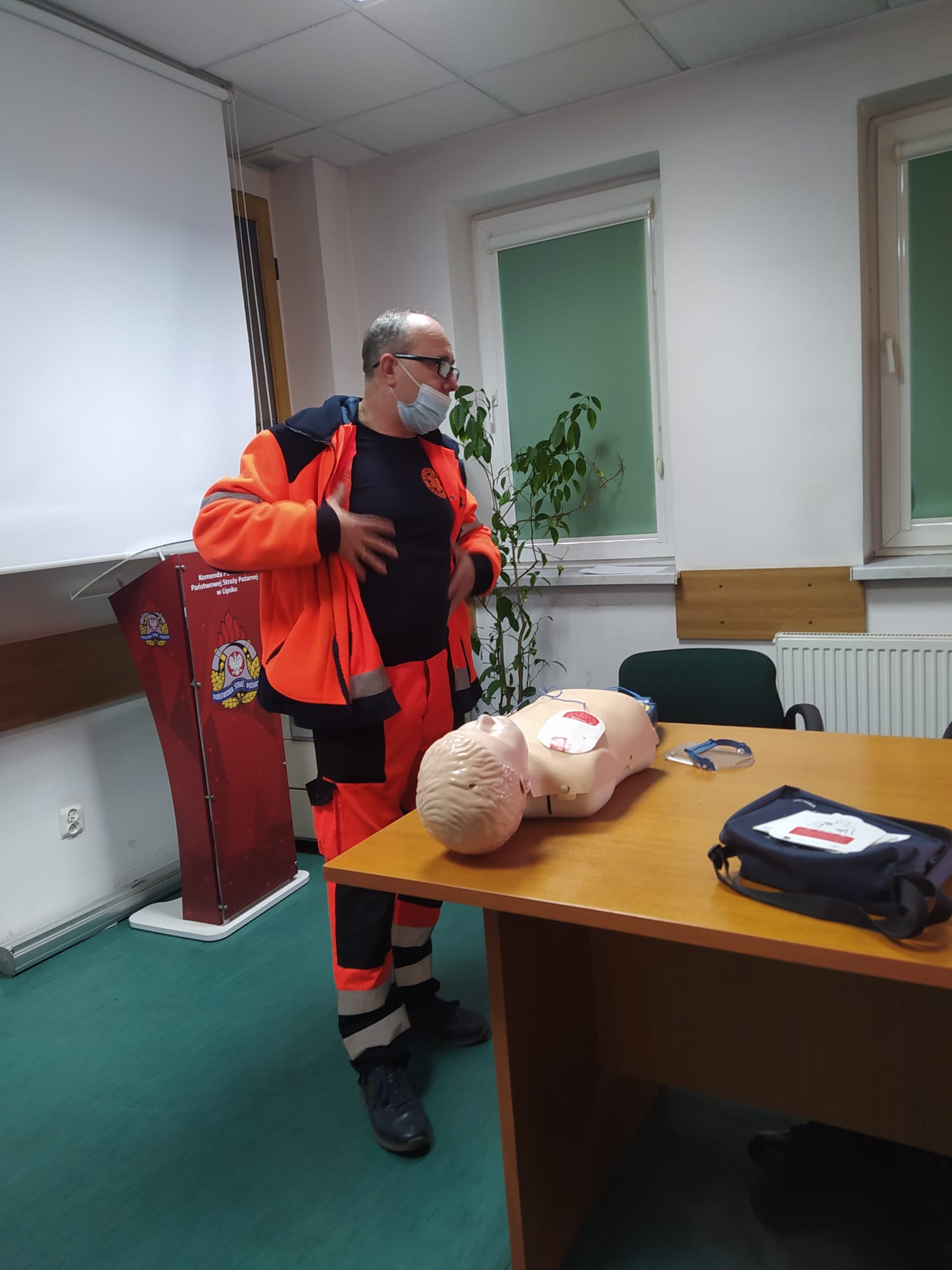 W KP PSP w Lipsku w dniu 3 .12.2021 roku zostało przeprowadzone szkolenie z zakresu bezpieczeństwa przeciwpożarowego oraz ratownictwa medycznego dla członków Związku Strzeleckiego "Strzelec" Organizacji Społeczno-Wychowaczej JS nr 1005 im. Płk Dionizego Czachowskiego w Lipsku zrzeszającej młodzież szkół średnich z Lipska i Solca n/Wisłą. Szkolenie rozpoczeło się od złożenia meldunku Komendantowi Powiatowemu st.bryg. Tomaszowi Krzyczkowskiemu, który na początku przedstawił strukturę organizacyjną ochrony p. poż w Polsce. Następie zapoznał z jednostkami ochrony p. poż. jakie występują w kraju, oraz scharakteryzował system bezpieczeństwa w tym KSRG i stan organizacyjny ochrony w powiecie lipskim. Zwrócił uwagę na przypadającą w br. 30 rocznicę uchwalenie przez Sejm Ustaw ustrojowych z 24 .08.1991 r. o ochronie o. poż. i powołaniu Państwowej Straży Pożarnej. Kolejnym punktem była umiejętność zgłoszeń zdarzeń oraz zapoznania z numerami alarmowymi. Nawiązano kontakt z Centrum Powiadamiania Ratunkowego (CPR) w Radomiu. Następnie została przedstawiona prezentacja z zakresu udzielania kwalifikowanej pierwszej pomocy medycznej, podział na grupy szkoleniowe i warsztaty medyczne, które prowadzili ratownicy medyczni : mł.asp.Msteusz Wudarczyk - koordynator powiatowy PSP, dh Sławomir Krzos -koordynator powiatowy OSP, drużynowy ZS Sebastian Bugaj -koordynator Strzelca. Na podsumowanie szkolenia i warsztatów medycznych przyjechał Zespół PRM z SPZOZ w Lipsku.