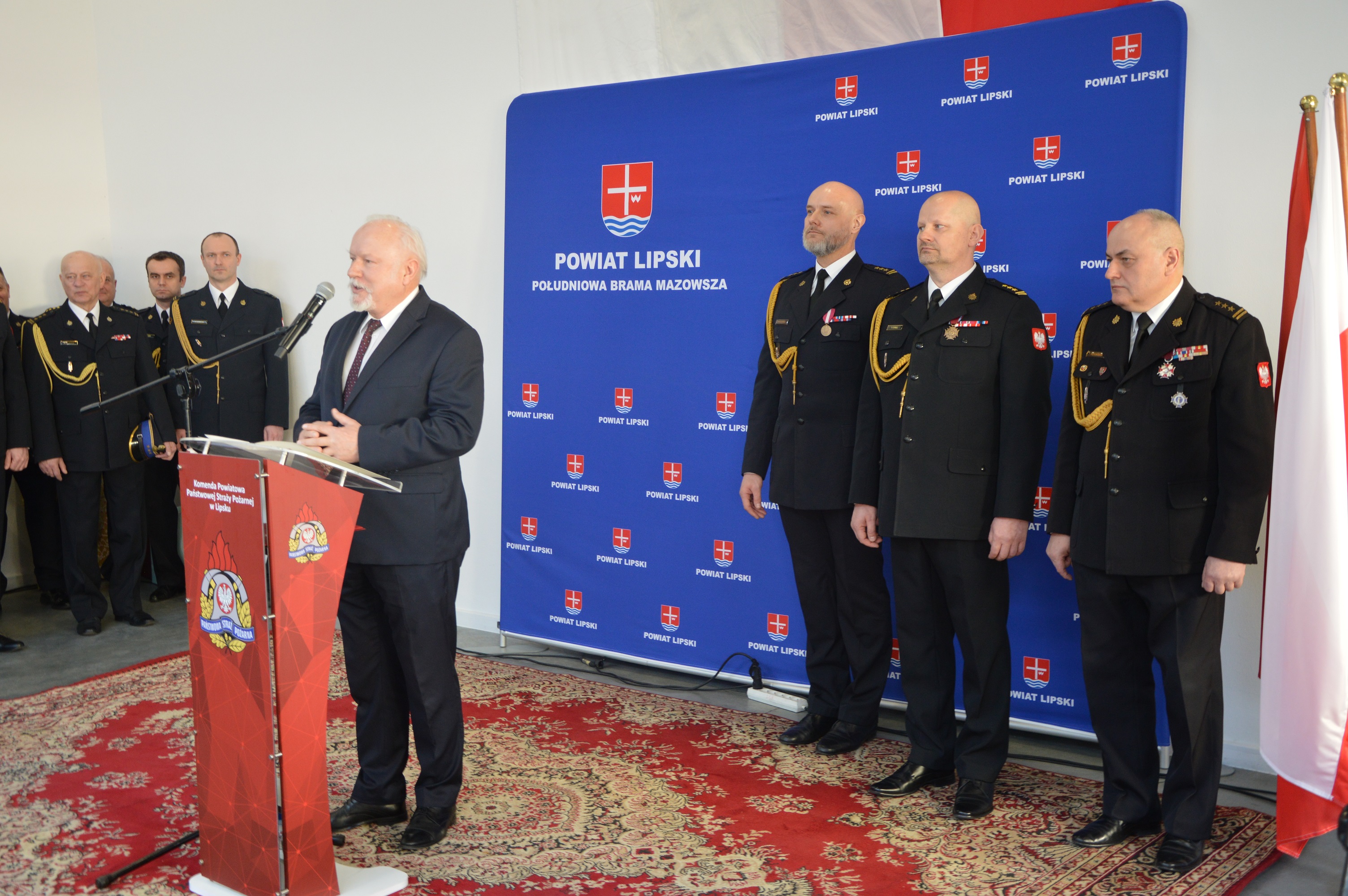 W imieniu Mazowieckiego Komendanta PSP st. bryg. Tomasz Cybul, podziękował zdającemu obowiązki komendantowi za blisko 27 lata ciężkiej pracy w garnizonie mazowieckim oraz włożony wkład w zapewnienie bezpieczeństwa na terenie Mazowsza. Następnie pogratulował st. bryg. Łukaszowi Maciejewskiemu, któremu wręczył akt powołania na stanowisko Komendanta Powiatowego PSP w Lipsku składając jednocześnie życzenia sukcesów w służbie na nowym stanowisku.