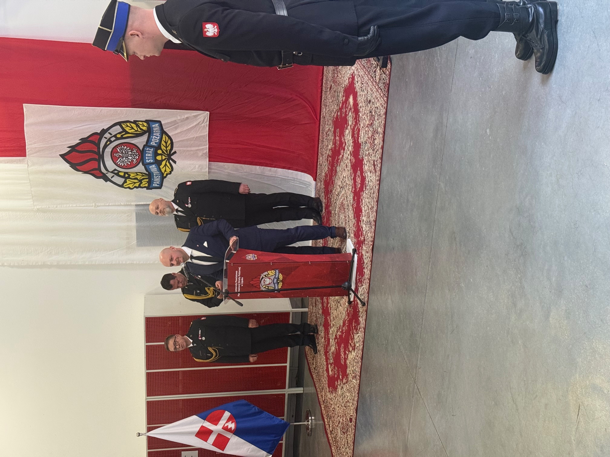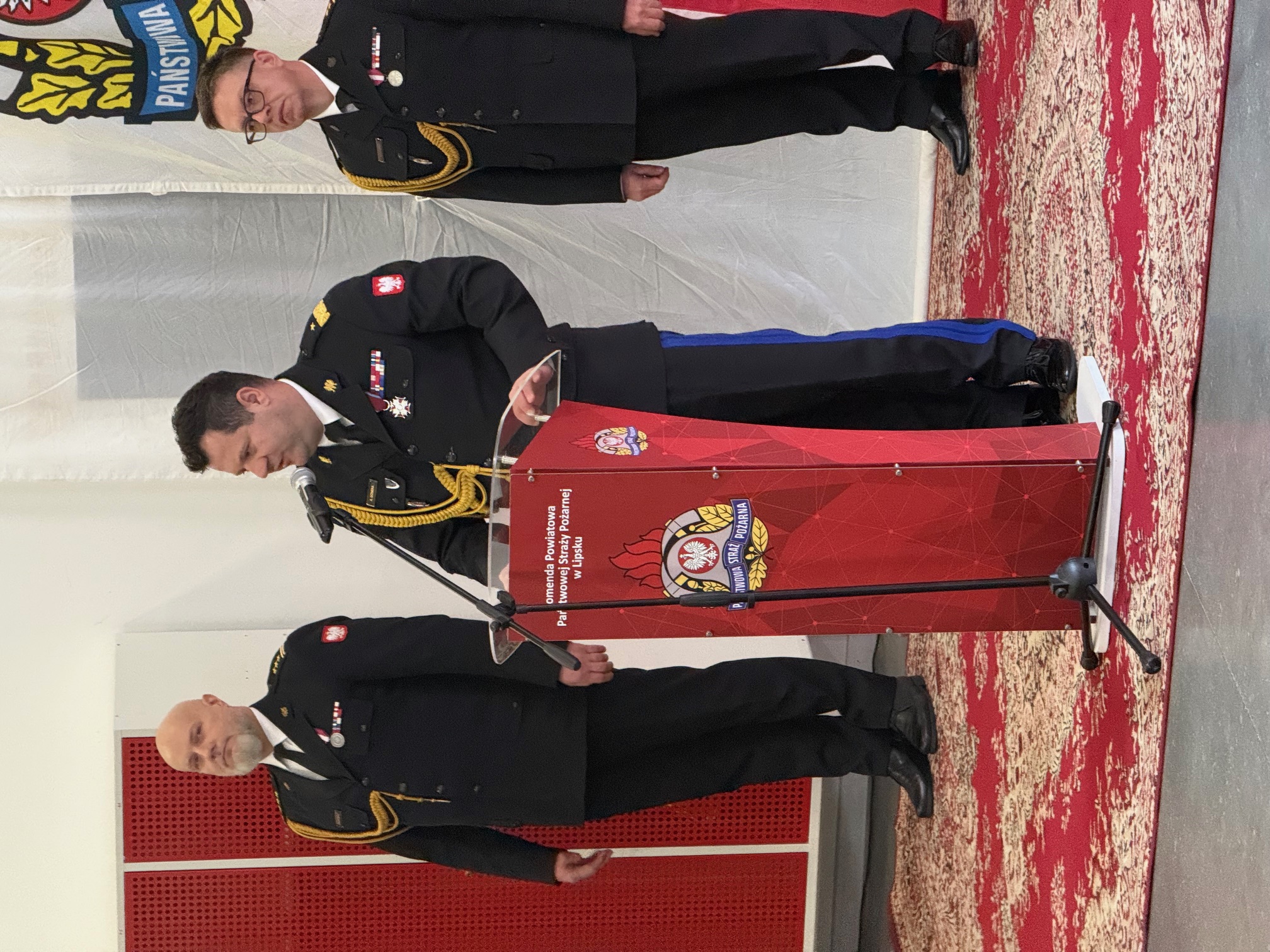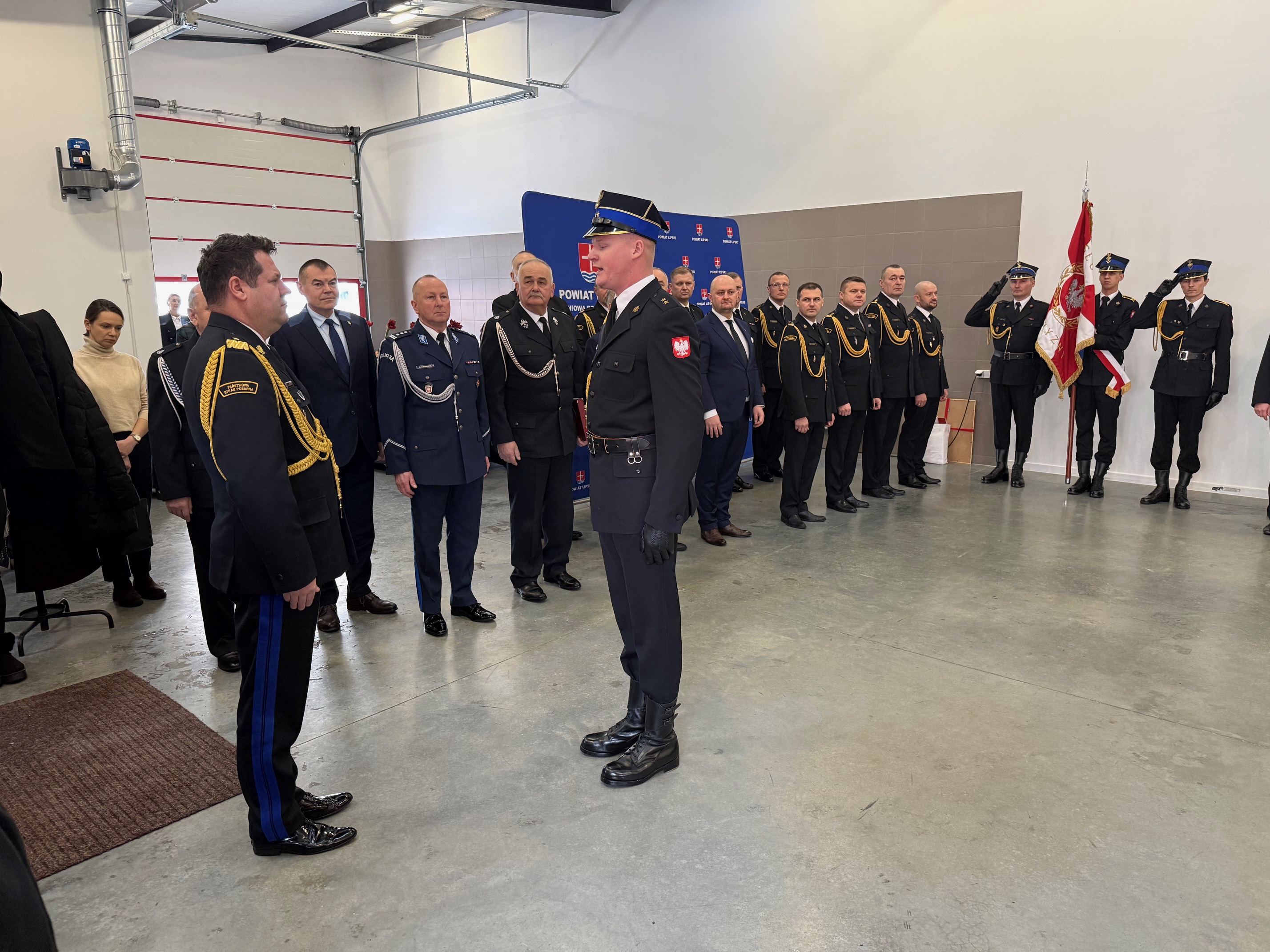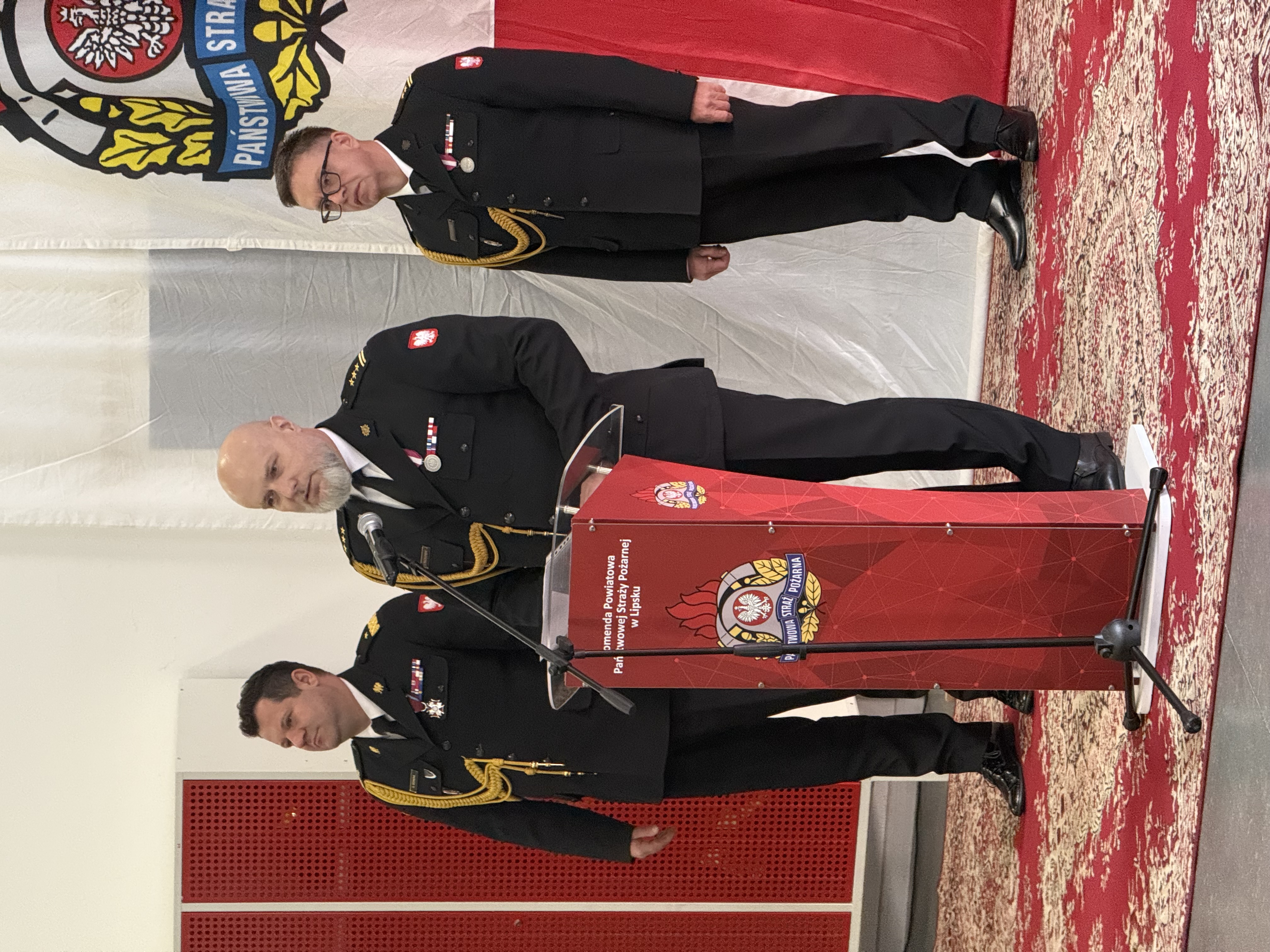 Po powitaniu zaproszonych gości zgodnie z ceremoniałem nastąpiło odczytanie decyzji o odwołaniu oraz powierzeniu obowiązków Komendanta Powiatowego Państwowej Straży Pożarnej w Lipsku. Pożegnanie dotychczasowego Komendanta Powiatowego PSP w Lipsku st. bryg. Łukasza Maciejewskiego ze sztandarem i zdanie obowiązków służbowych Komendanta Powiatowego PSP w Lipsku. Od dnia 13 stycznia 2026 roku zgodnie z decyzją Mazowieckiego Komendanta PSP powierzono obowiązki Komendanta Powiatowego PSP w Lipsku bryg. Arturowi Kucharskiemu