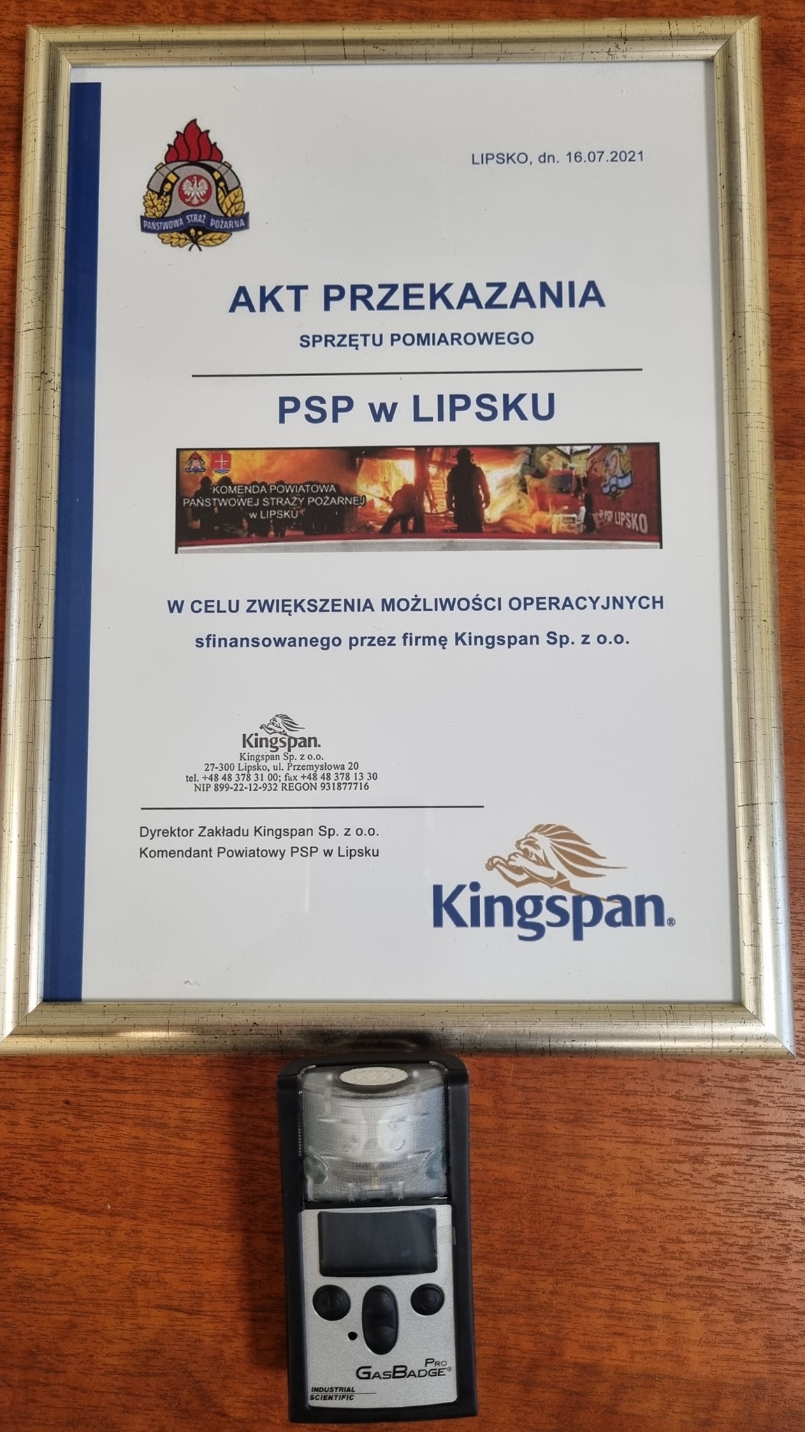 Przedsiębiorstwo Kingspan w lipcu br. przekazało Komendzie Powiatowej Państwowej Straży Pożarnej w Lipsku nowoczesny miernik jednogazowy w celu poprawy możliwości operacyjnych. Dzięki bardzo dobrej współpracy obecnie firma Kingspan przekazała pieniądze na Fundusz Wsparcia Mazowieckiego Komendanta Wojewódzkiego PSP w Warszawie, który następnie dokona zakupu i przekaże Komendzie Powiatowej PSP w Lipsku zestaw elektronarzędzi.