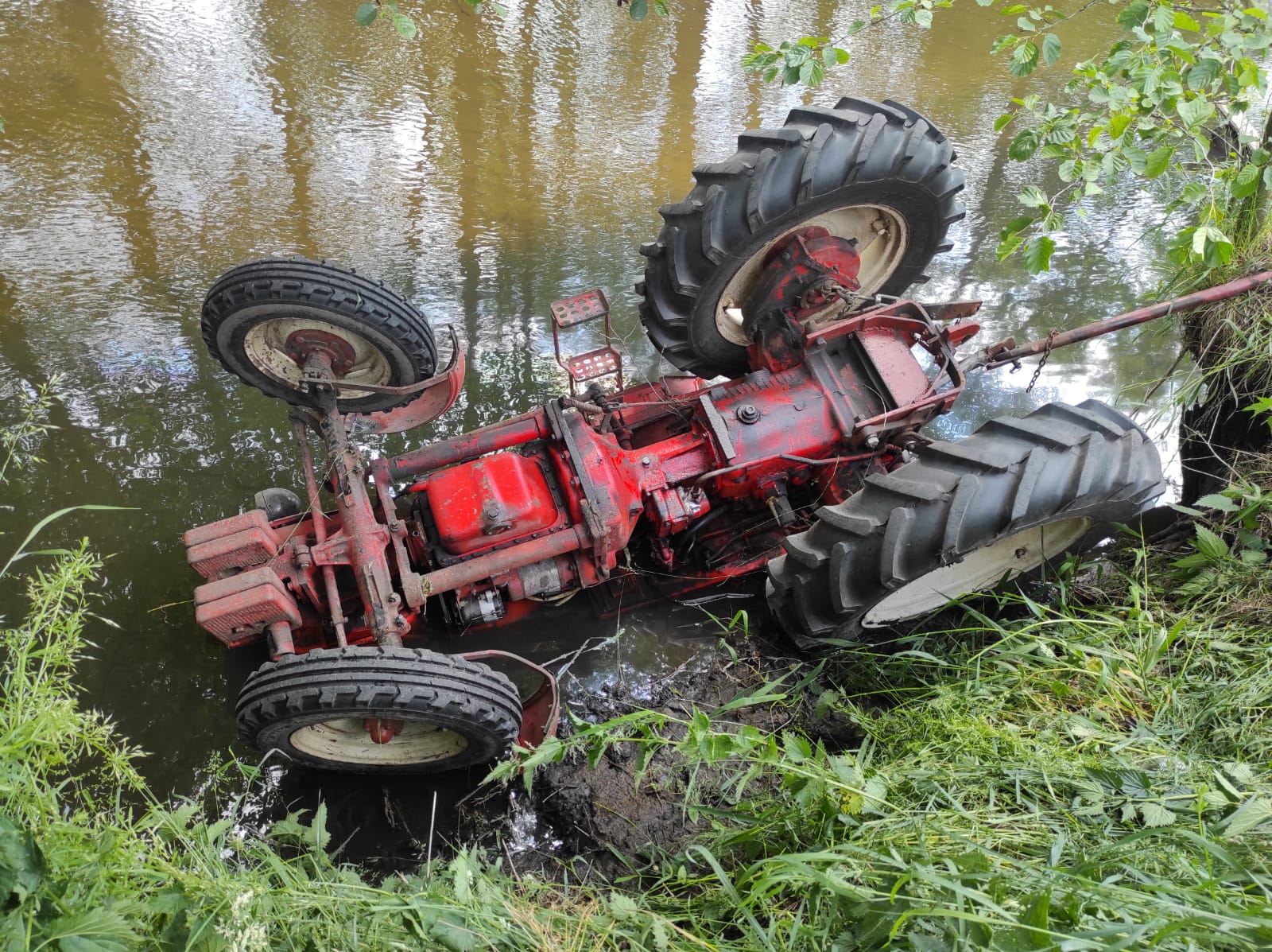 Po dojeździe na miejsce zdarzenia teren działań zabezpieczono. W wyniku rozpoznania KDR stwierdził przewrócony ciągnik rolniczy z podpiętą zgrabiarką do siana w rzece iłżance, ciągnik znajdował się na dachu. Ciągnikiem rolniczym podróżowała jedna osoba która została wydobyta z wody przed przyjazdem pierwszych JOP. Działania przybyłych na miejsce zastępów straży pożarnej , polegały na udzieleniu kwalifikowanej pierwszej pomocy osobie poszkodowanej, zabezpieczeniu ciągnika rolniczego wraz ze zgrabiarką i wydobyciu przy pomocy lokalnej firmy usługowej. W rzece nie stwierdzono żadnego wycieku płynów z ciągnika co by mogło stwarzać zagrożenie ekologiczne.