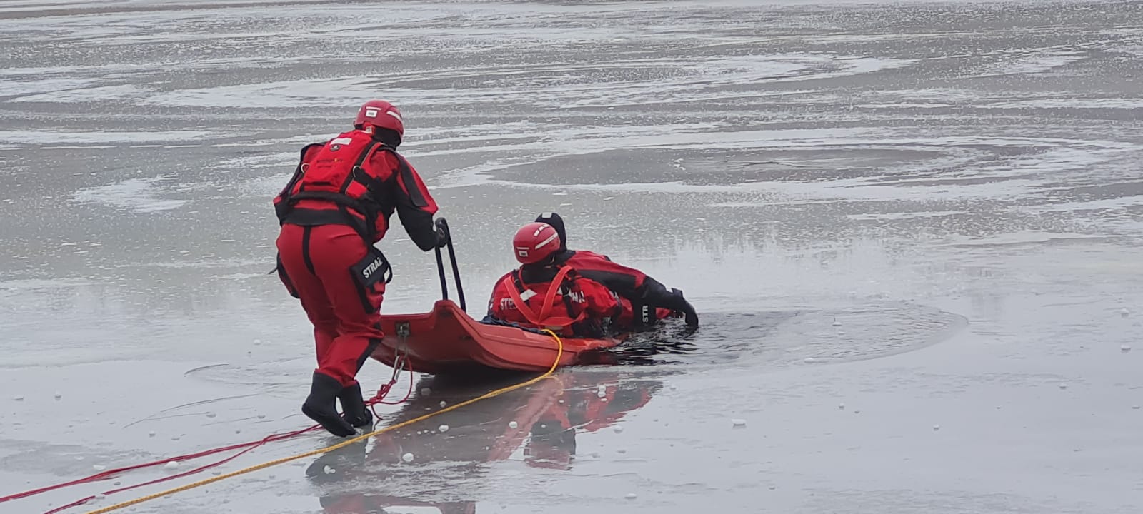 W pozorowanych działaniach ratowniczych wykorzystują posiadany sprzęt tak, aby nabyć umiejętność posługiwania w każdych warunkach atmosferycznych i terenowych. Ćwiczenia na lodzie będą realizowane w najbliższych dniach przez wszystkie zmiany słuzbowe.