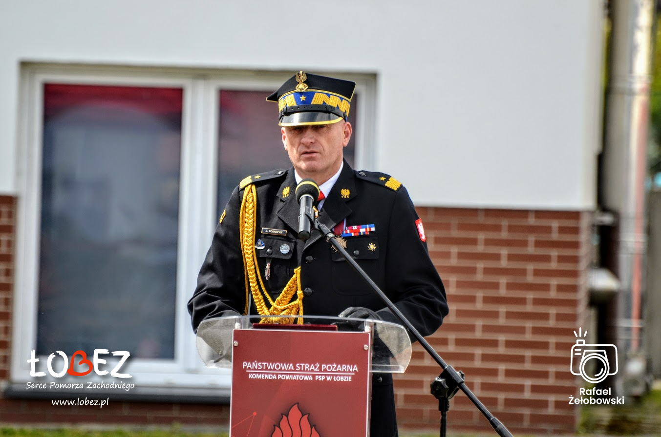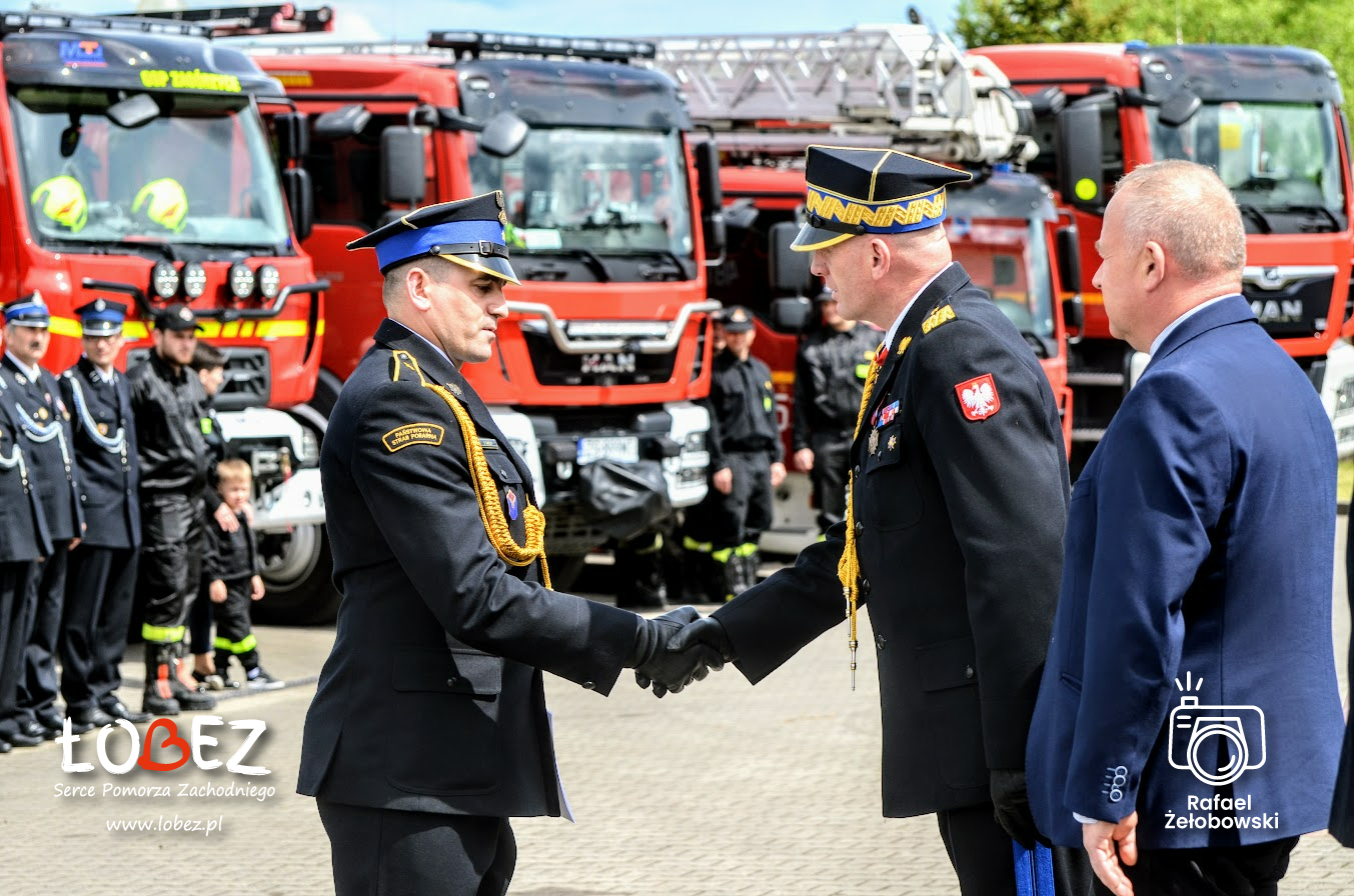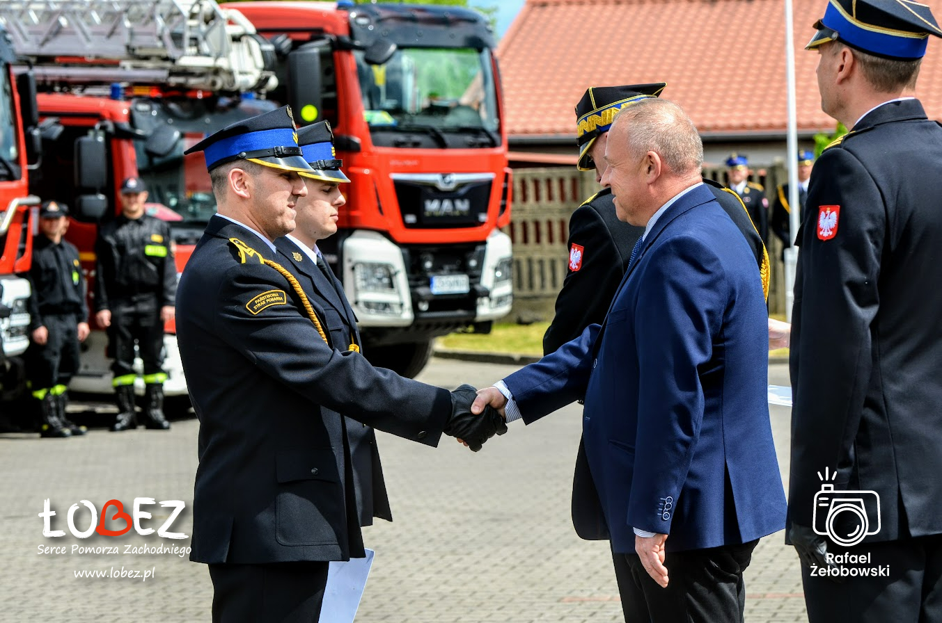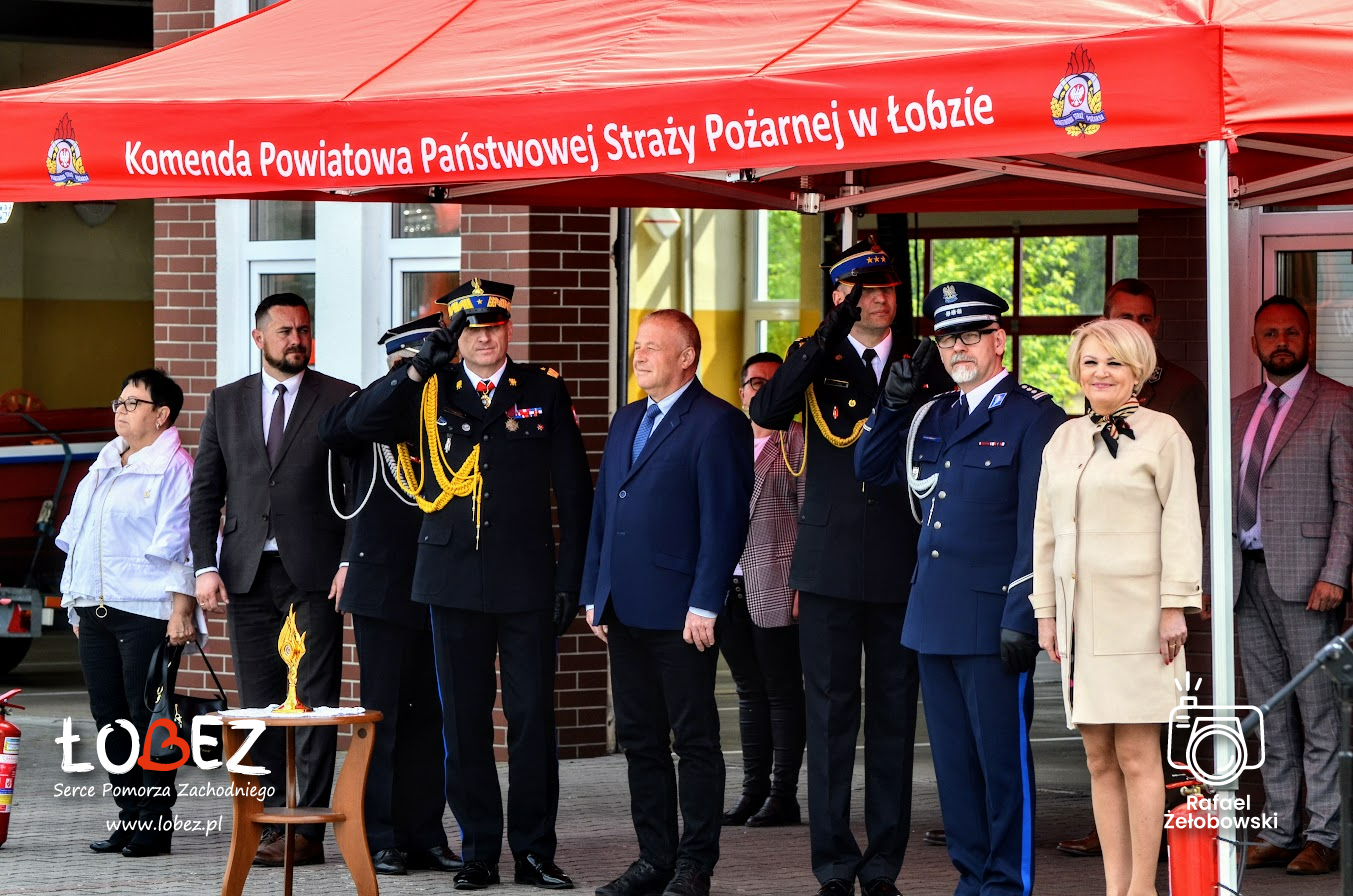 19 maja 2023 roku w Komendzie Powiatowej Państwowej Straży Pożarnej odbyły się Powiatowe Obchody Dnia Strażaka. Uroczystość rozpoczęła się złożeniem meldunku Zachodniopomorskiemu Komendantowi Wojewódzkiemu Państwowej Straży Pożarnej w Szczecinie nadbryg. Jarosławowi Tomczykowi przez kpt. Jacka Tymę – dowódcę uroczystości. Zachodniopomorski Komendant Wojewódzki w asyście dowódcy uroczystości dokonał przeglądu pododdziałów. Z okazji święta strażackiego podniesiona została flaga państwowa i odśpiewany został wspólnie hymn Polski. Komendant Powiatowy Państwowej Straży Pożarnej w Łobzie bryg. Jacek Dziurdz wygłosił okolicznościowe przemówienie oraz przywitał gości.