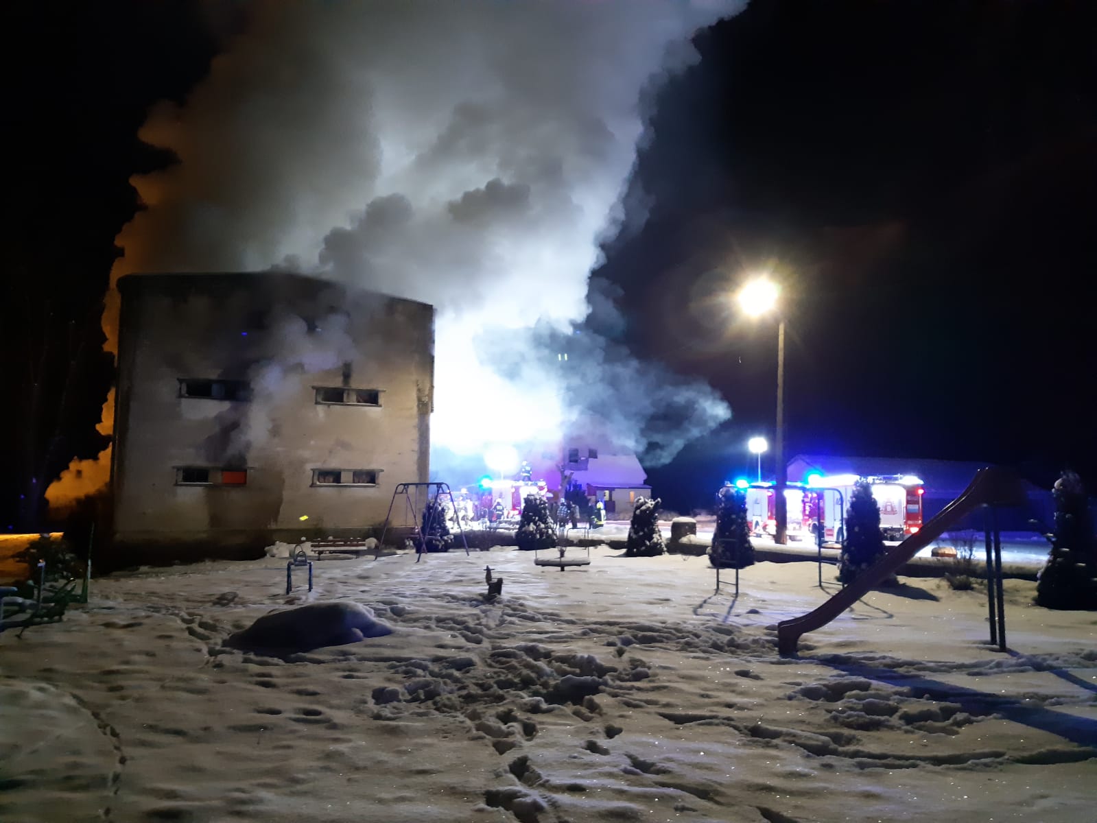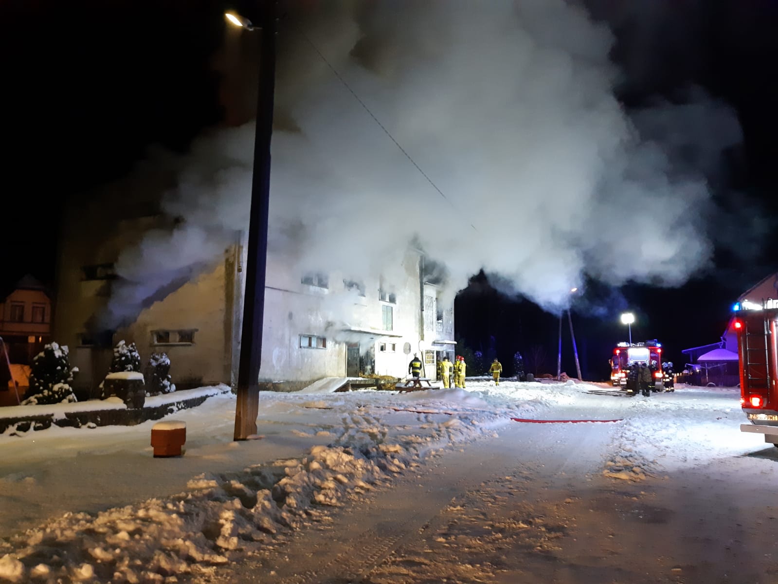 Aktualnie na miejscu zdarzenia trwają dzialania gaśnicze, które będą trwały do późnych godzin nocnych.