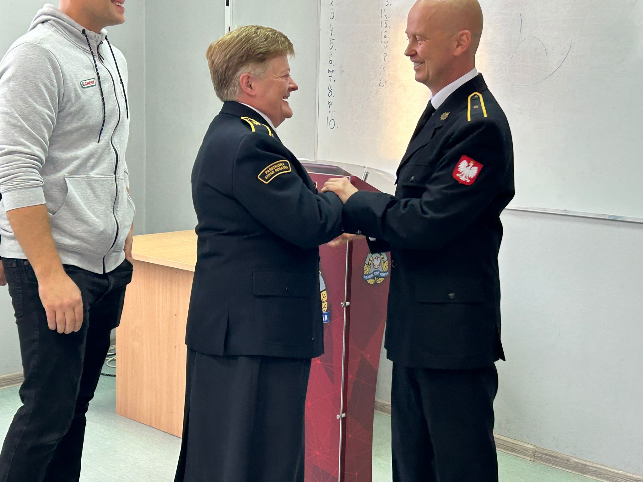 W dniu 02.10.2023r. w KP PSP Łobez odbyła się uroczysta zbiórka z okazji pożegnania oraz podziękowania naszemu koledze asp. Arturowi Mazurkowi, który z dniem 30 września 2023 roku opuścił nasze szeregi i przeszedł na zaopatrzenie emerytalne. Asp. Artur Mazurek przygodę z Państwową Strażą Pożarną rozpoczął w dniu 12 grudnia 2005 r. W toku swoje służby Artur sukcesywnie szkolił się i podnosił swoje kwalifikacje. Na początku służbę swoją rozpoczął w JRG Łobez jako stażysta, następnie jako młodszy ratownik-kierowca i ratownik kierowca. Później został przeniesiony na SK KP w Łobzie i tam służbę swoją pełnił jak dyspozytor następnie jako dyżurny stanowiska kierowania. Po czym ponownie wrócił na podział bojowy na stanowisko operator sprzętu specjalnego,a następnie awansował na stanowisko d-cy zastępu. Następnie został przniesiony do KP PSP w Łobzie na stanowisko st. inspektora sztabowego ds. operacyjnych, z tego stanowiska Artur odszedł na zaopatrzenie emerytalne. Artur podczas swoich służb wielokrotnie był nagradzany za wzorowe wykonywanie swoich obowiązków służbowych oraz wykonywanie prac poza swoim zakresem czynności.