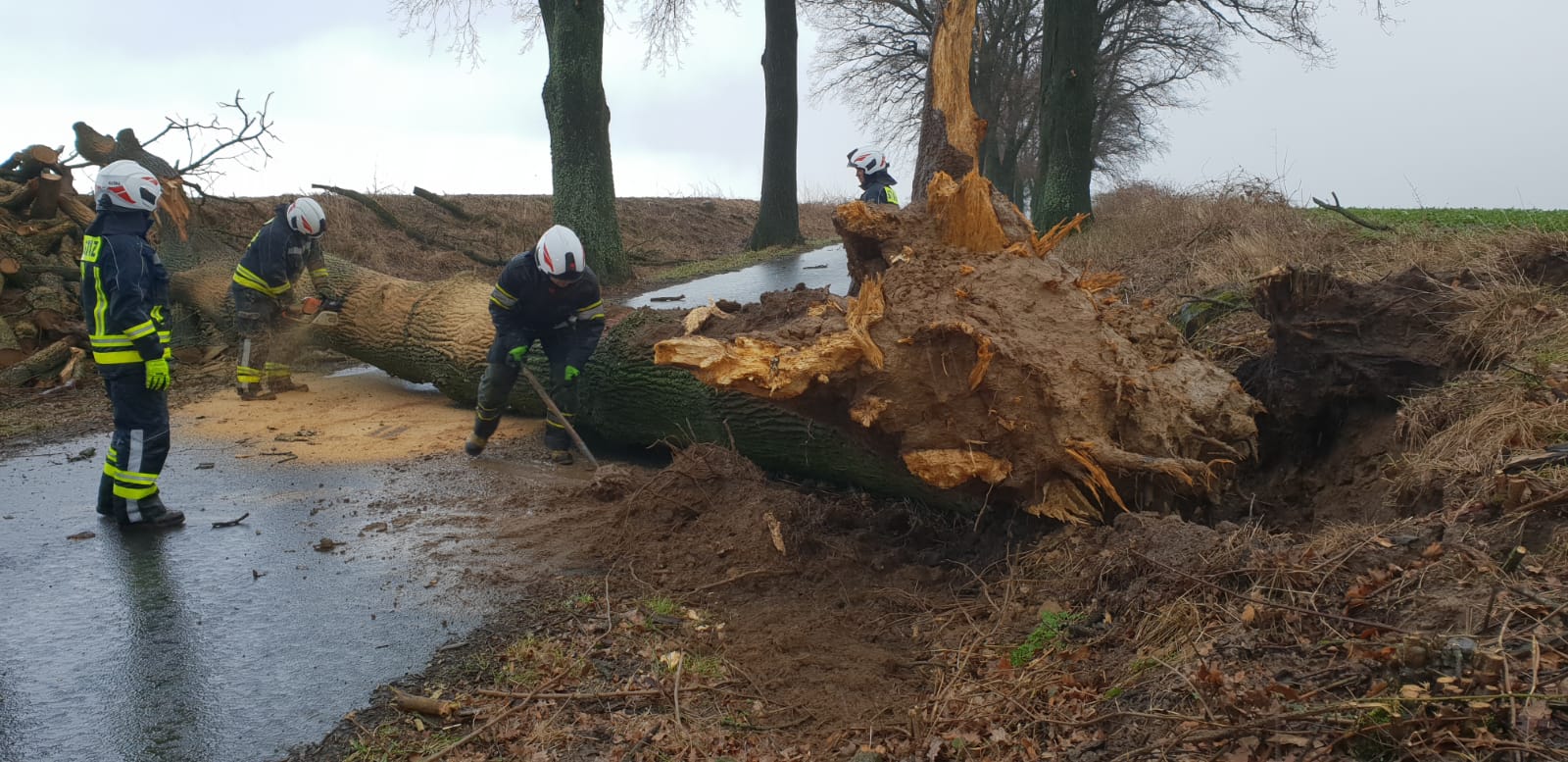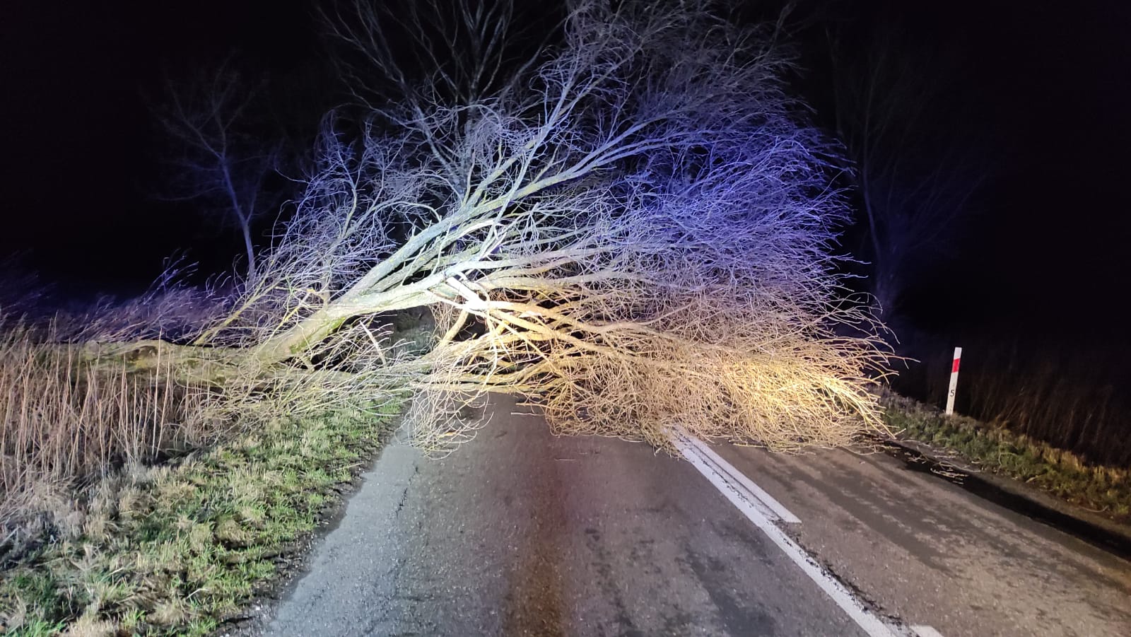 Powalone drzewa, zerwane linie energetyczne, uszkodzone dachy i kilka innych miejscowych zagrożeń.