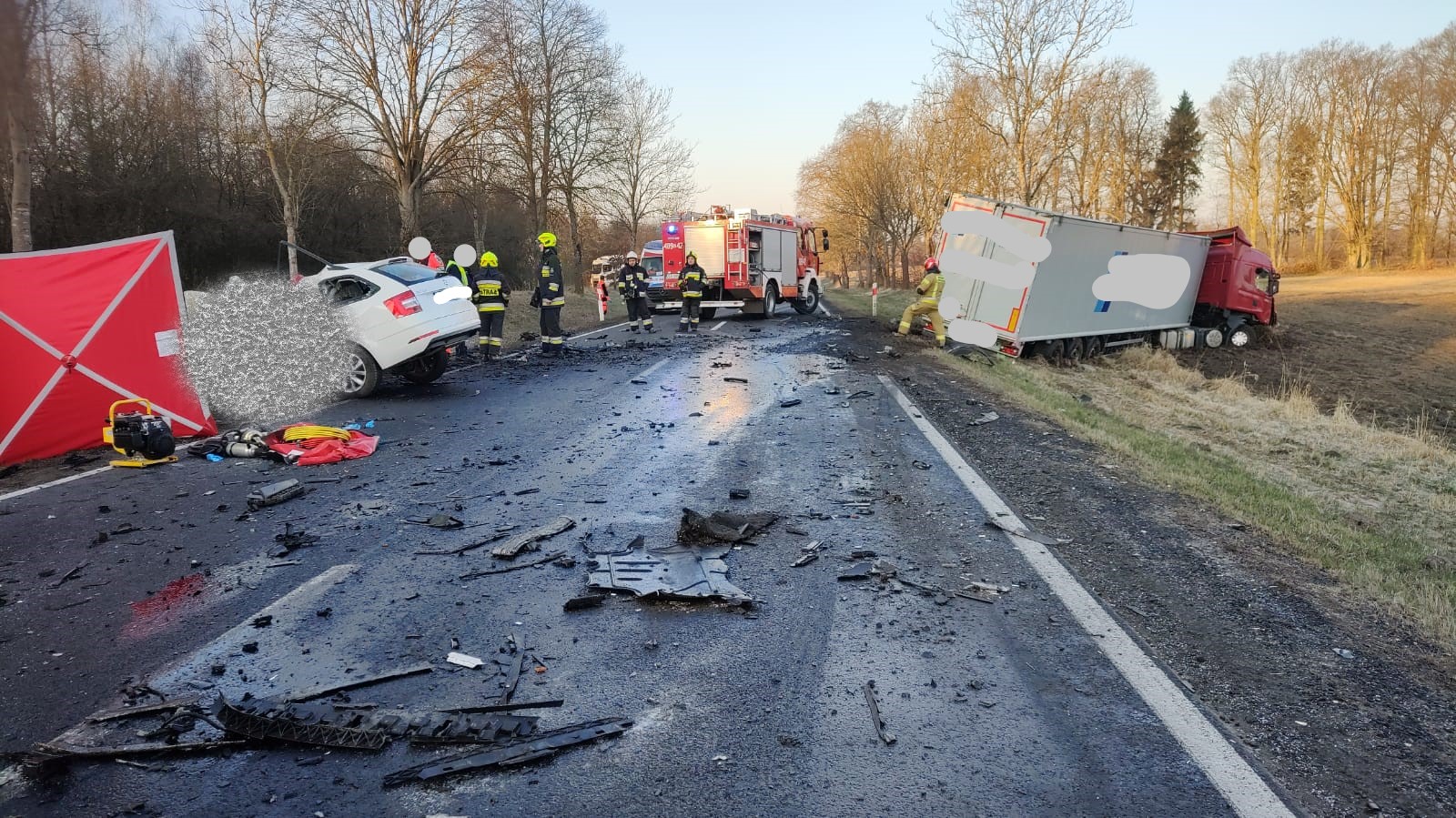 ZRM przeprowadził segregację poszkodowanych, niestety lekarz stwierdził zgon 3 osób podróźujących samochodem osobowym.