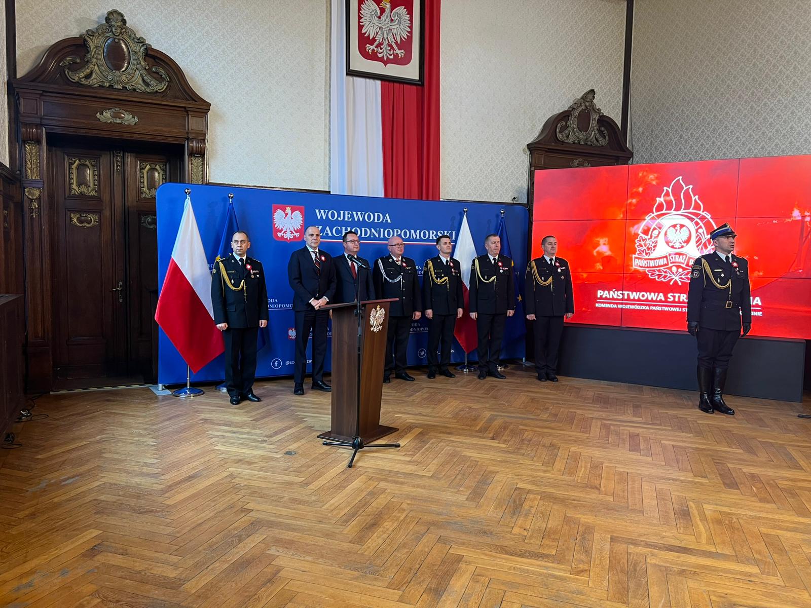 Z okazji Narodowego Święta Niepodległości, w piątek 15 listopada 2024 roku w Sali Rycerskiej Zachodniopomorskiego Urzędu Wojewódzkiego w Szczecinie odbyła się uroczystość wręczania odznaczeń i wyróżnień oraz awansów na wyższe stopnie służbowe.