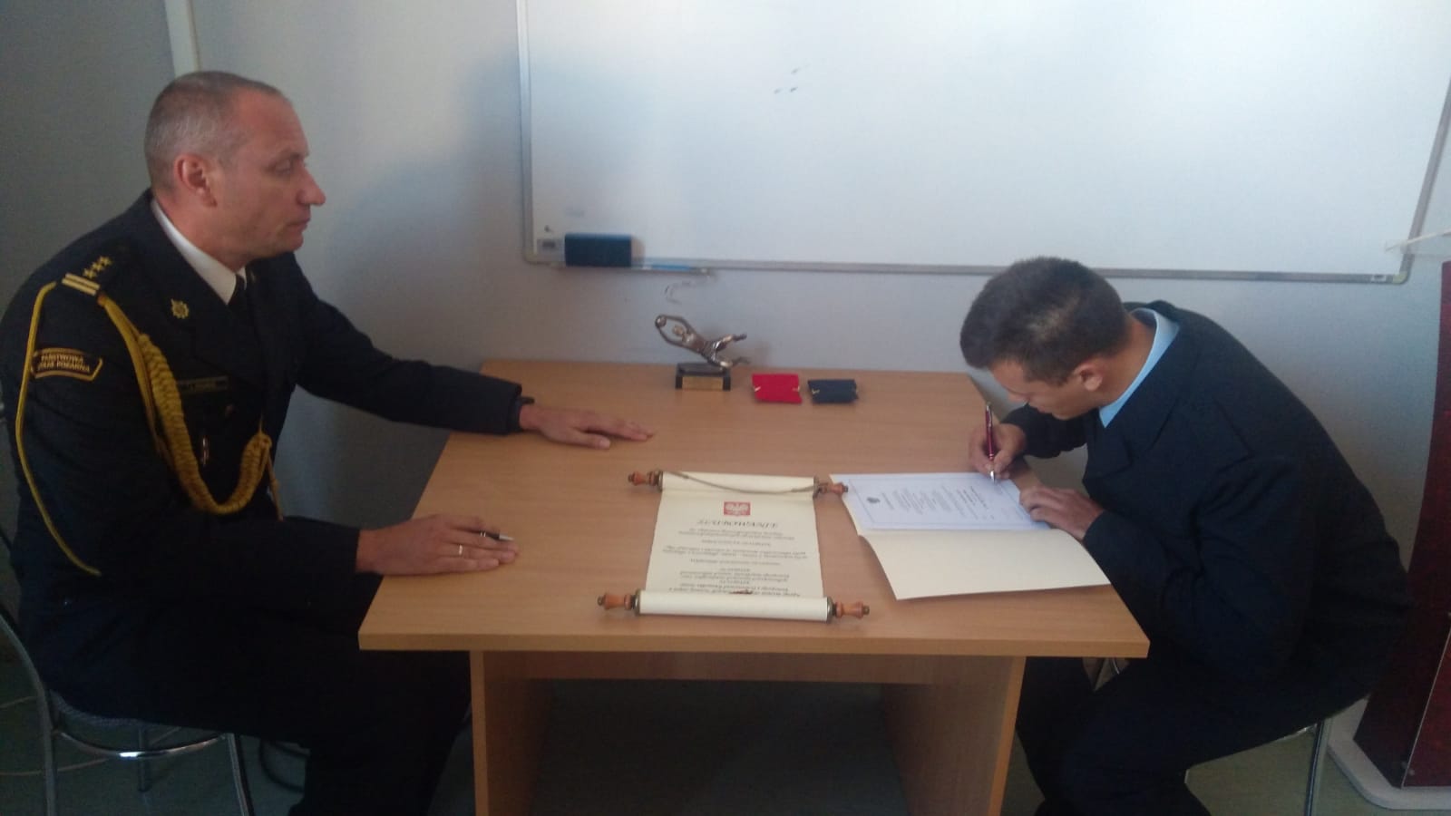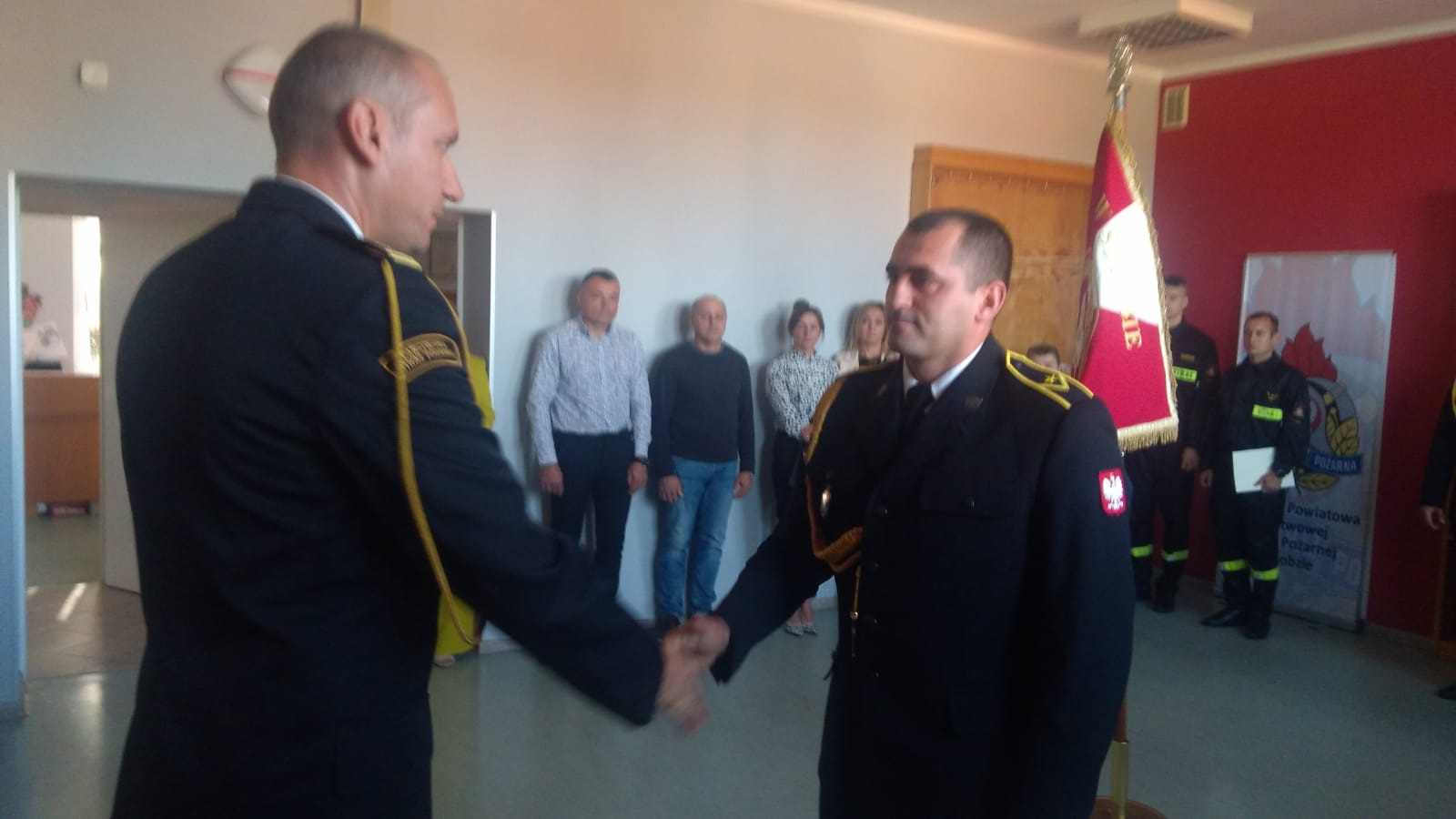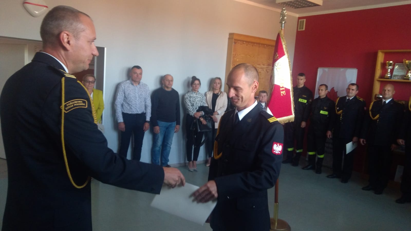 Następnie st. bryg. Jacek Dziurdz odczytał decyzje personalne Komendanta Głównego PSP nagradzające trzech funkcjonariuszy nagrodą pienieżną za zaangażowanie podczas działań gaśniczych we Francji gdzie udali się w ramach modułu gaśniczego GFFFV przeznaczonego do gaszenia pożarów lasów z ziemi z użyciem pojazdów. Była to już 37 Międzynarodowa Akcja Ratownicza Państwowej Straży Pożarnej.