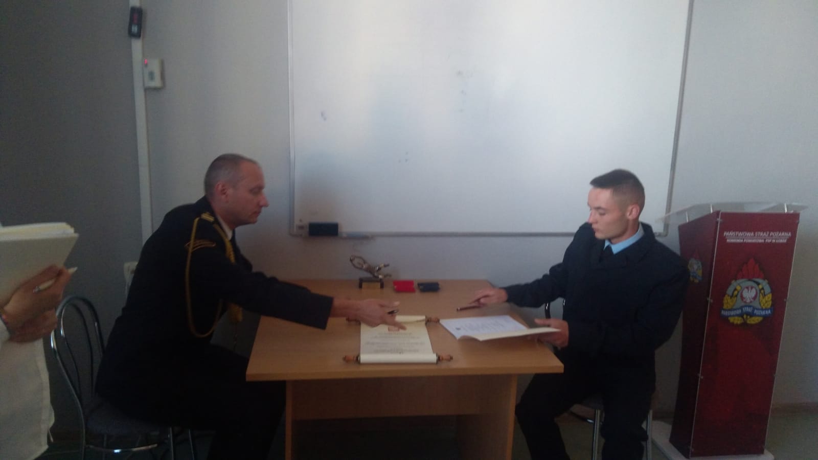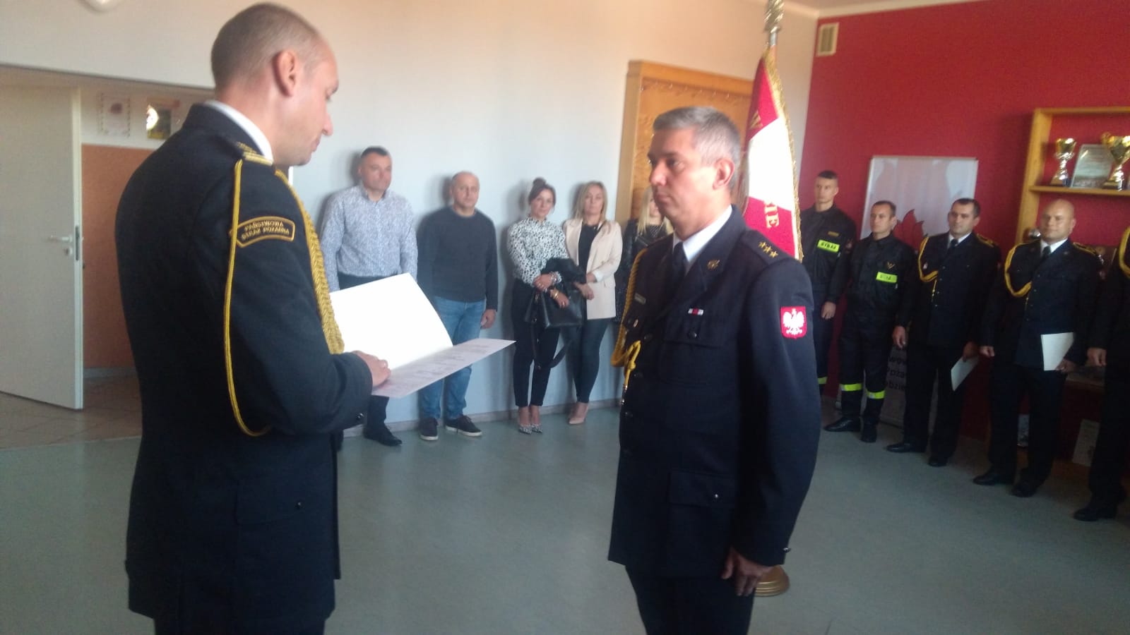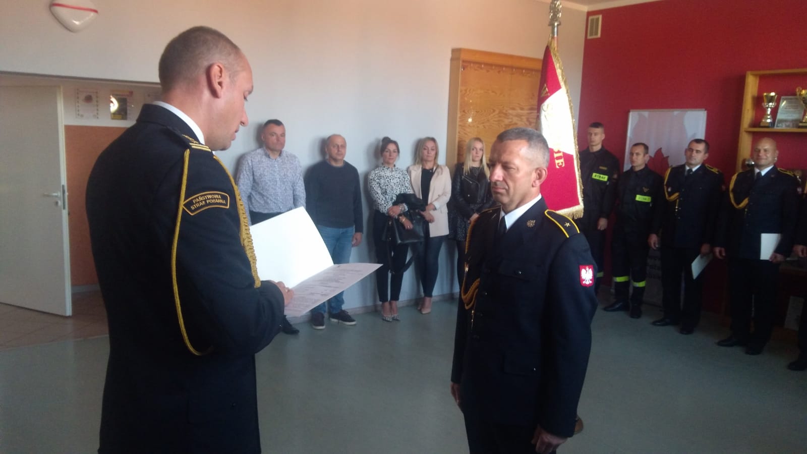 w obecności Zastępcy Komendanta Powiatowego PSP bryg. Sebastiana Kurłowicza, V-ce Prezesa Zarządu Oddziału Wojewódzkiego ZOSP RP dh Krzysztofa Palucha, rodzin ślubujących funkcjonariuszy, funkcjonariuszy i pracowników cywilnych komendy.