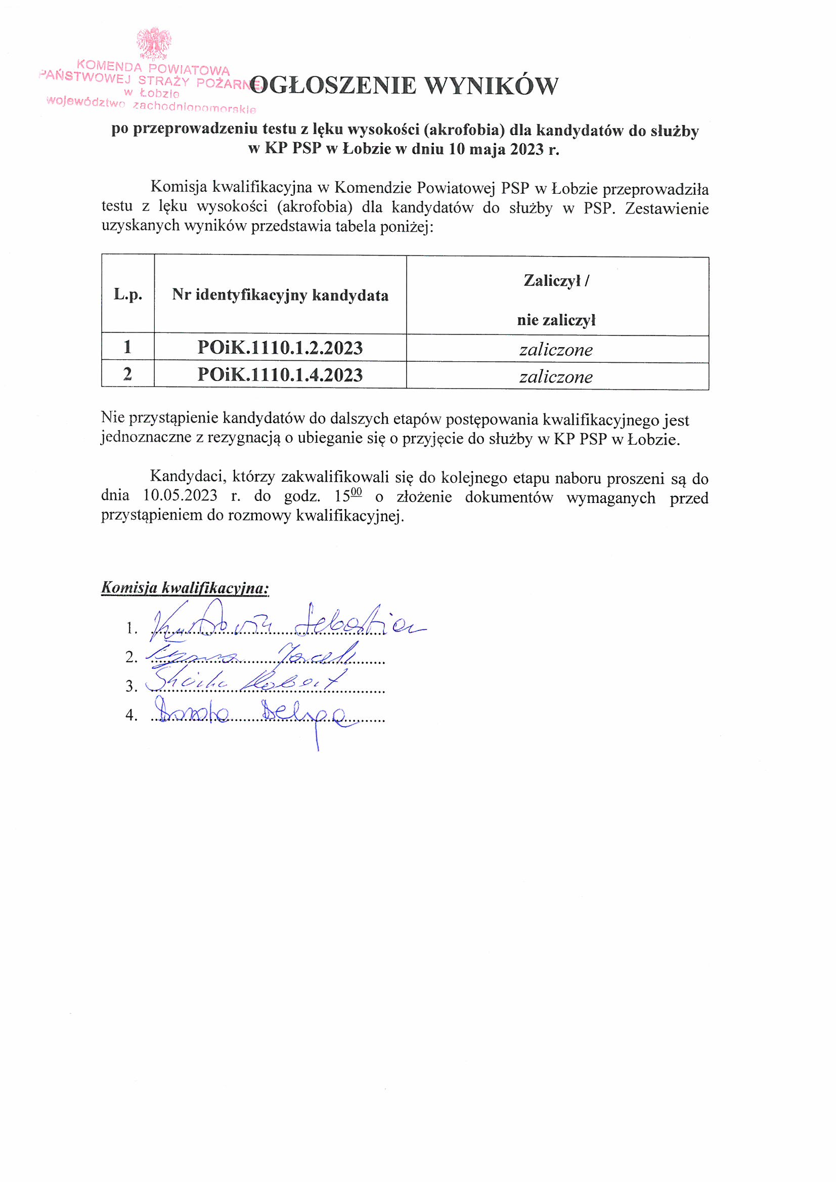Wyniki III etapu naboru do służby 10.05.2023 Materiały Wyniki III etapu naboru do służby Wyniki III etapu naboru do służby.jpg 0.25MB