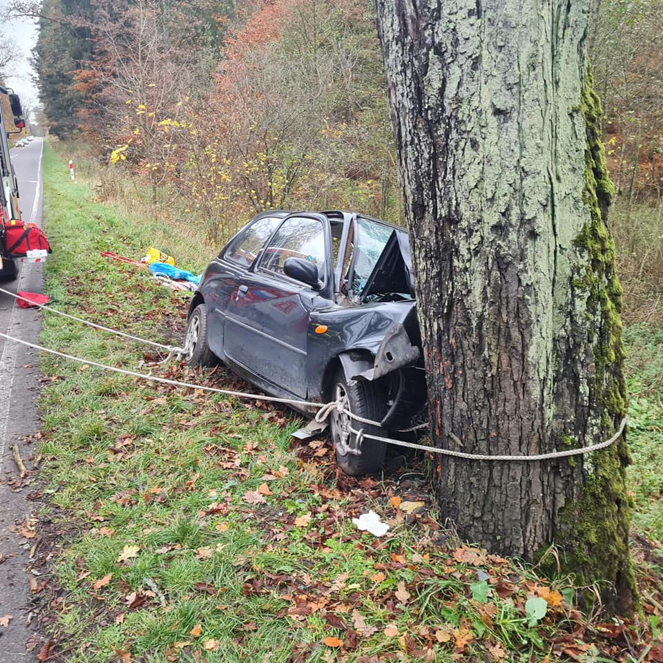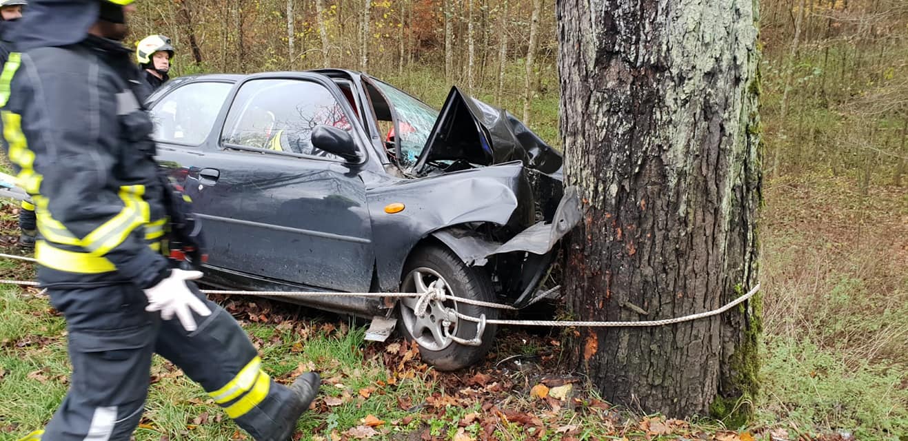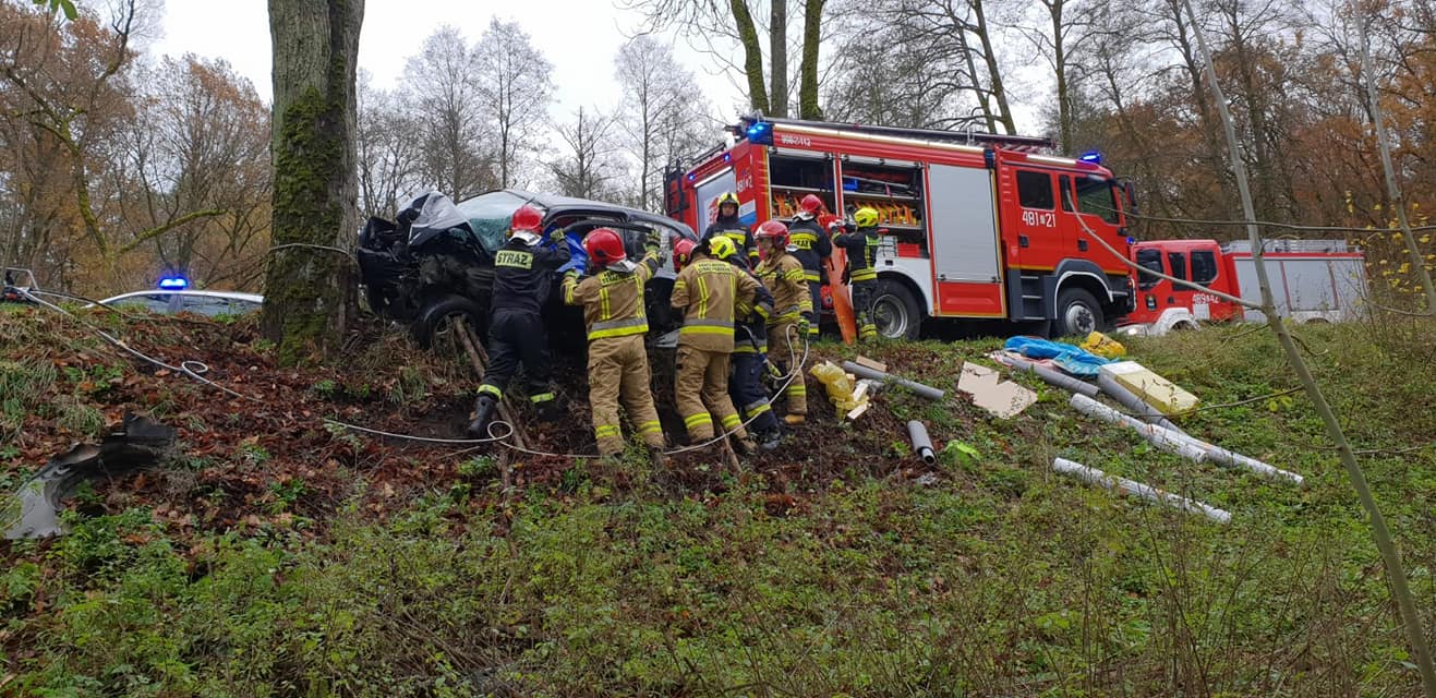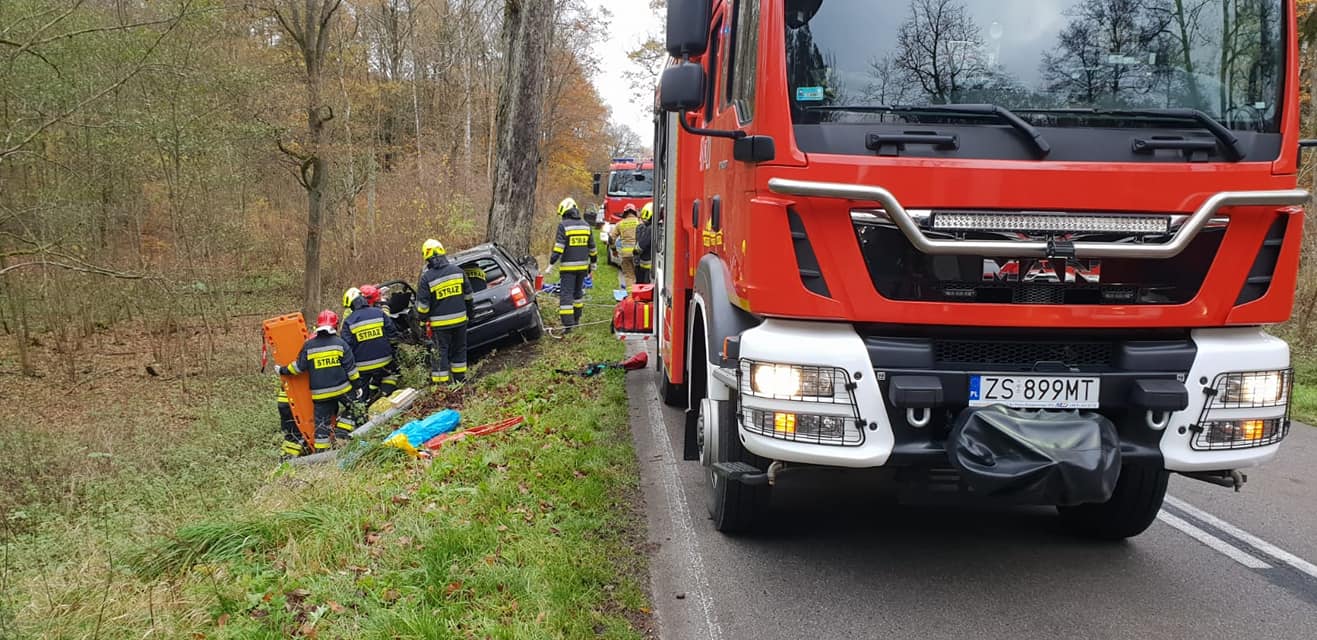 6 Listopada o godzinie 10.27 do Stanowiska Kierowania Komendanta Powiatowego Państwowej Straży Pożarnej w Łobzie wpłynęło zgłoszenie o zdarzeniu drogowym na DW - 151 ( Węgorzyno - Łobez ) . Na miejsce zdarzenia zadysponowano 2 zastępy z JRG Łobez oraz zastęp OSP Węgorzyno. Po dojeździe na miejsce zdarzenia Kierujący Działaniem Ratowniczym w toku rozpoznania ustalił, iż samochód osobowy ( Nissan Micra ) z niewyjaśnionych przyczyn zjechał na przeciwległy pas jezdni i uderzył w przydrożne drzewo. Na czas prowadzonych działań zatrzymano ruch lądowy. Działania straży polegały na stabilizacji pojazdu. Następnie za pomocą urządzeń hydraulicznych uzyskano dostęp do podzkodowanego, ewakuowano go z pojazdu i przekazano ZRM.