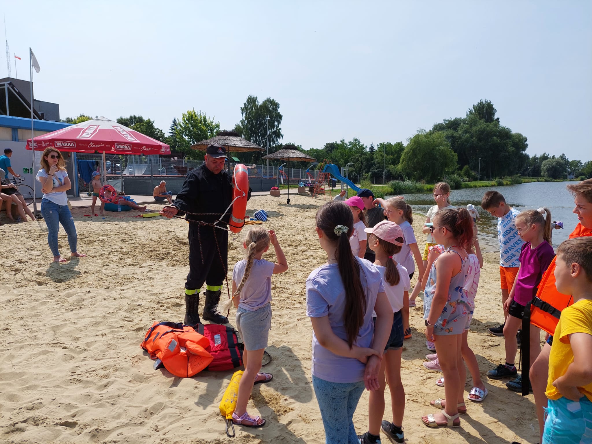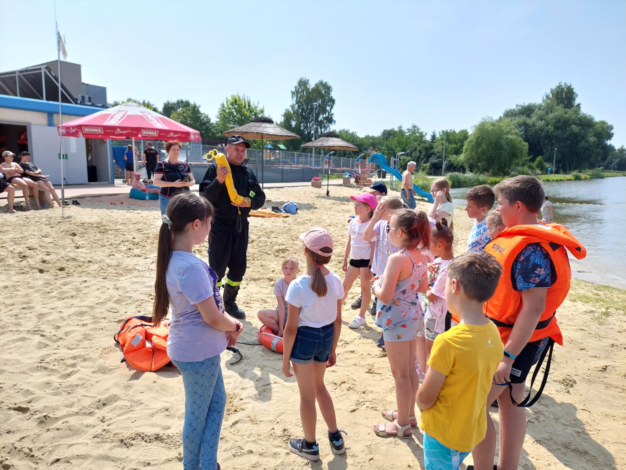 Strażacy zaznajomili dzieci ze specyfiką swojej pracy oraz udzielili cennych wskazówek jak bezpiecznie wypoczywać nad wodą.