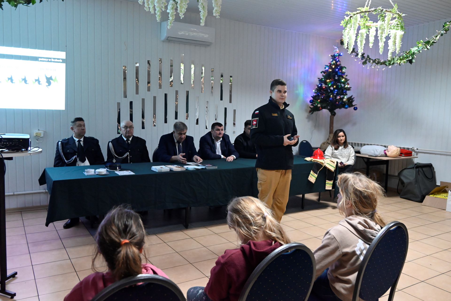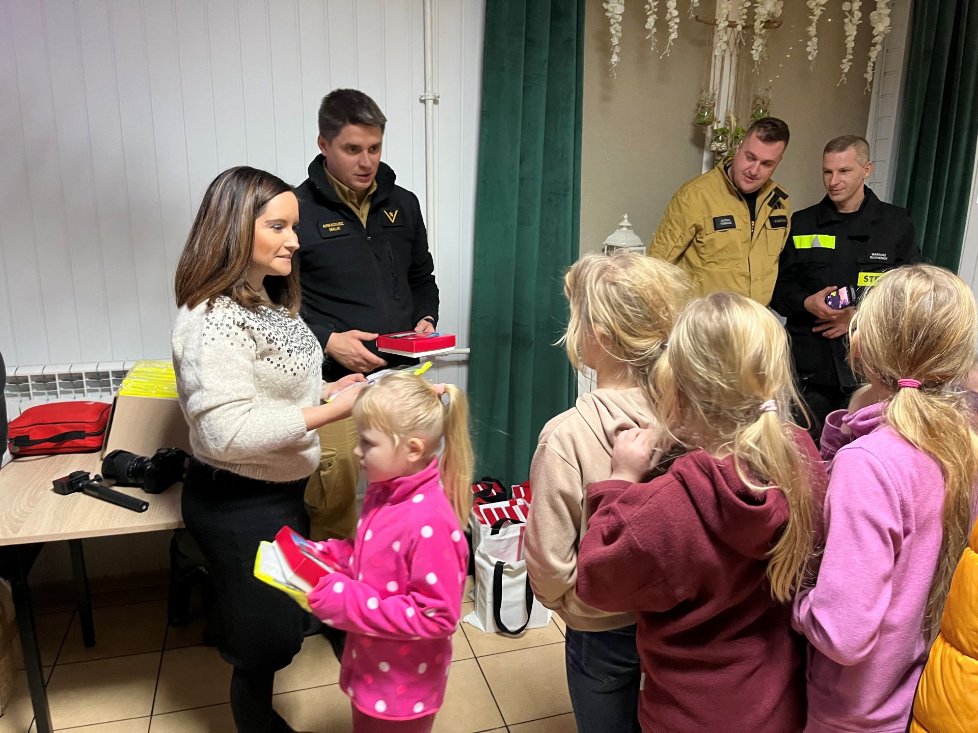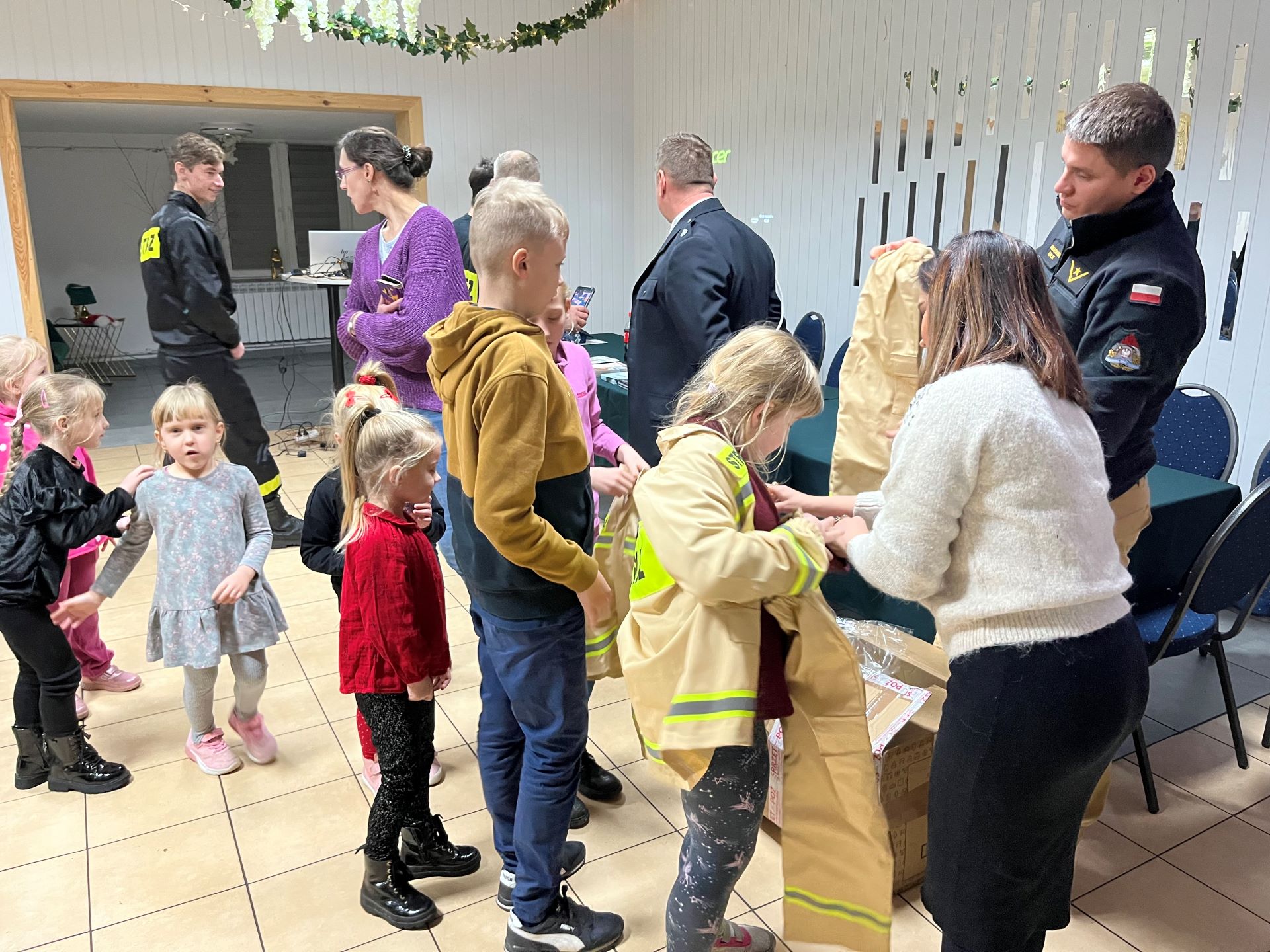 Na zakończenie oprócz możliwości przymierzenia stroju strażaka, co spotkało się z dużym zainteresowaniem, najmłodsi uczestnicy spotkania otrzymali mikołajkowe prezenty w postaci kamizelek odblaskowych oraz strażackich puzzli.