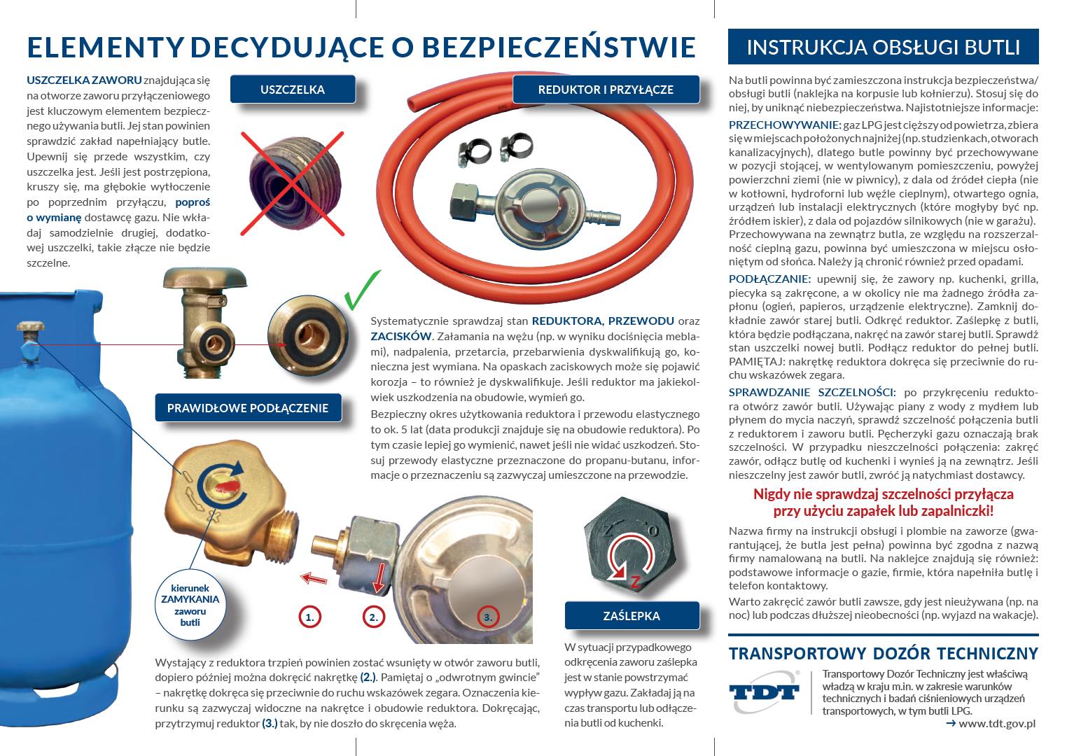 Zachęcamy do zapoznania się z ważnymi informacjami, które z pewnością poprawią świadomość i bezpieczeństwo: https://www.tdt.gov.pl/informacje/baza-wiedzy/bezpieczenstwo-butli-na-gaz-lpg/