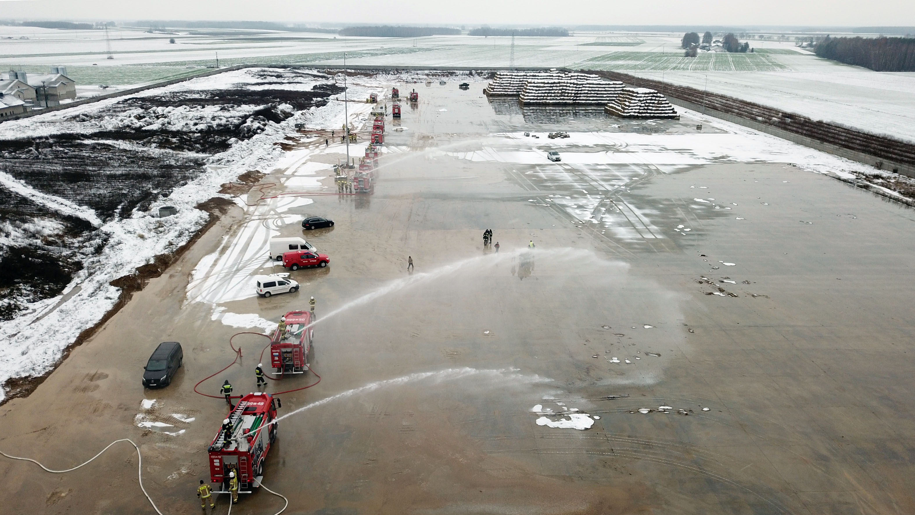 Głównym założeniem przeprowadzonych ćwiczeń było sprawdzenie wydajności działania nowej magistrali wodnej zapewniającej ciągłość działań gaśniczych w przypadku pożaru do jakiego doszło dwa lata temu na terenie zakładu.