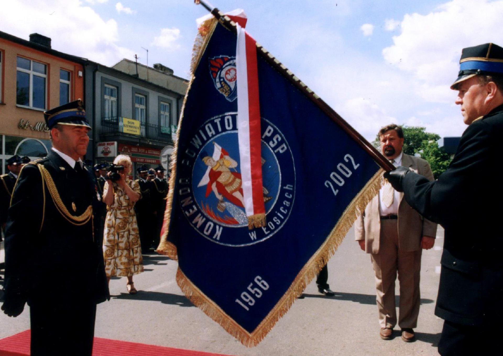 Przekazanie sztandaru Komendantowi Powiatowemu PSP w Łosicach - 2002 r.