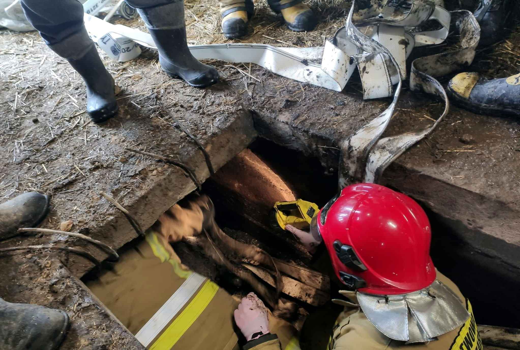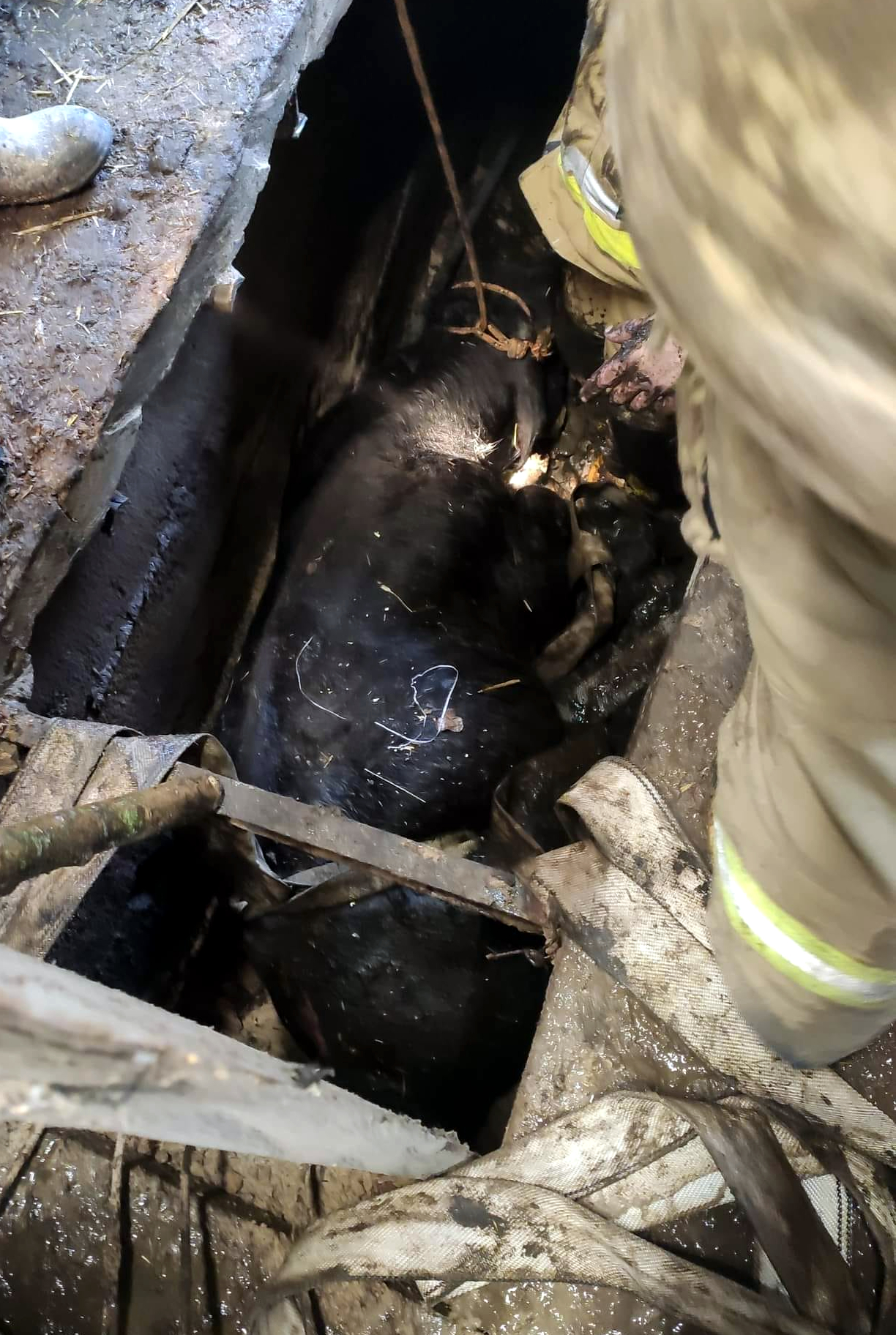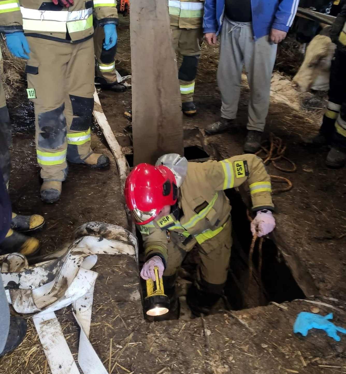 O godzinie 7:23 do Stanowiska Kierowania Komendy Powiatowej Państwowej Straży Pożarnej w Łosicach dotarło zgłoszenie o zwierzęciu - 350 kilogramowym byku, które wpadło do szamba i nie może się z niego samodzielnie wydostać.
