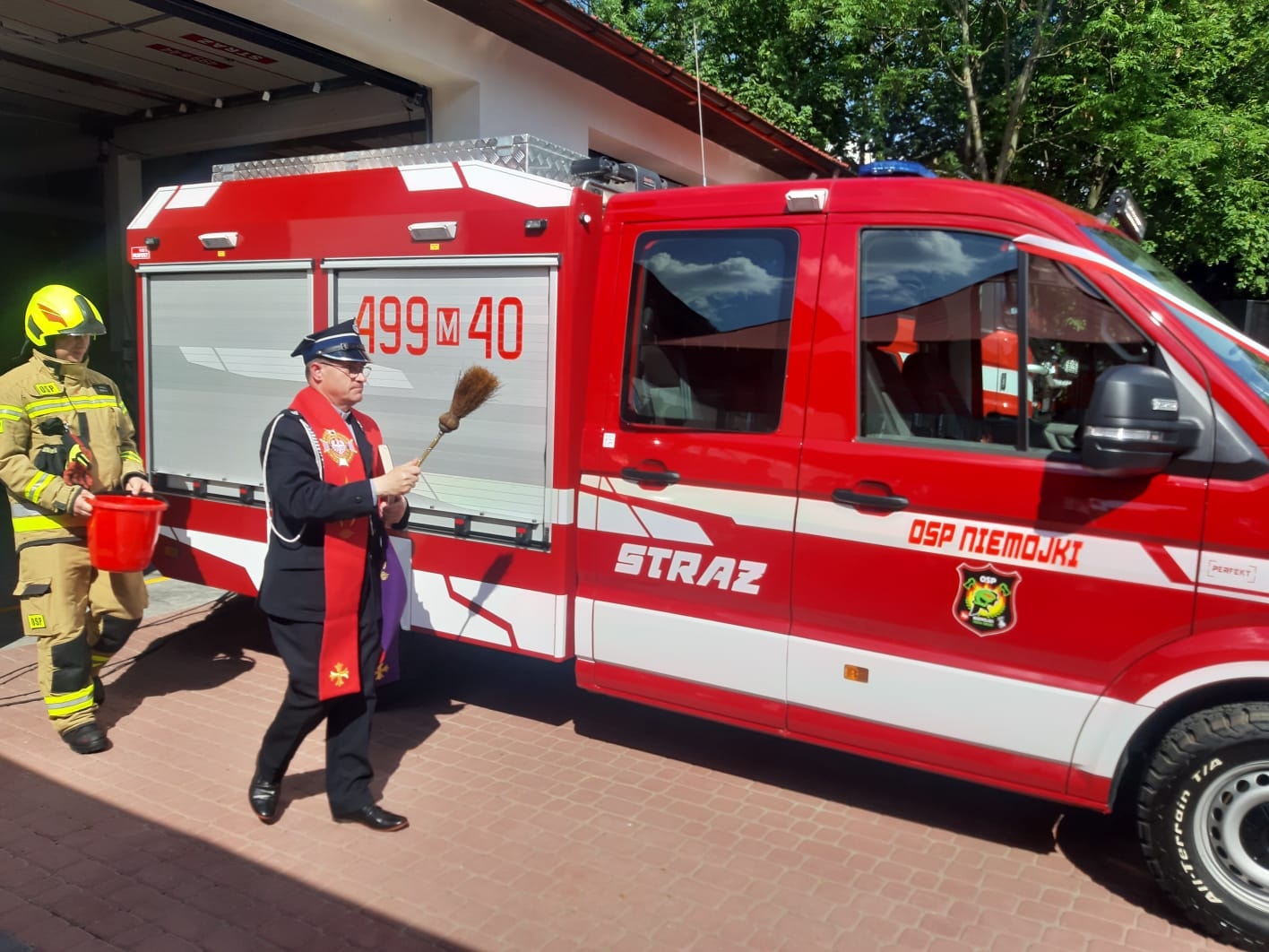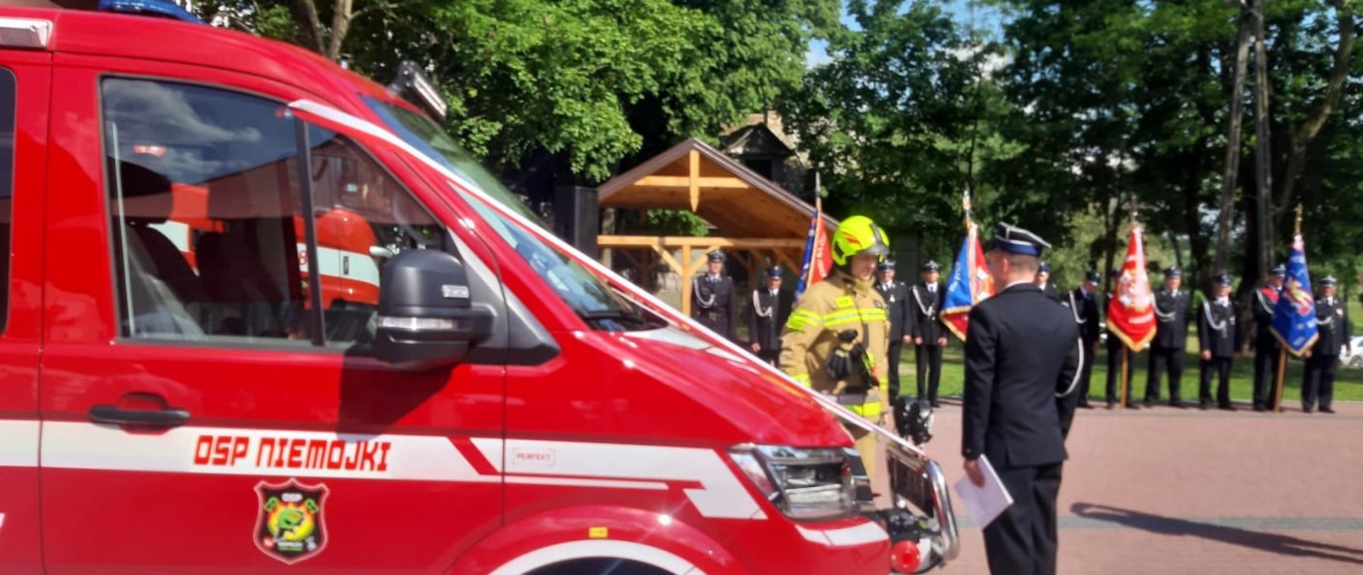 Na terenie jednostki OSP w Niemojkach nastąpiło uroczyste przekazanie kluczyków i poświęcenie pojazdu.