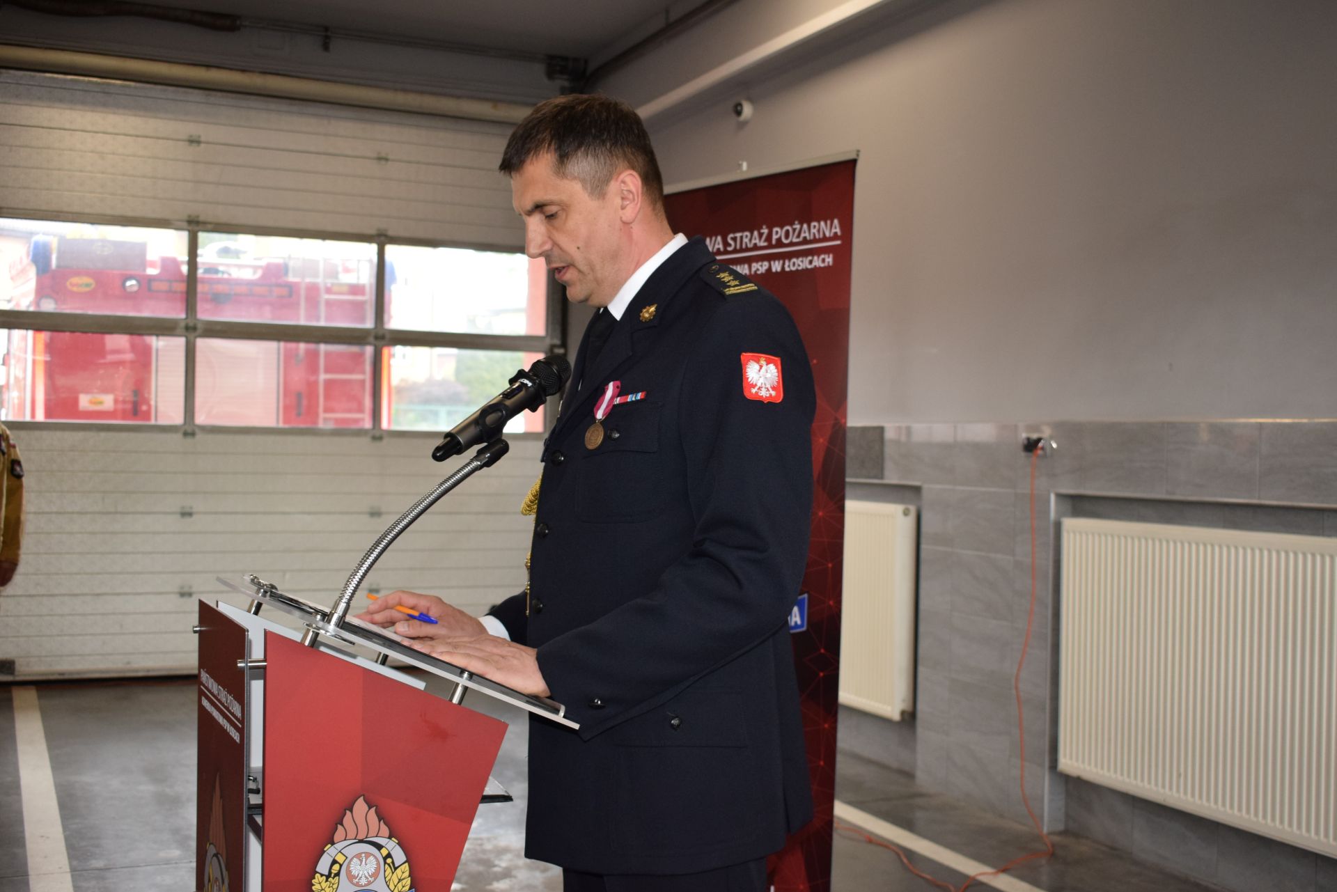 Uroczystość zakończył st. bryg. Tomasz Wojtaś Komendant Powiatowy PSP w Łosicach, składając życzenia i podziękowania wszystkim funkcjonariuszom PSP oraz przedstawicielom służb współpracujących i sympatyzujących z ochroną przeciwpożarową.