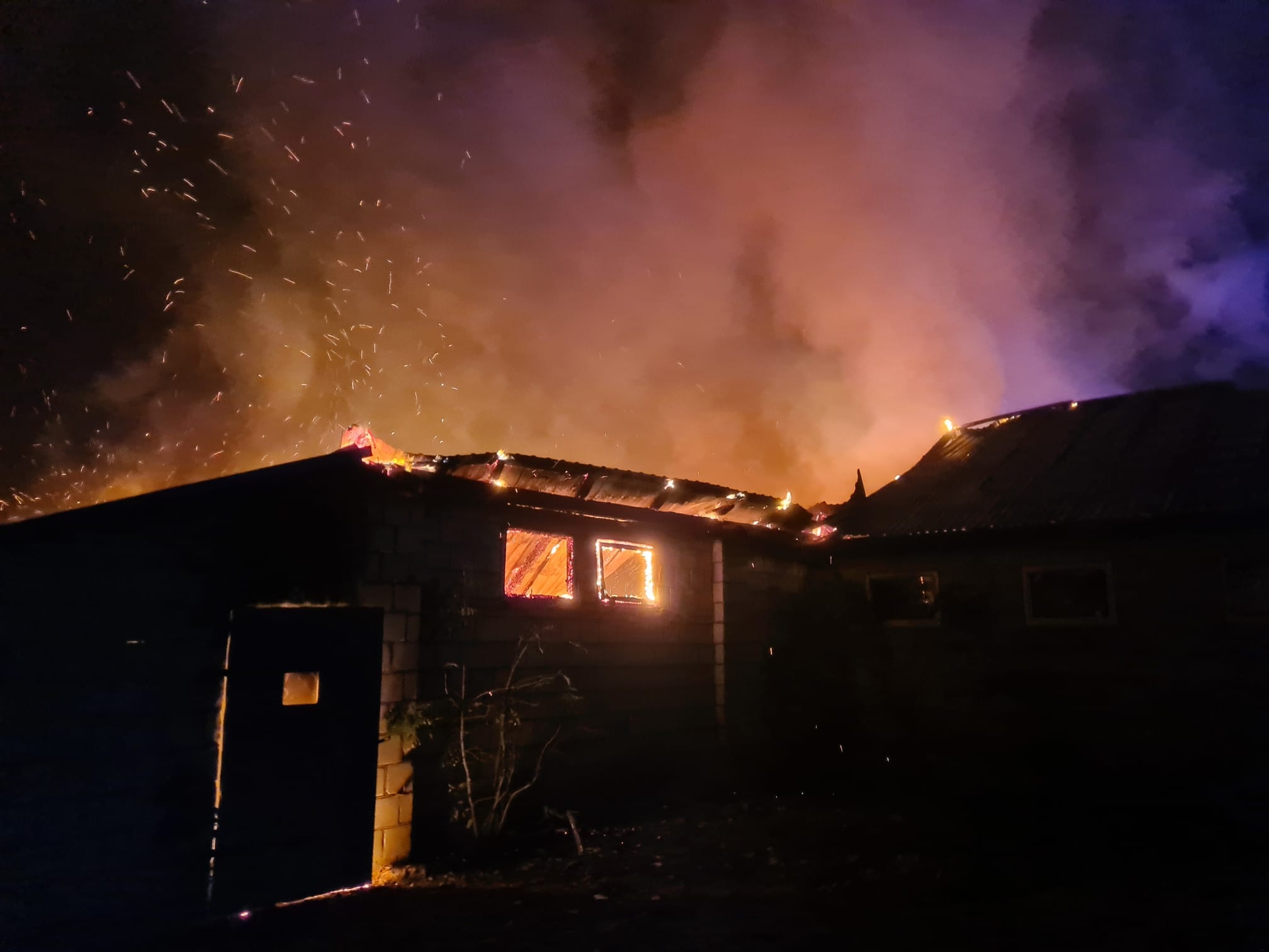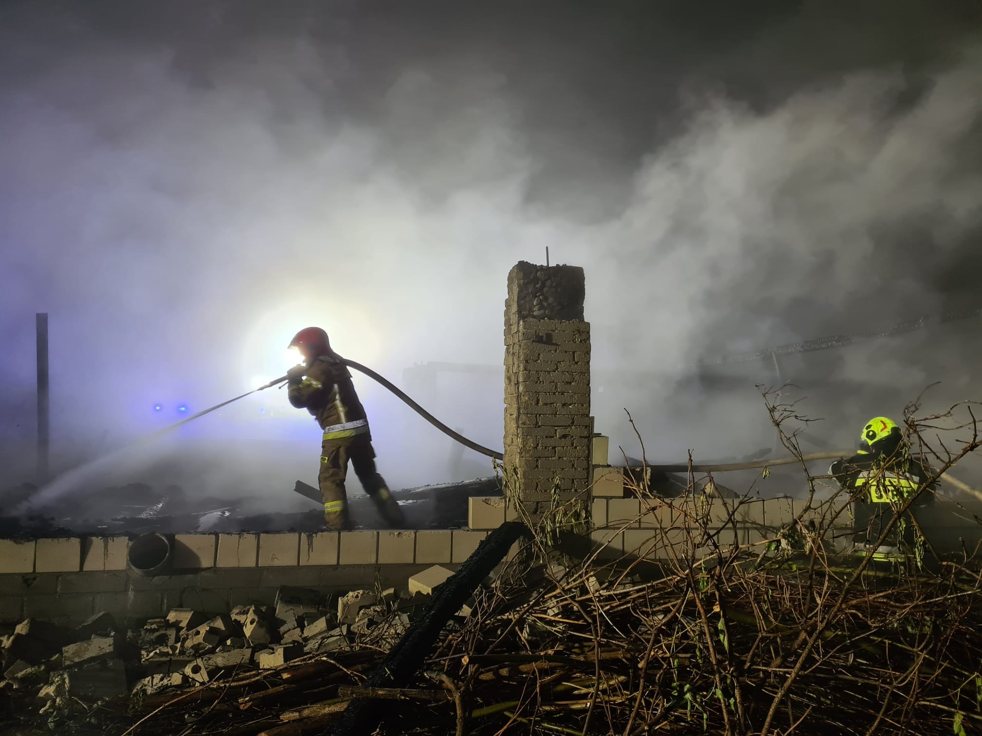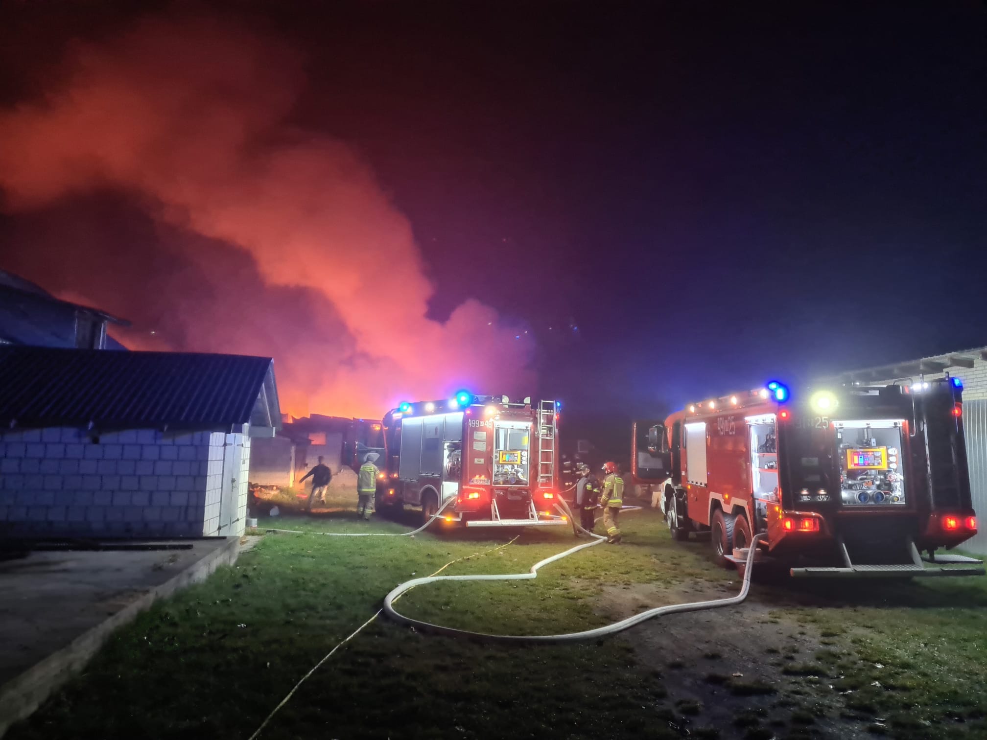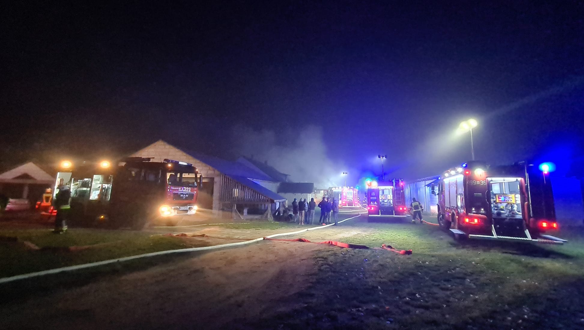 Po dojeździe na miejsce zdarzenia pierwszych wozów pożarem objęta była część kompleksu połączonych ze sobą budynków. Priorytetem dla strażaków była obrona przed rozprzestrzenieniem się ognia, a następnie ugaszenie pożaru i prace rozbiórkowe. Na szczęście w chlewni nie były aktualnie przetrzymywane zwierzęta ani sprzęt wysokiej wartości. Spaleniu uległa część konstrukcji i wyposażenia. W pracach rozbiórkowych przy pomocy ciągnika strażakom pomógł sąsiad poszkodowanego gospodarza za co dziękujemy.