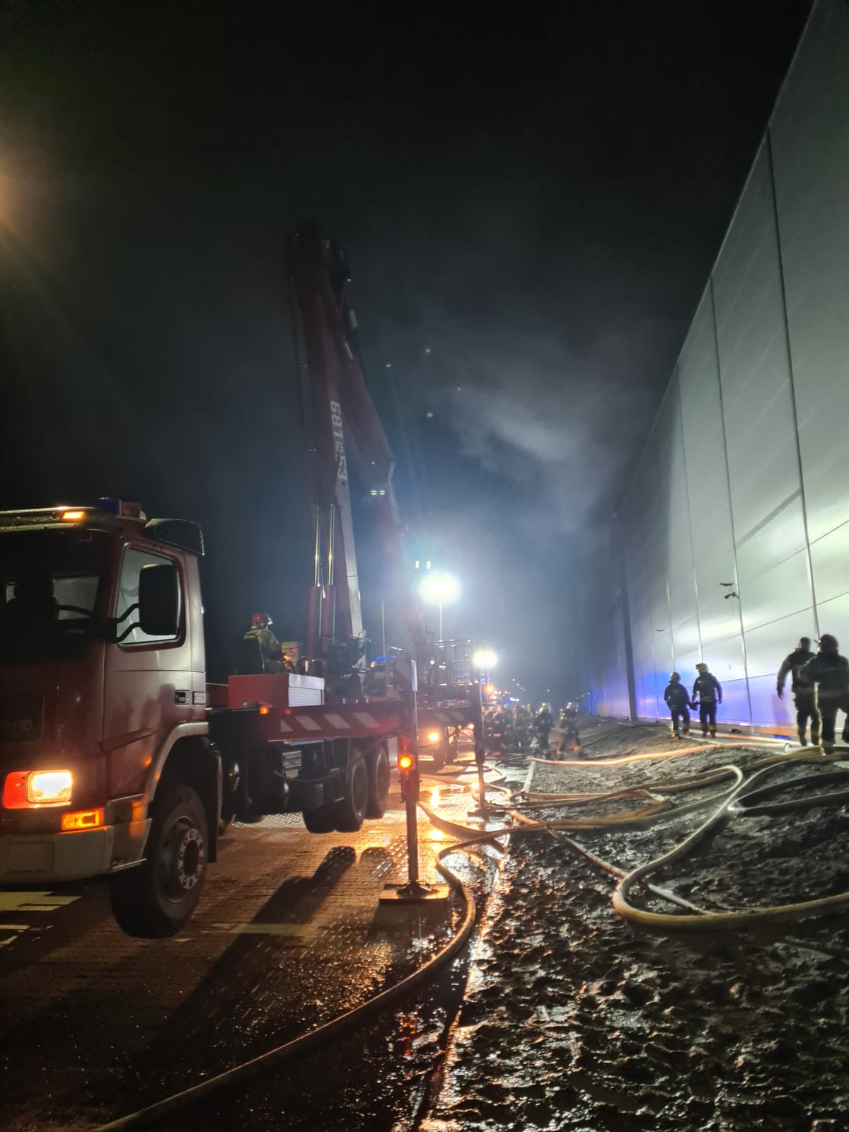"Działania PSP polegały na:- Zabezpieczeniu miejsca zdarzenia i przygotowaniu 2 rot ratowniczo-gaśniczych do wejścia do wnętrza hali, w której panowało silne zadymienie.- Wykonaniu zaopatrzenia wodnego do pojazdów ratowniczo-gaśniczych, z których podawane zostały prądy gaśnicze na poszczególnych odcinkach bojowych.- Wyłączeniu napięcia elektrycznego w strefie zagrożenia.- Dotarciu do źródła ognia i rozpoznaniu, że pożar obejmuje urządzenia technologiczne w części produkcyjnej budynku.- Podaniu 2 prądów wody oraz 2 prądów piany na płonące urządzenia.- Prowadzeniu skutecznych działań gaśniczych z podnośnika SH-30 oraz z drabiny mechanicznej w celu opanowania pożaru poszycia dachu.- Zorganizowaniu w trybie natychmiastowym łączności na terenie miejsca akcji, w tym rozpoczęto pracę Sztabu KW PSP pod dowództwem st. bryg. Artura Gonery (Zastępca MKW PSP) – poziom strategiczny, co skutkowało podzieleniem terenu akcji na 3 odcinki bojowe, tj.:poziom dachu (OBI),z wnętrza budynku strony północnej (OBII),z wnętrza budynku od strony południowej (OBIII).Powyższy zamysł taktyczny oraz ogromne zaangażowanie strażaków PSP i OSP doprowadziły do lokalizacji pożaru dachu, co pozwoliło na częściowe oddymienie pomieszczeń i skuteczniejsze prowadzenie działań gaśniczych wewnątrz budynku, a tym samym na szybkie ugaszenie źródła pożaru. Podczas zdarzenie nie stwierdzono osób rannych wśród pracowników zakładu, jak również wśród ratowników biorących udział w działaniach prowadzonych w strefie silnego zadymienia i oddziaływania wysokiej temperatury. W trakcie prowadzonych działań wykorzystywano m.in.: kamery termowizyjne oraz lance gaśnicze, którymi przebijano blachę, aby podać wodę do wnętrza"