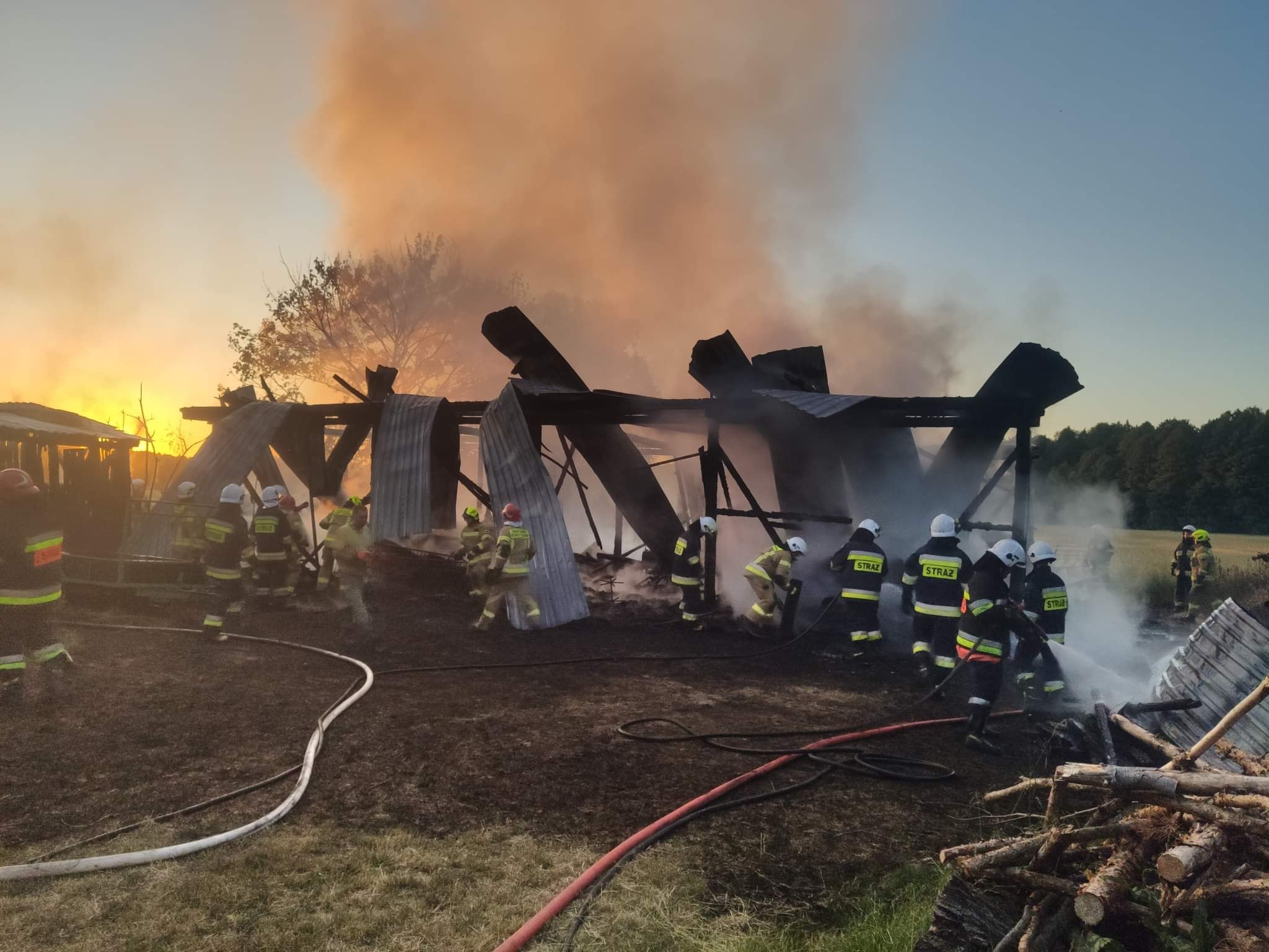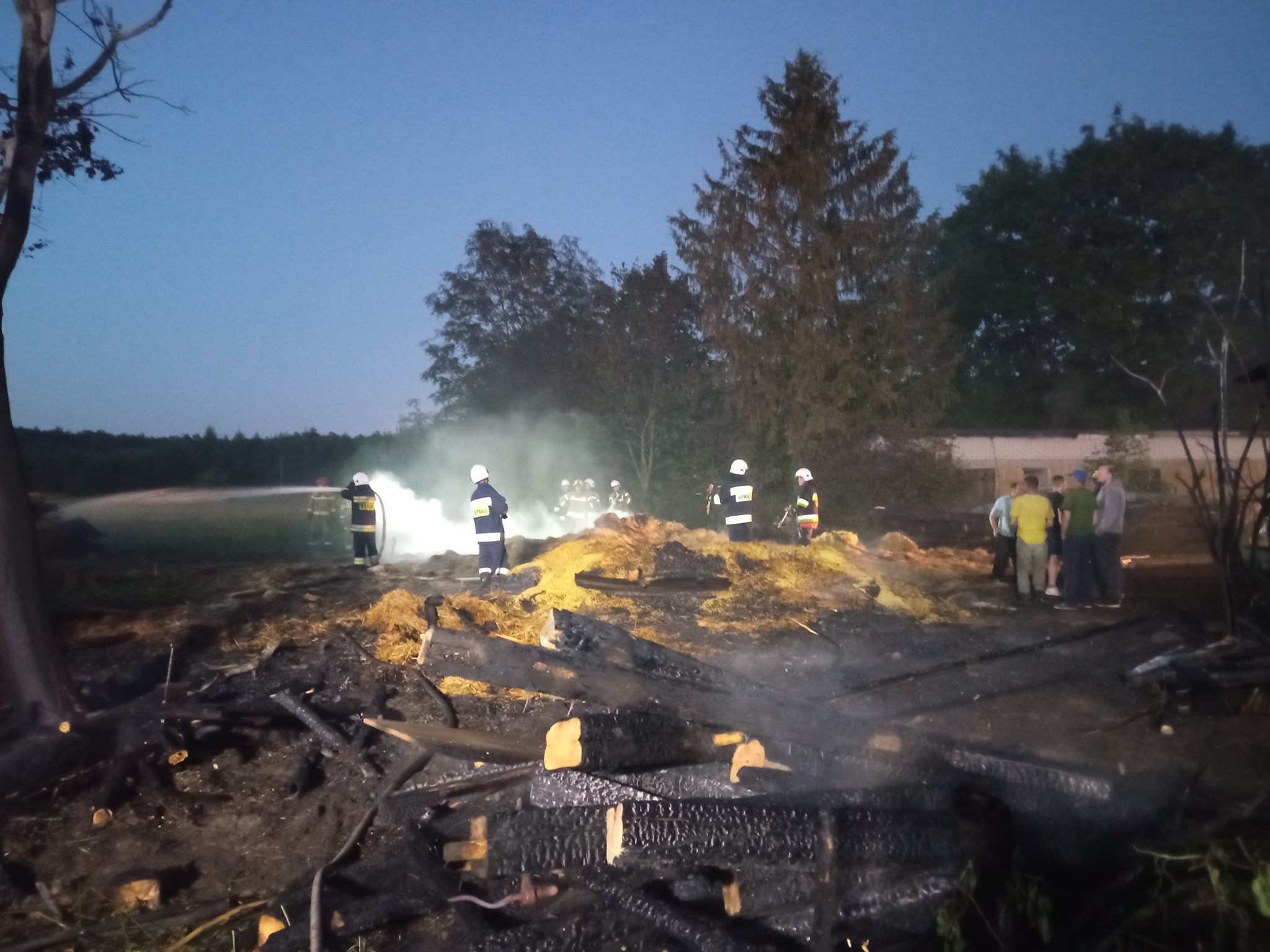 50 strażaków , 10 samochodów pożarniczych i okoliczni mieszkańcy ze swoim sprzętem rolniczym walczyło ze skutkami pożaru stodoły w miejscowości Stare Litewniki.
