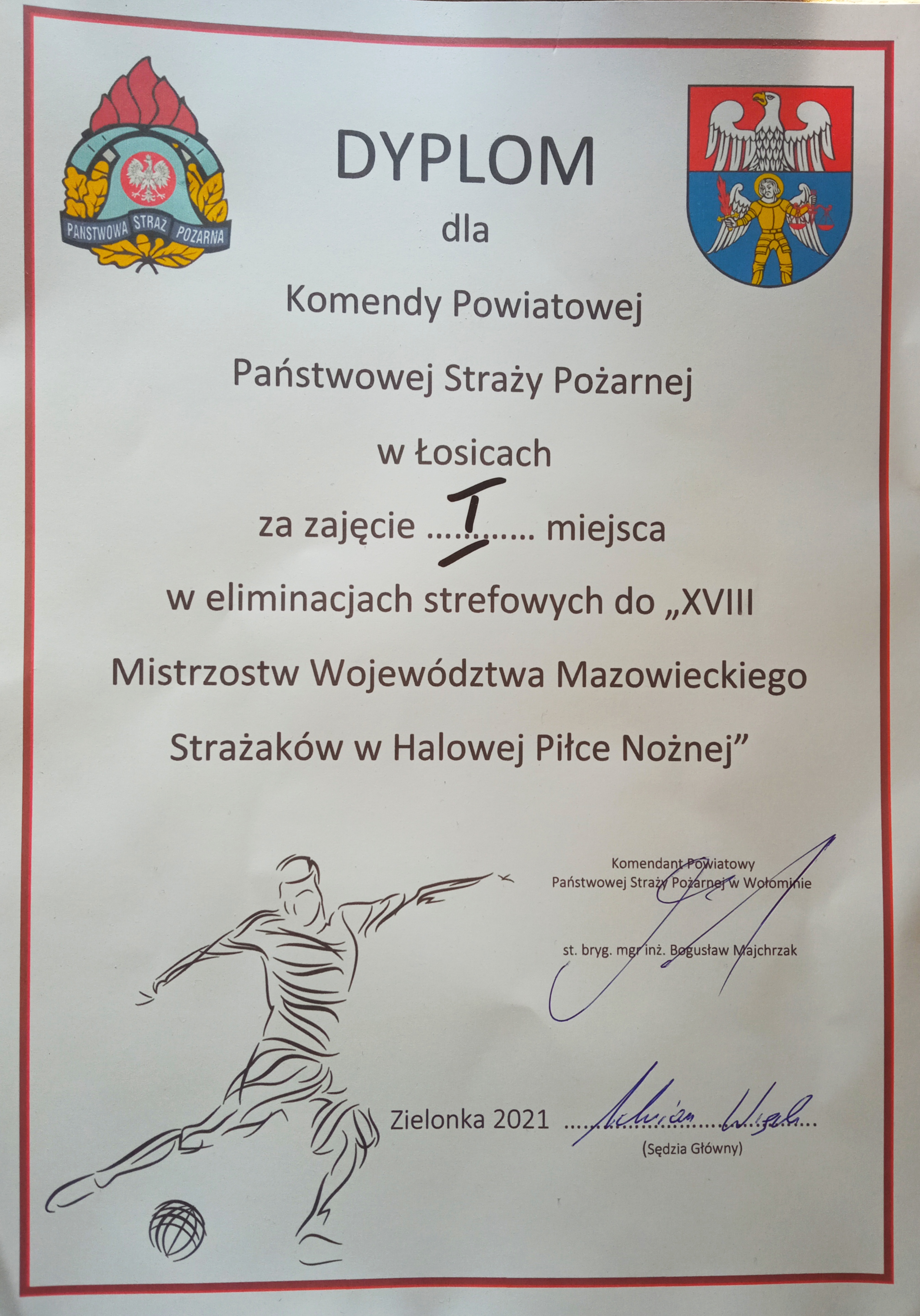 13 września w Sali Sportowej Ośrodka Kultury i Sportu w Zielonce odbyły się eliminacje strefowe do Mistrzostw Województwa Mazowieckiego Strażaków w Halowej Piłce Nożnej. Pierwsze miejsce gwarantujące awans zdobyła drużyna z Komendy Powiatowej PSP w Łosicach.