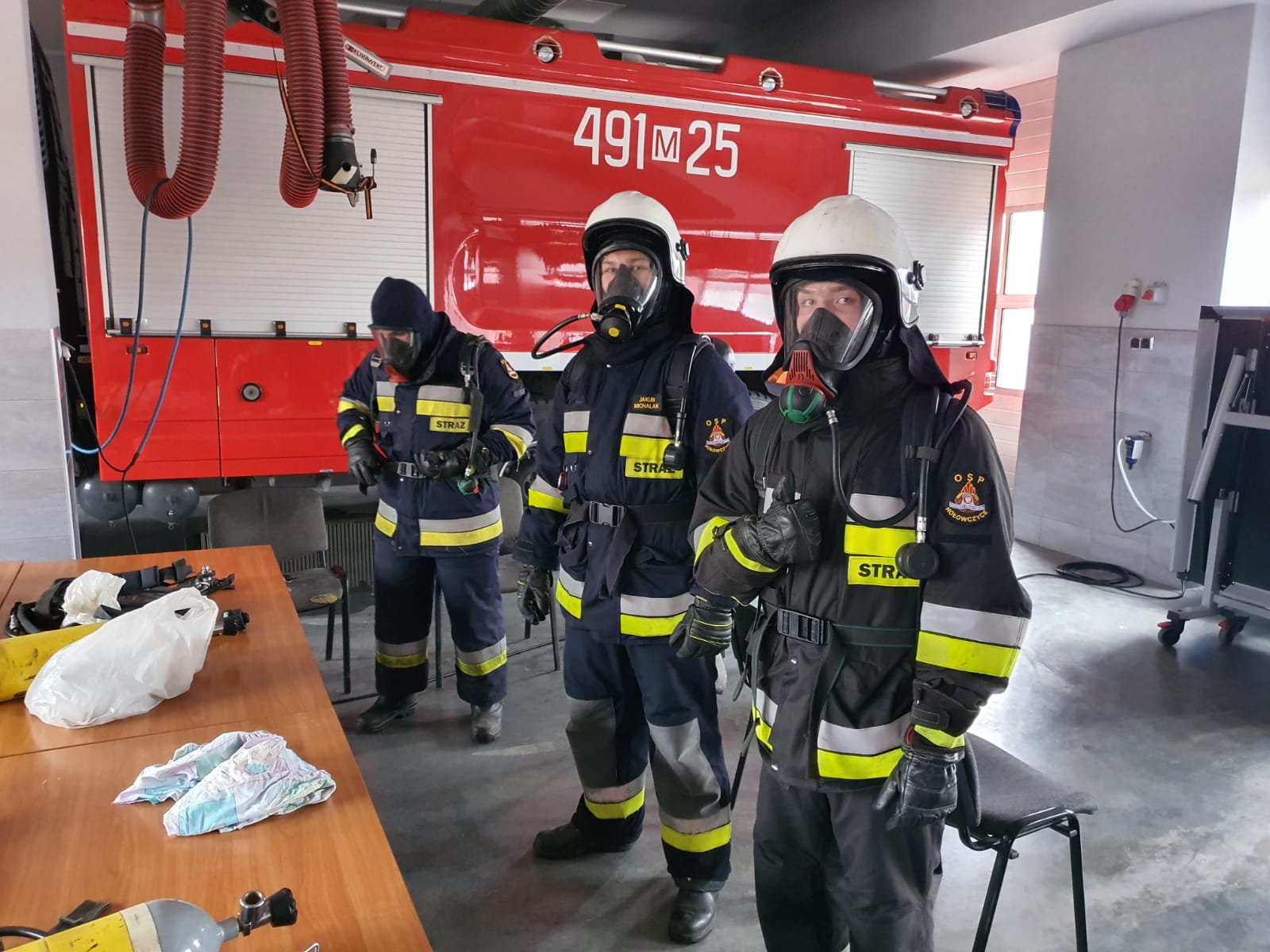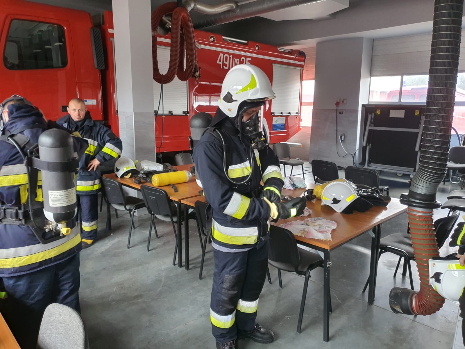 Zadaniem wszystkich kursantów było przejście toru przeszkód w zadymionej komorze w pełnym umundurowaniu bojowym używając sprzętu ochrony dróg oddechowych. Prawidłowym przebiegiem tej części szkolenia zajęli się funkcjonariusze Ośrodka Szkolenia Komendy Wojewódzkiej PSP w Pionkach.