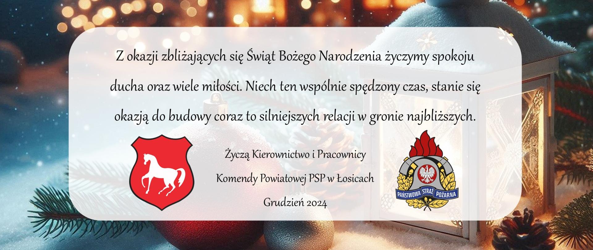 17.12.2024 KP PSP ŁosiceŻyczenia Bożonarodzeniowe | 2024Kierownictwo i Pracownicy Komendy Powiatowej PSP w Łosicach pragną złożyć wszystkim druhom oraz sympatykom pożarnictwa najserdeczniejsze życzenia.