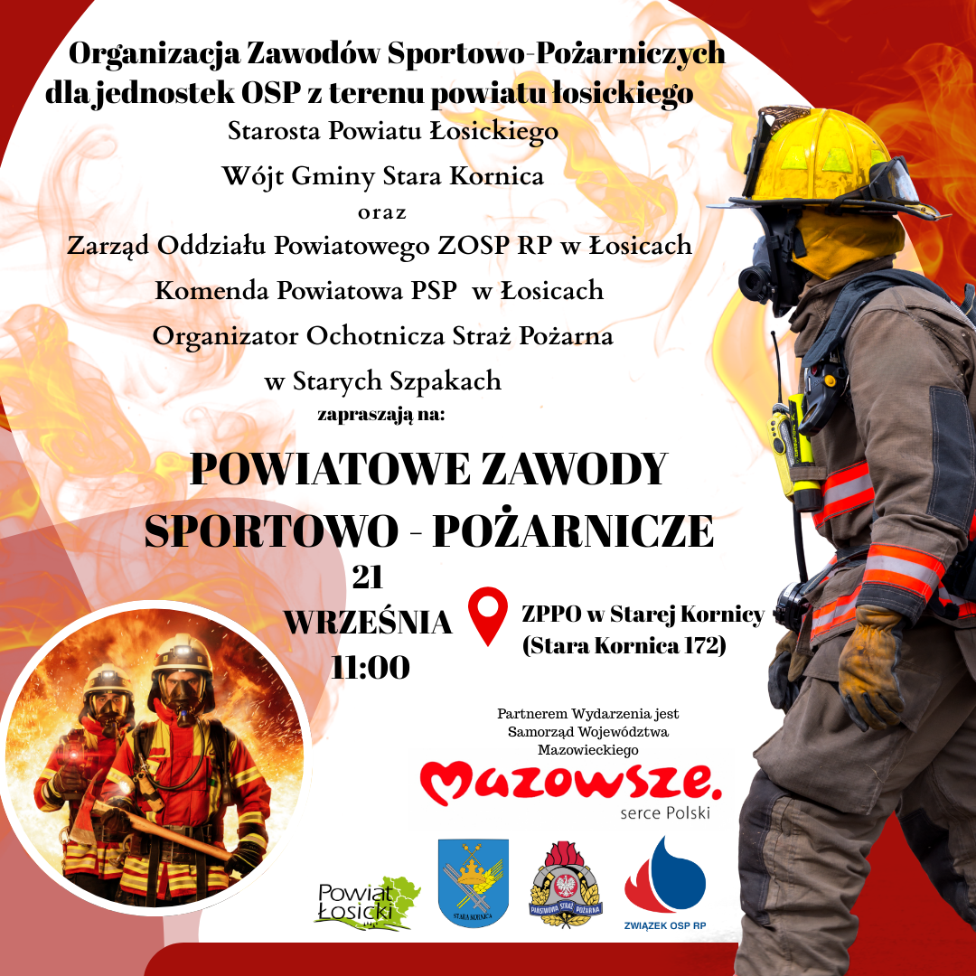 Komenda Powiatowa PSP w Łosicach zaprasza na Powiatowe Zawody Sportowo - Pożarnicze OSP w Starej Kornicy.
