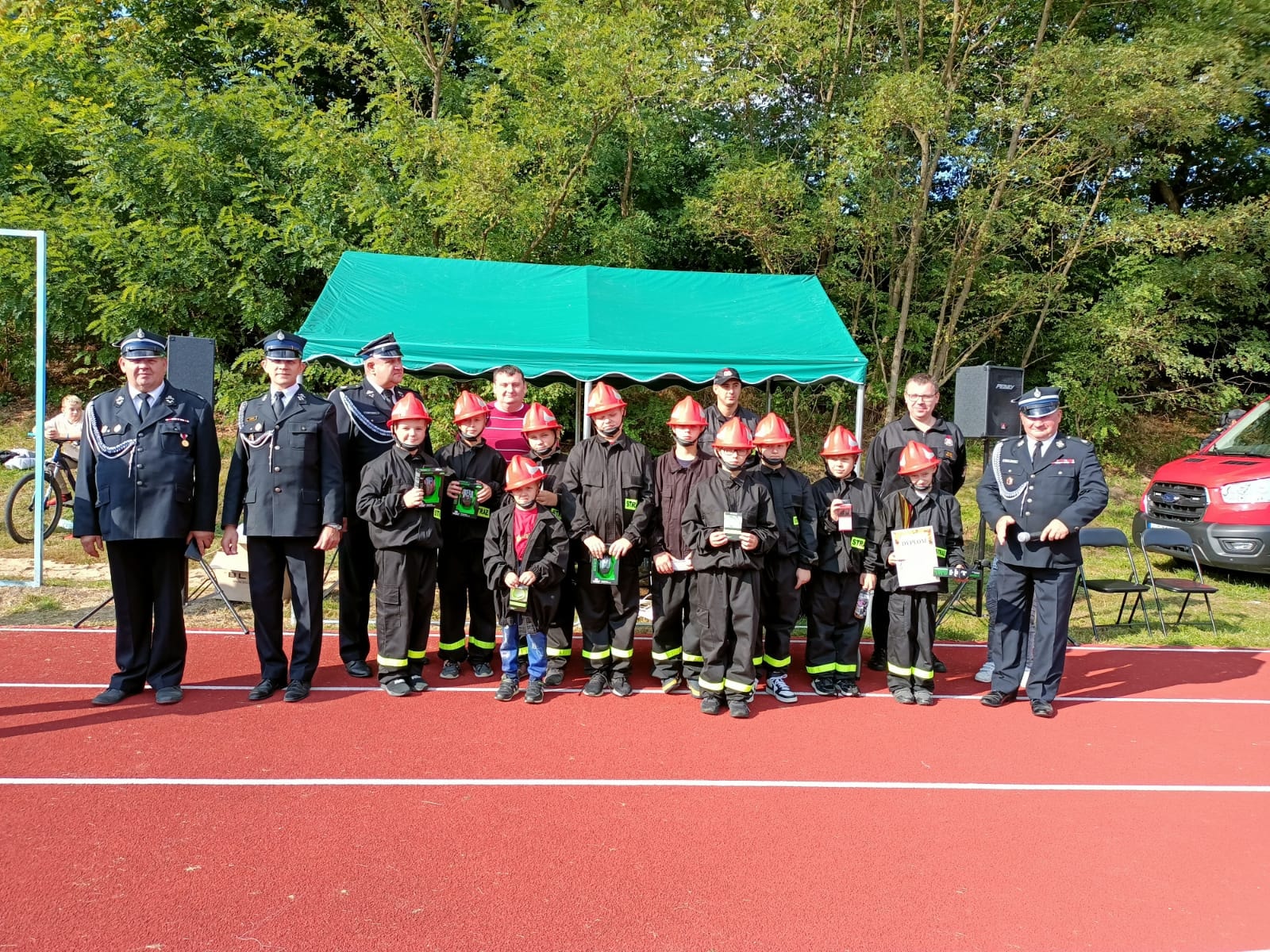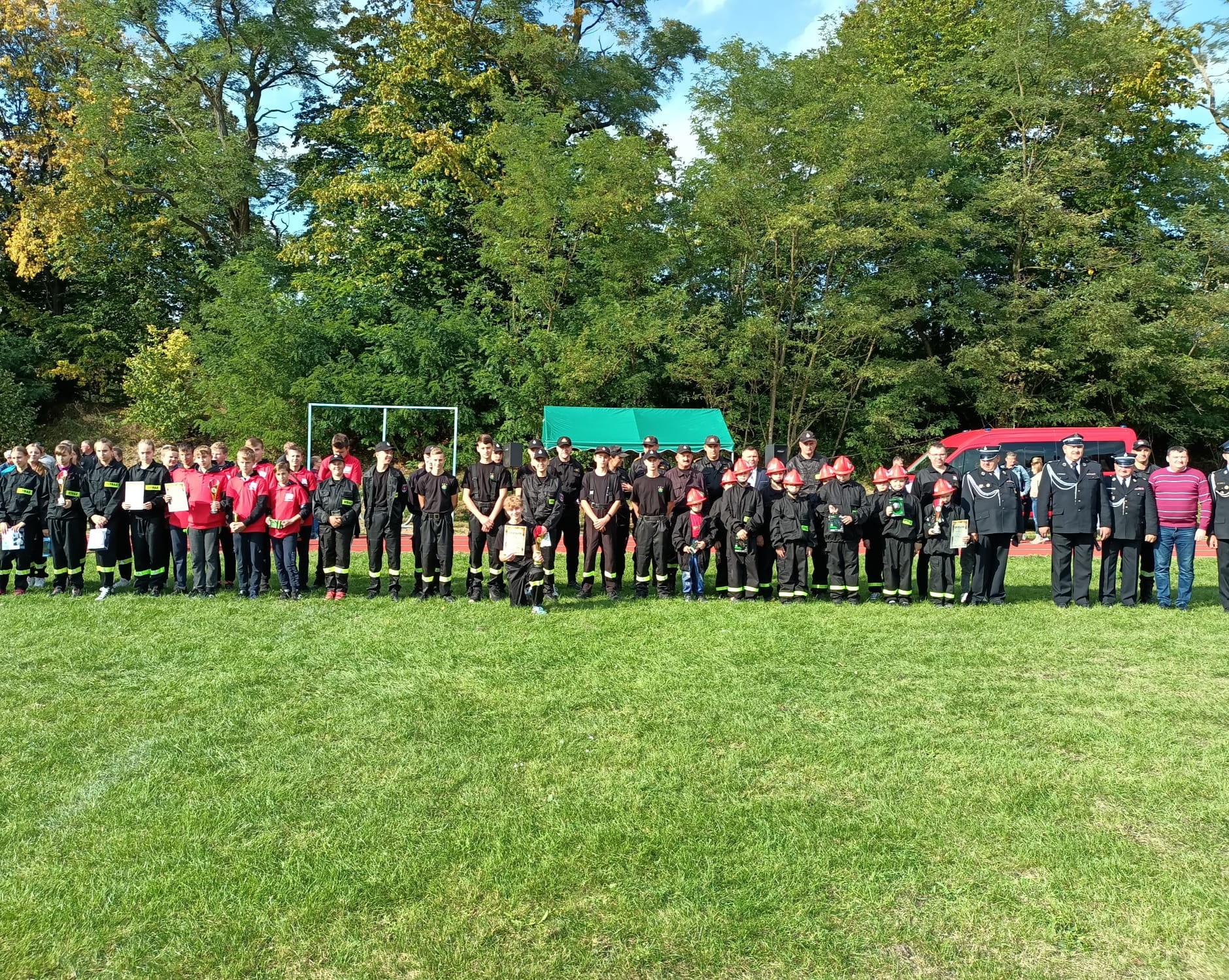 Zawody Sportowo - Pożarnicze Młodzieżowych Drużyn Pożarniczych za nami. Na stadion w Platerowie przybyły 4 drużyny (trzy drużyny chłopców i jedna drużyna dziewcząt).
