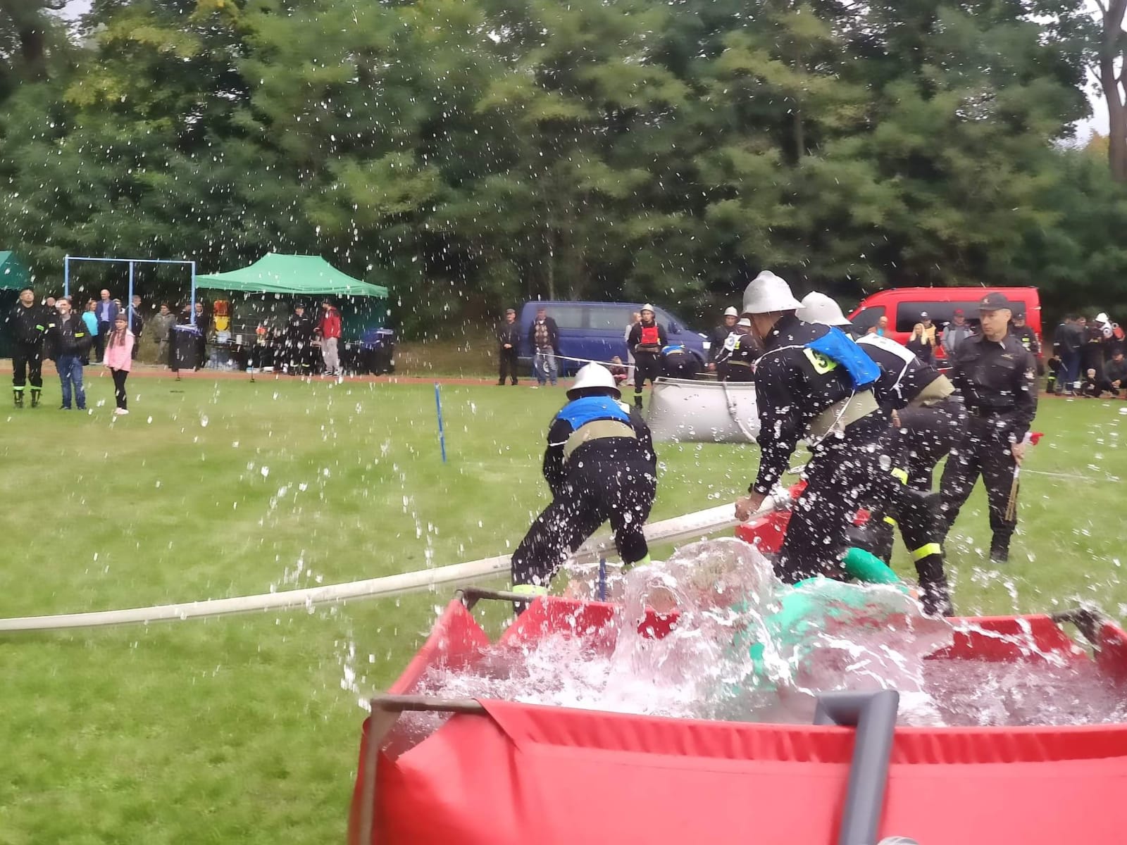 W strugach deszczu nastąpiło wręczenie nagród i dyplomów za zajęte poszczególne miejsca.