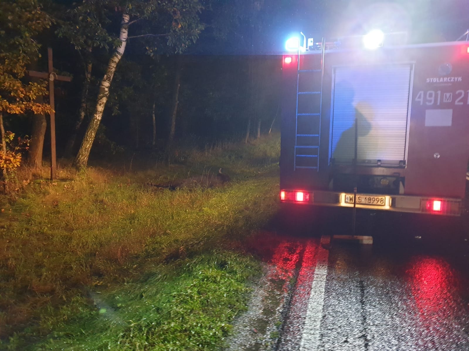 Pół godziny po północy Dyżurny Stanowiska Kierowania Komendy Powiatowej PSP w Łosicach otrzymał informację o zderzeniu samochodu ze zwierzęciem na drodze krajowej nr 19 nieopodal miejscowości Mszanna. Po dotarciu na miejsce zdarzenia okazało się, że doszło zderzenia samochodu osobowego z żubrem. Strażacy zabezpieczyli miejsce zdarzenia i pojazd, w którym jechały dwie osoby. Podróżujący po przebadaniu przez Zespół Ratownictwa Medycznego pozostali na miejscu zdarzenia. Zwierzę padło.