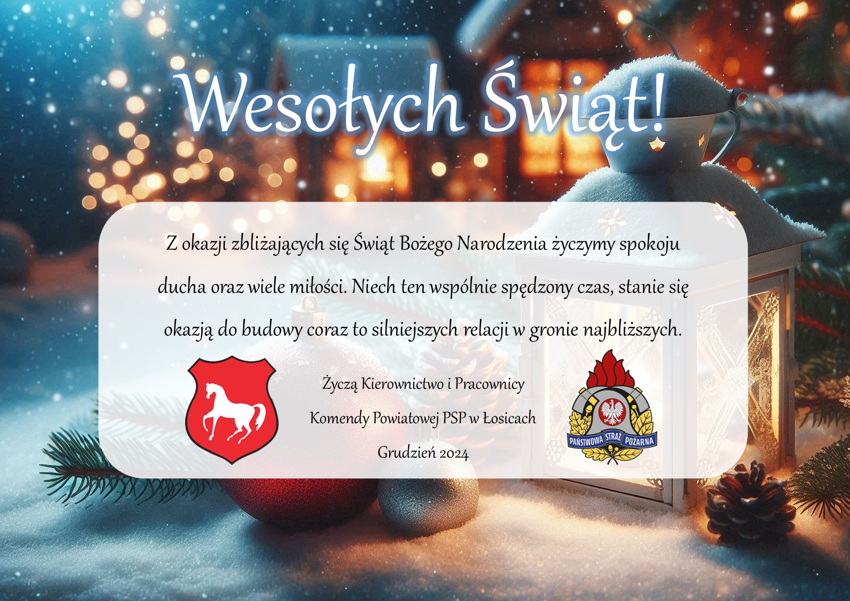 "Z okazji zbliżających się Świąt Bożego Narodzenia życzymy spokoju ducha oraz wiele miłości.