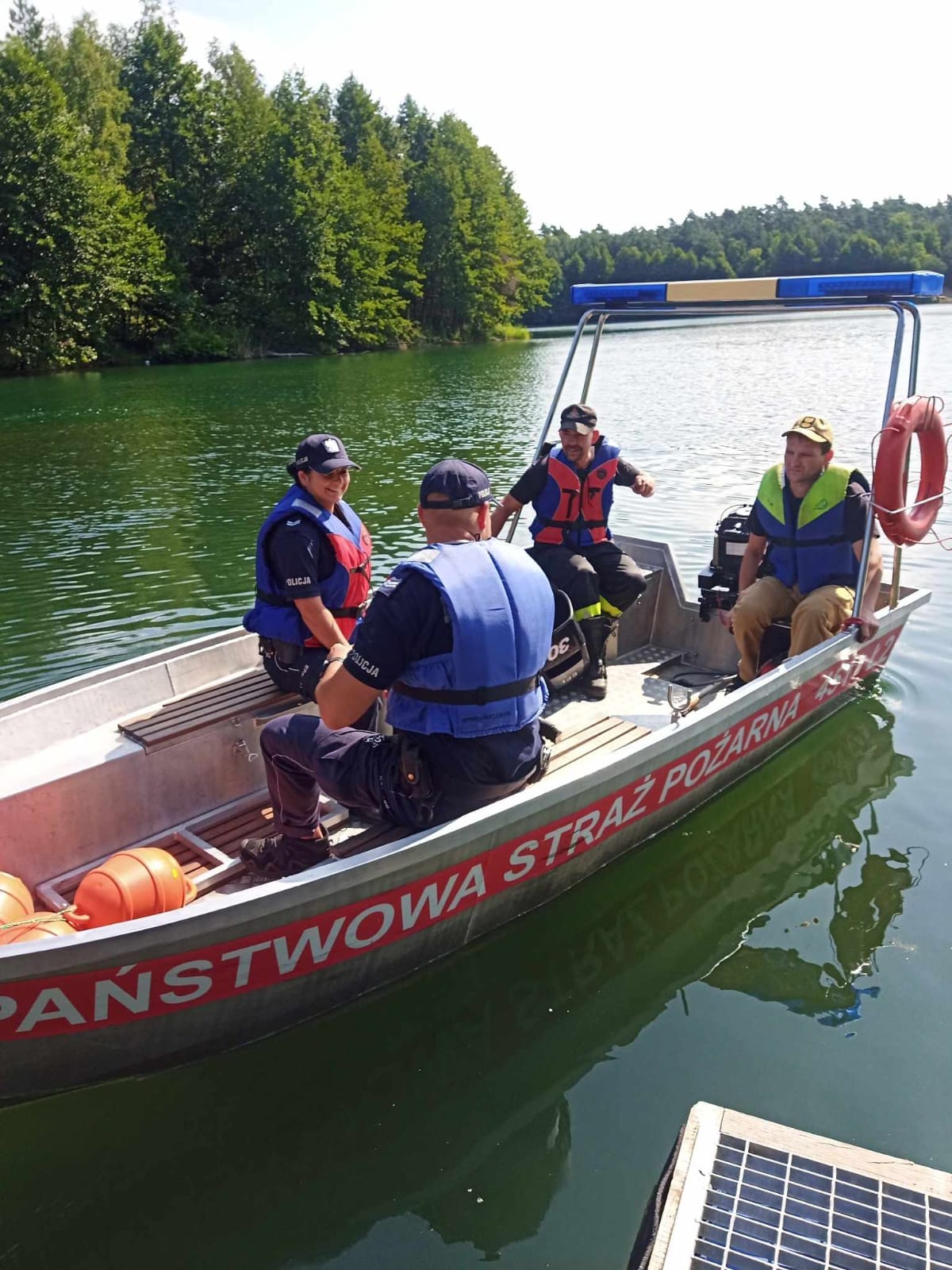 19.07.2023 roku Jednostka Ratowniczo-Gaśnicza z Łowicza wraz z łowicką Policją przy pomocy łodzi ratowniczej wzięła udział w patrolu na wyrobisku pożwirowym w miejscowości Guźnia w ramach akcji zapewnienia bezpieczeństwa na akwenach wodnych w sezonie letnim 2023.