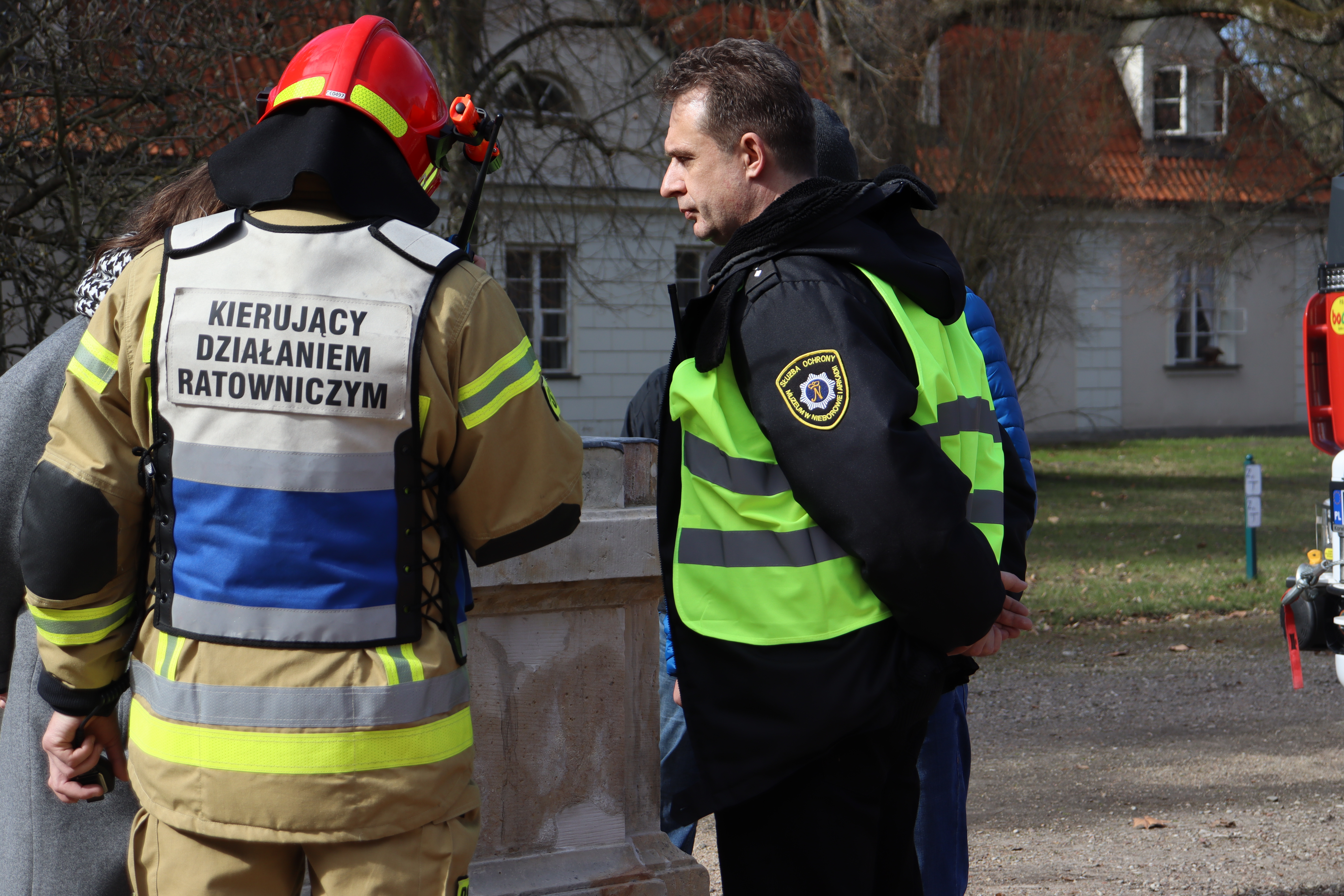 w Łodzi, bryg. Arkadiusz Makowski - komendant powiatowy PSP w Łowiczu, Anna Michalak - wojewódzki konserwator zabytków oraz Monika Antczak - kurator muzeum w Nieborowie i Arkadii.