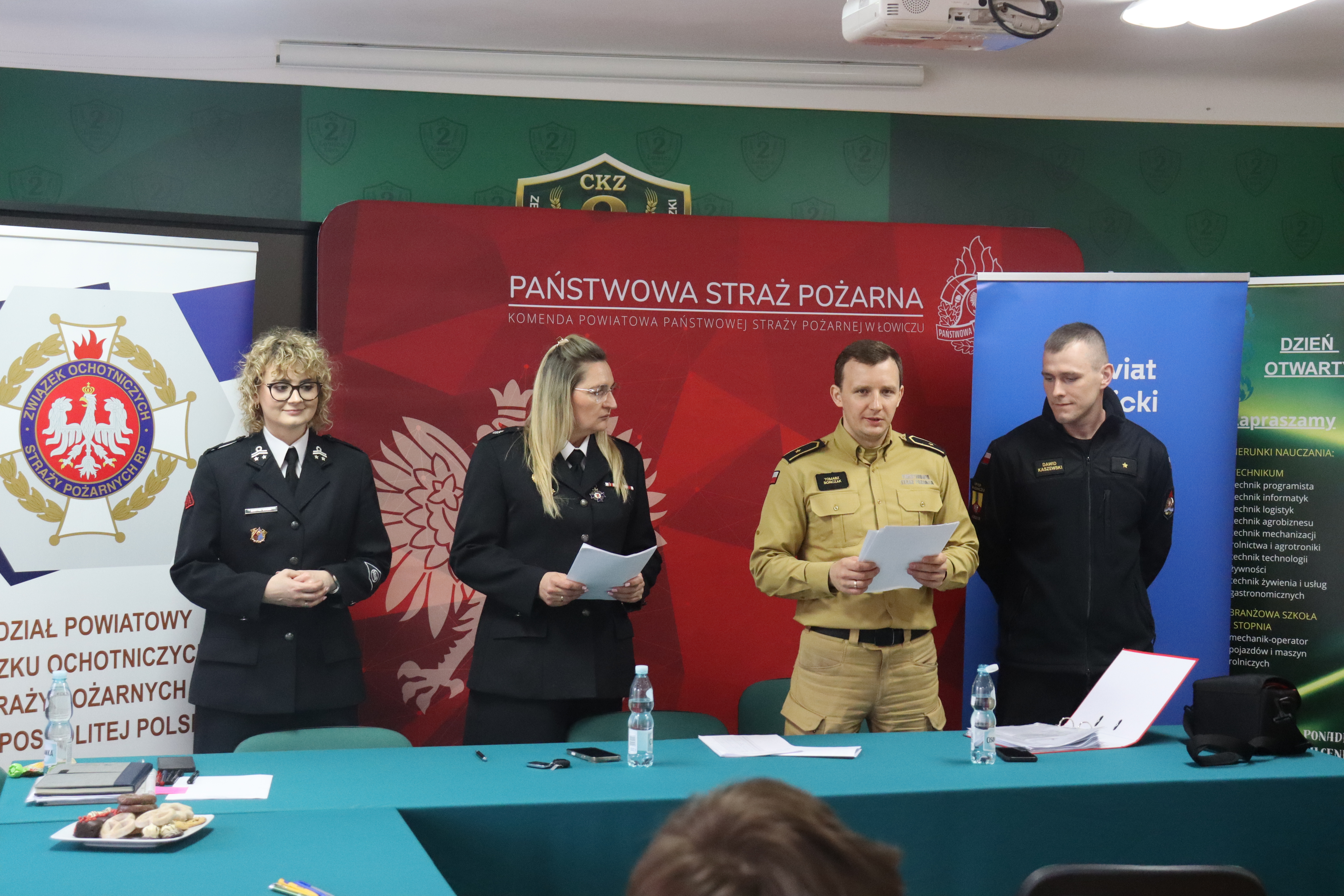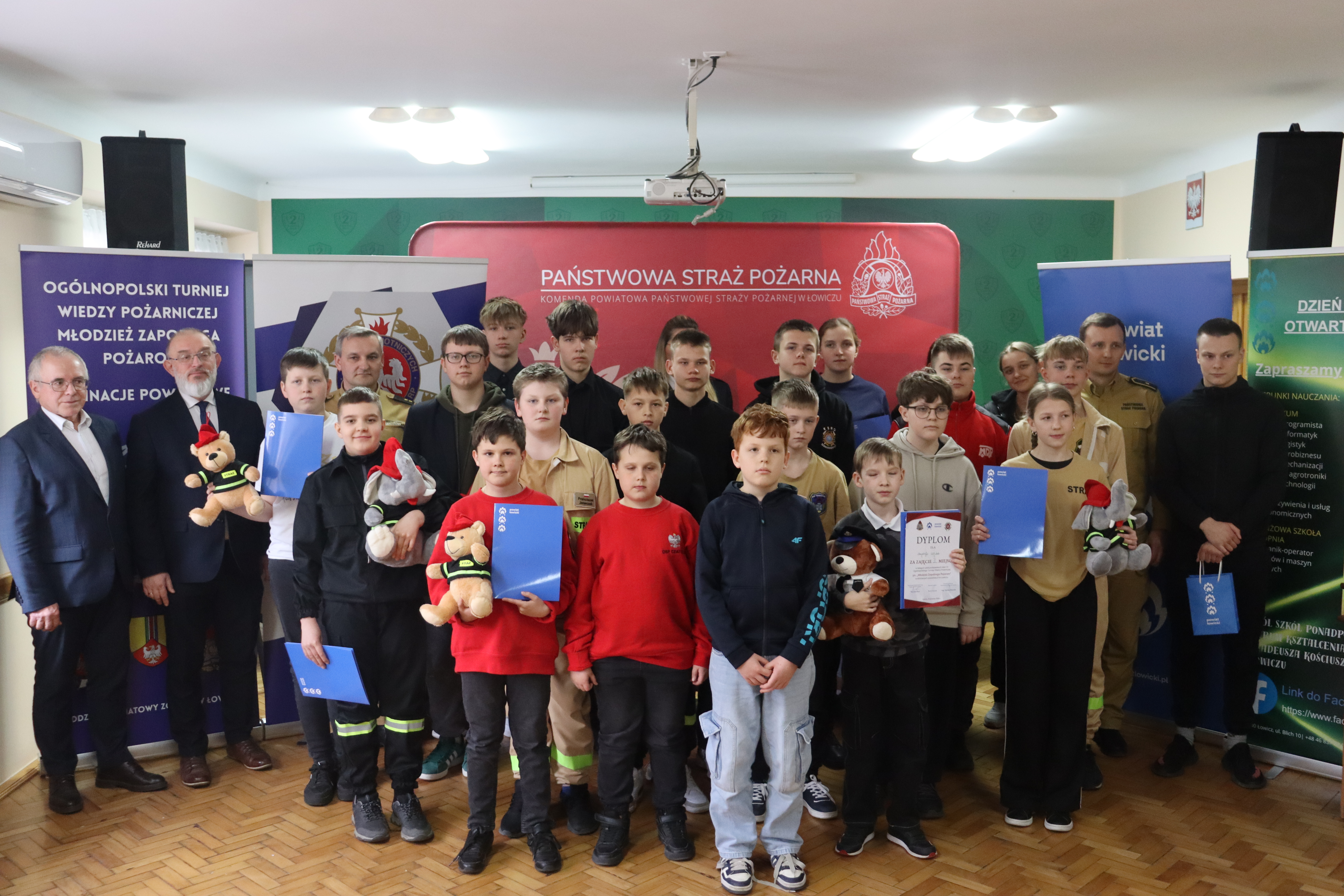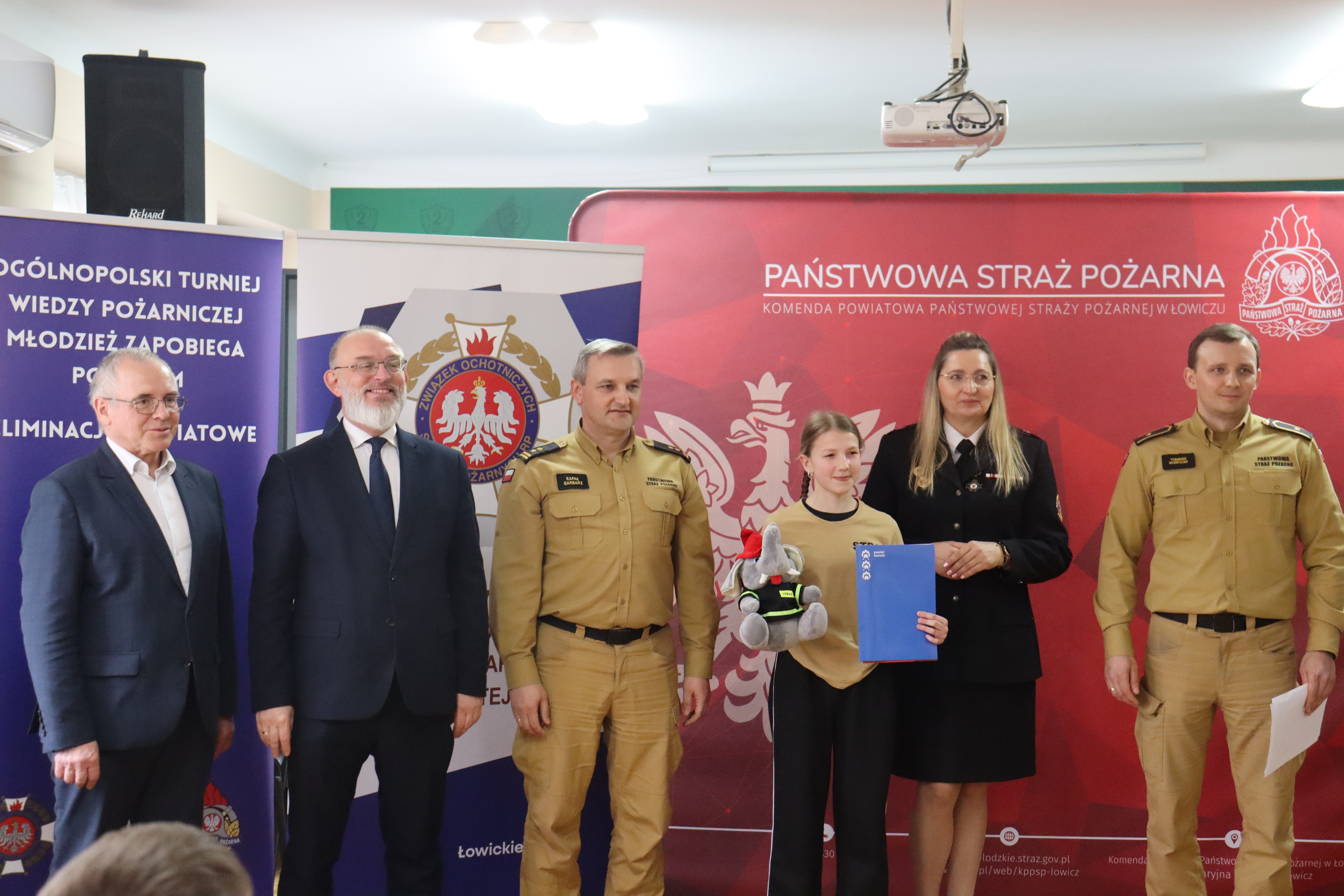Nasi laureaci będą reprezentować Powiat Łowicki w eliminacjach wojewódzkich 24 kwietnia 2026 roku w Zapolicach, pow. Zduńskowolski. Wręczenia nagród dokonali Pan Marcin Kosiorek – Starosta Łowicki, dh Mariola Wojda – Wiceprezes ZOP ZOSP RP w Łowiczu oraz bryg. Rafał Garbarz – Zastępca Komendanta Powiatowego PSP w Łowiczu. Nagrody dla laureatów ufundował Powiat Łowicki oraz Oddział Wojewódzki Związku OSP RP woj. łódzkiego. Dziękujemy również Panu Jerzemu Zabostowi Dyrektorowi ZSP nr 2 w Łowiczu za gościnę oraz Piekarni Sylwester Nowicki z Bełchowa za słodki poczęstunek dla naszych uczestników.