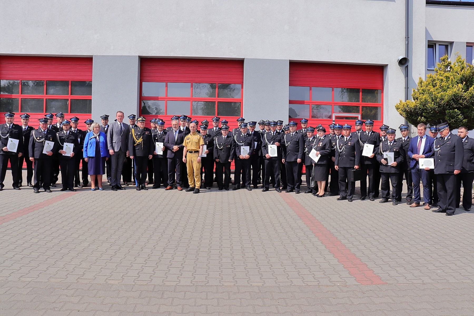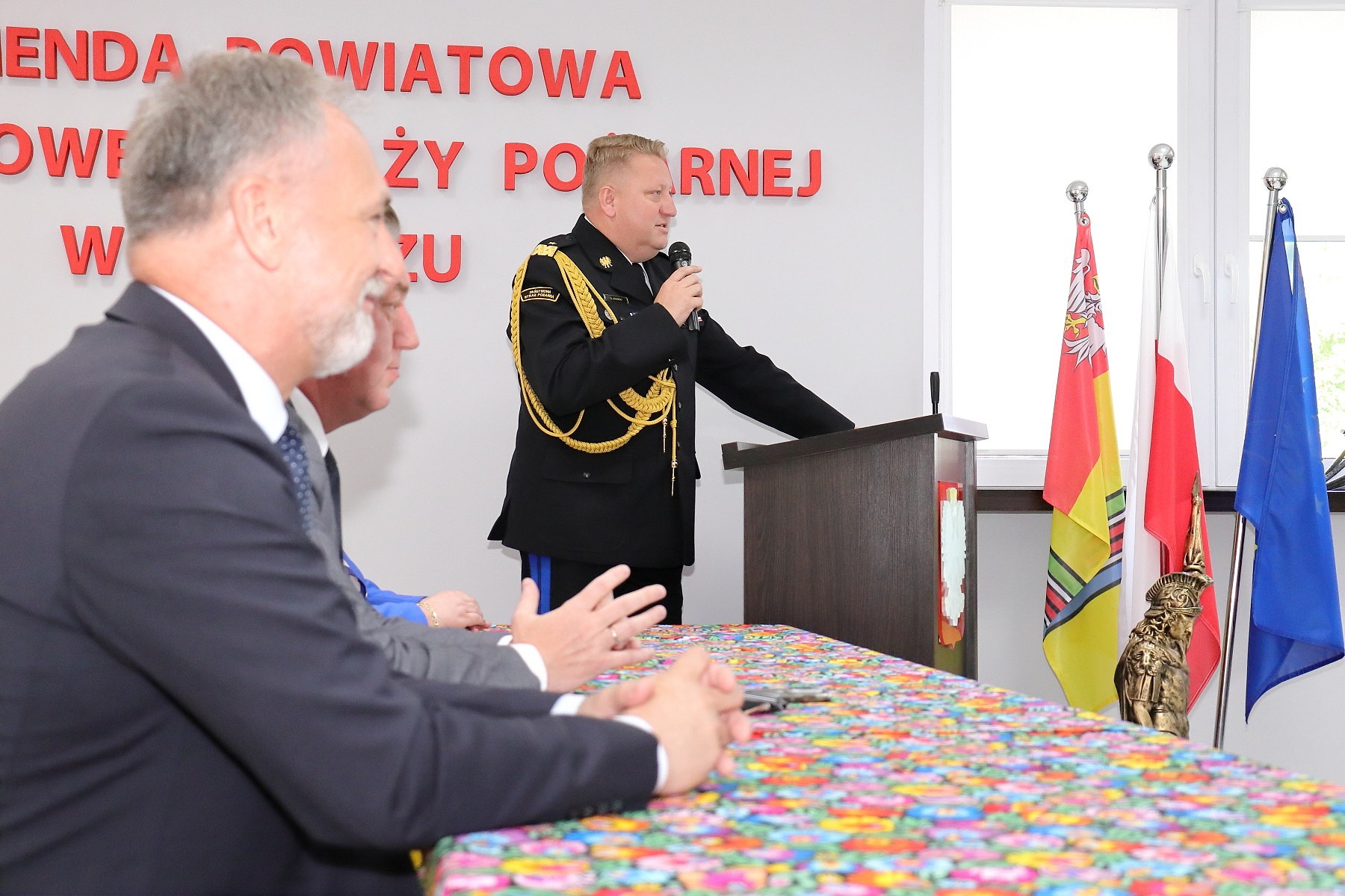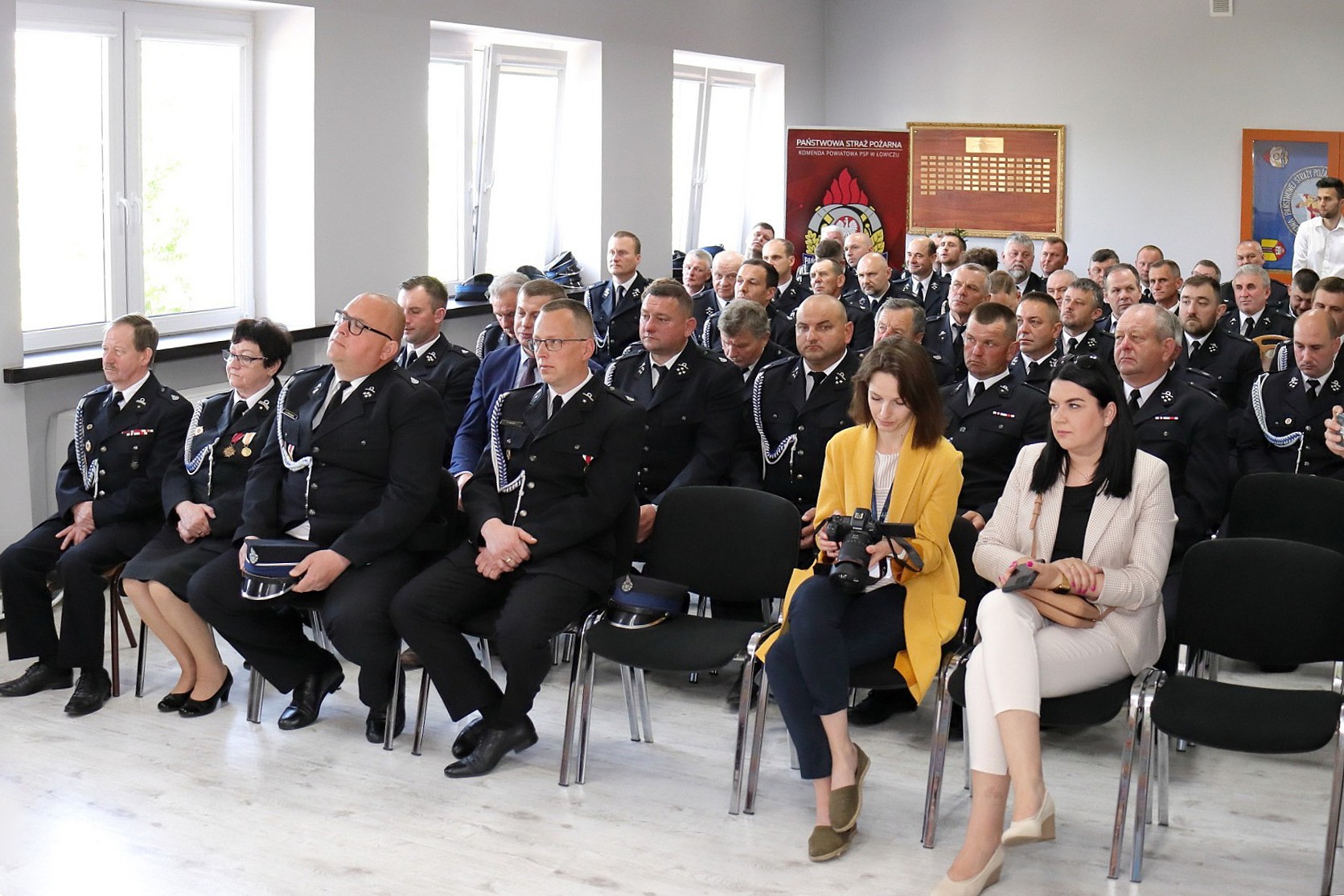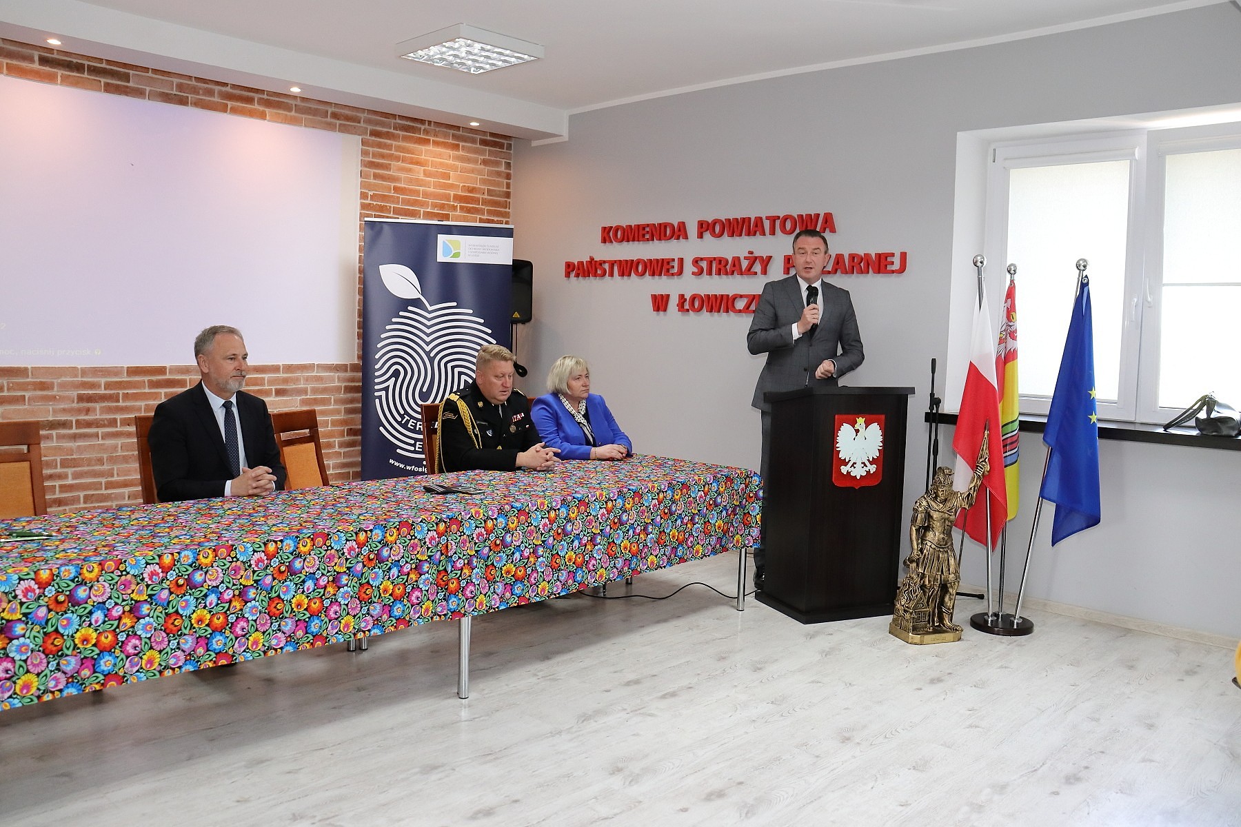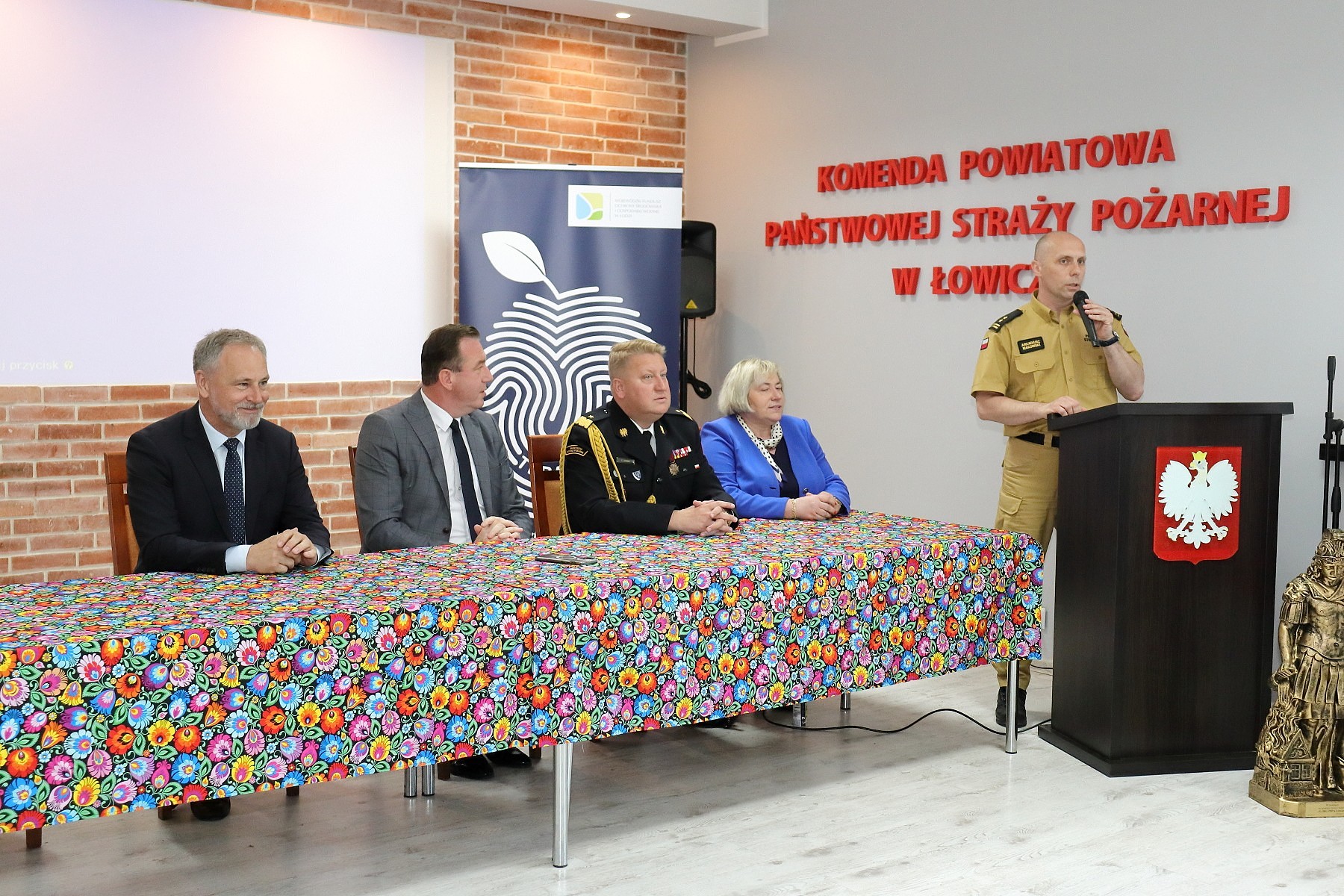 W spotkaniu udział wzięli: Przemysław Błaszczyk, senator RP, Alicja Antczak, radna sejmiku województwa łódzkiego, łódzki komendant wojewódzki Państwowej Straży Pożarnej nadbrygadier Grzegorz Janowski oraz komendant powiatowy PSP w Łowiczu brygadier Arkadiusz Makowski.
