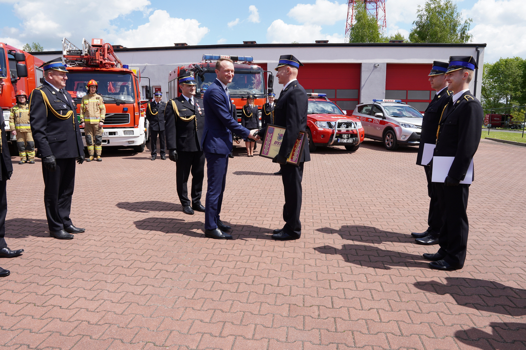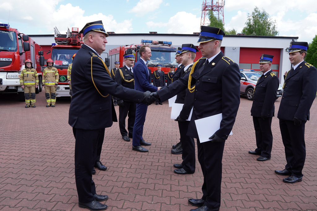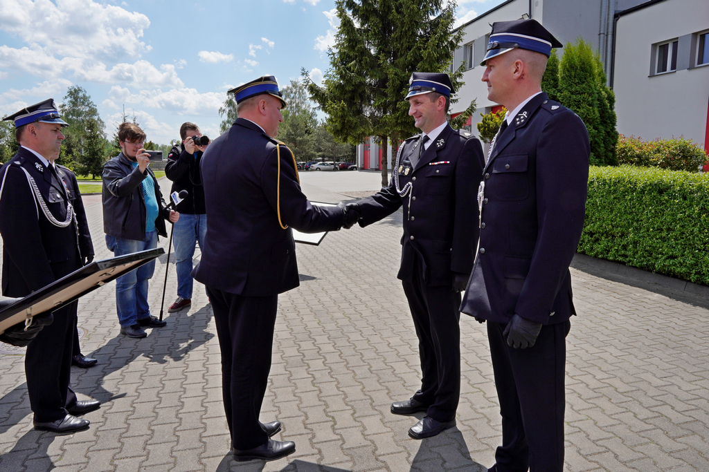 Wręczono również nominacje na wyższy stopień służbowy dla zastępcy dowódcy Jednostki Ratowniczo-Gaśniczej, awansowano równie dwóch aspirantów a w korpusie podoficerskim ośmiu funkcjonariuszy. Dyplom za szczególne osiągnięcia w służbie komendant główny PSP nadbryg. Andrzeja Bartkowiaka przyznał młodszemu kpt. Radosławowi Szymajdzie dowódcy zmiany tutejszej jednostki.