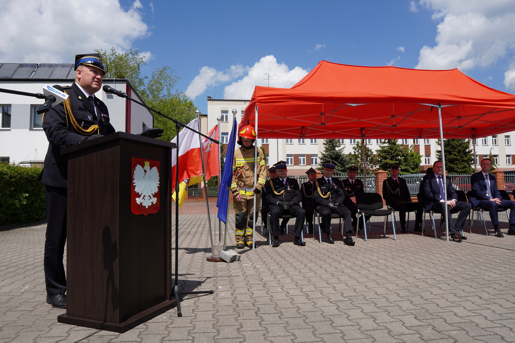 Podczas otwarcia obchodów, uroczysty meldunek złożył starszemu brygadierowi Grzegorzowi Janowskiemu z-ca dowódcy Jednostki Ratowniczo-Gaśniczej st. kpt. Jakub Wojda, po którym nastąpiło wniesienie sztandaru Komendy Powiatowej PSP w Łowiczu.