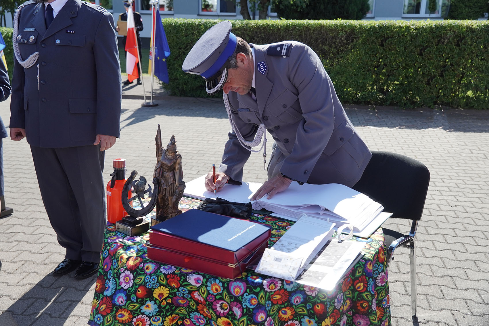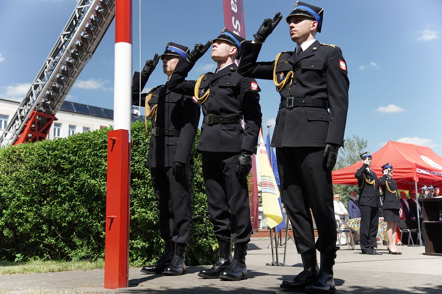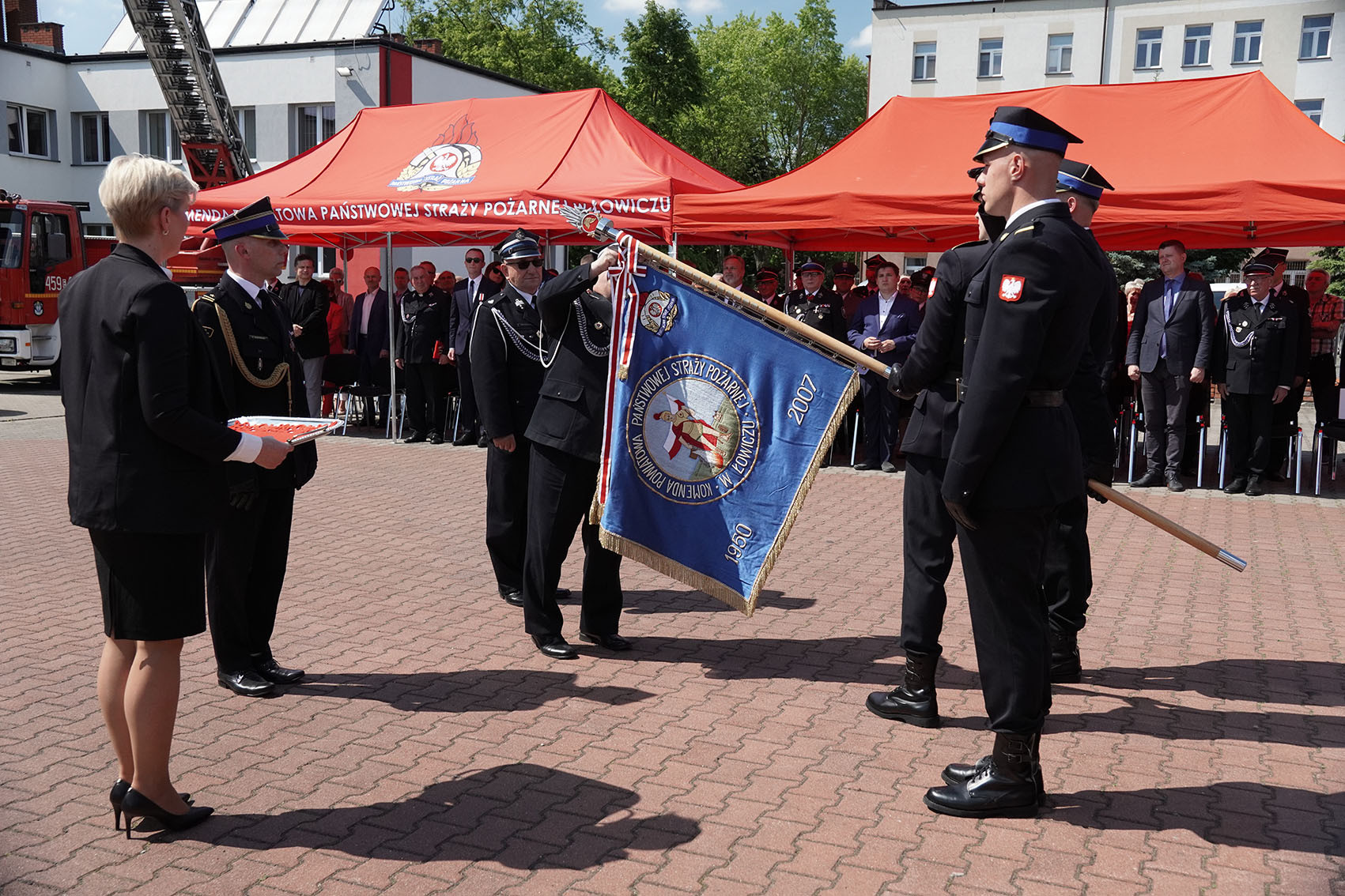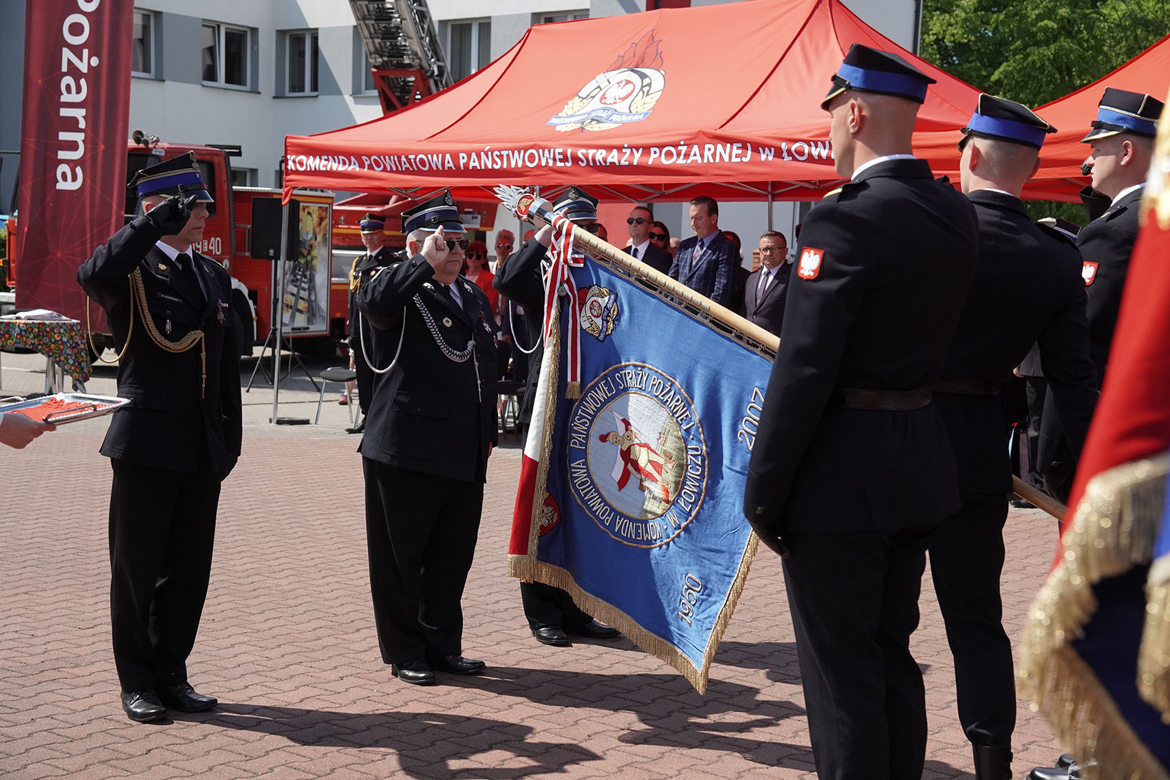 Jednym z punktów uroczystości było podziękowanie jednostkom OSP z Pilaszkowa i Łowicza oraz JRG tutejszej komedny, które podczas działań ratowniczo-gaśniczych w marcu 2021 roku uratowały podczas pożaru domu jednorodzinnego dwie osoby i mienie o dużej wartości. W dowód wdzięczności wyróżnione jednostki otrzymały od uratowanych osób figury św. Floriana.